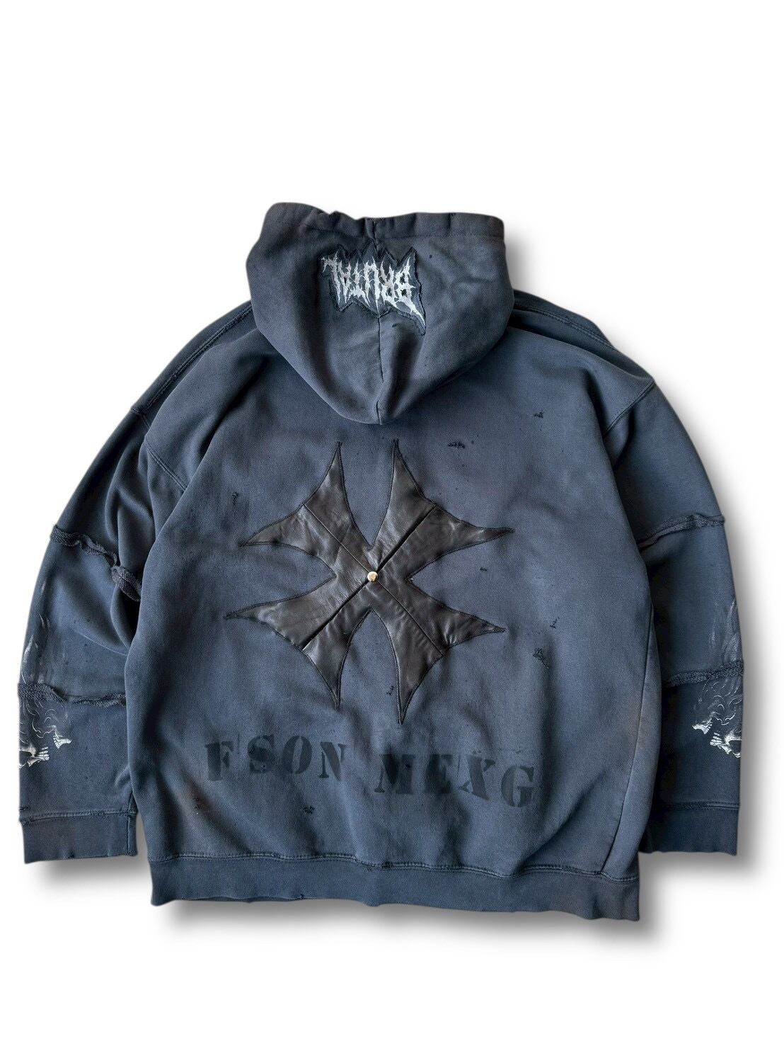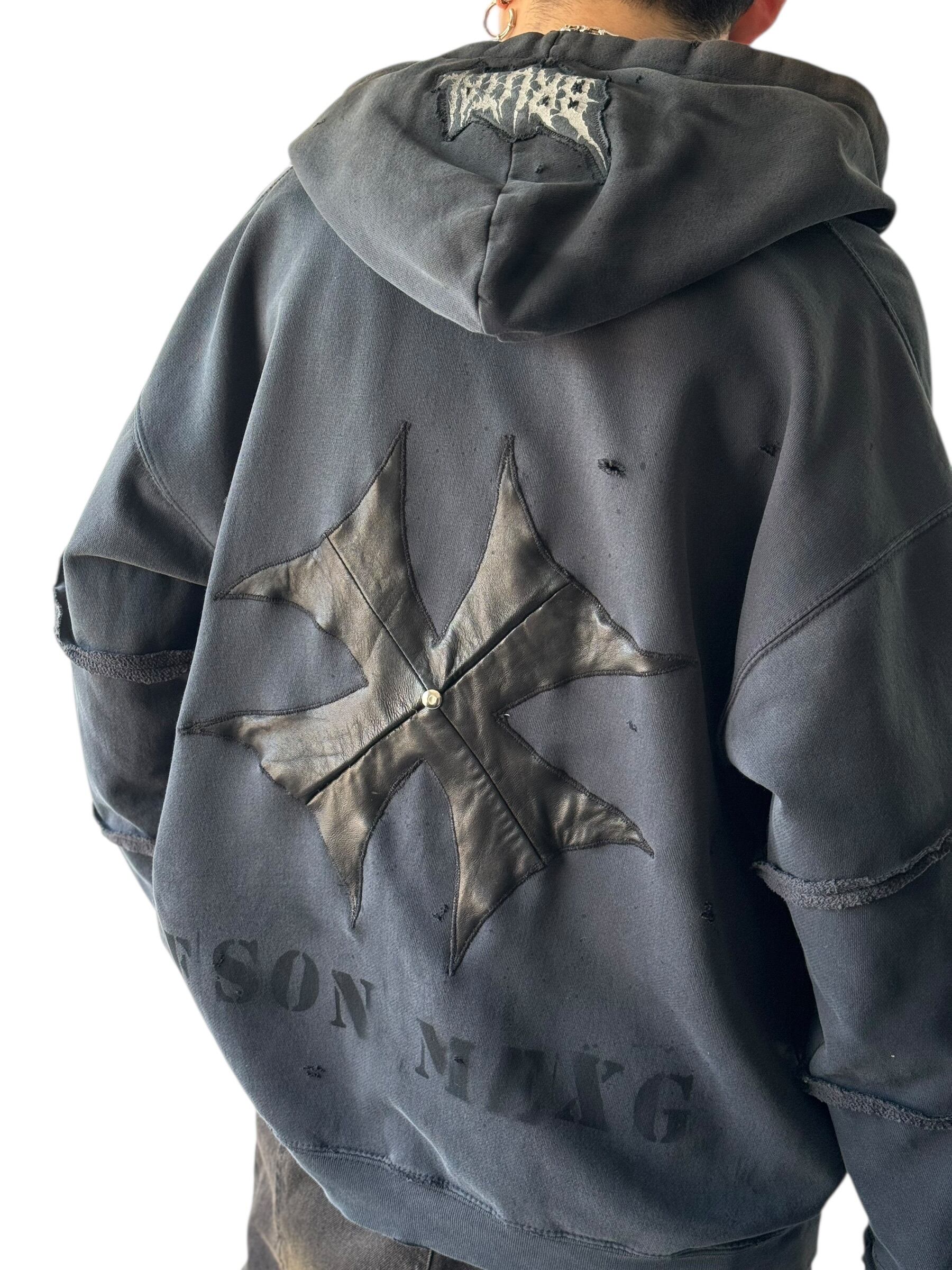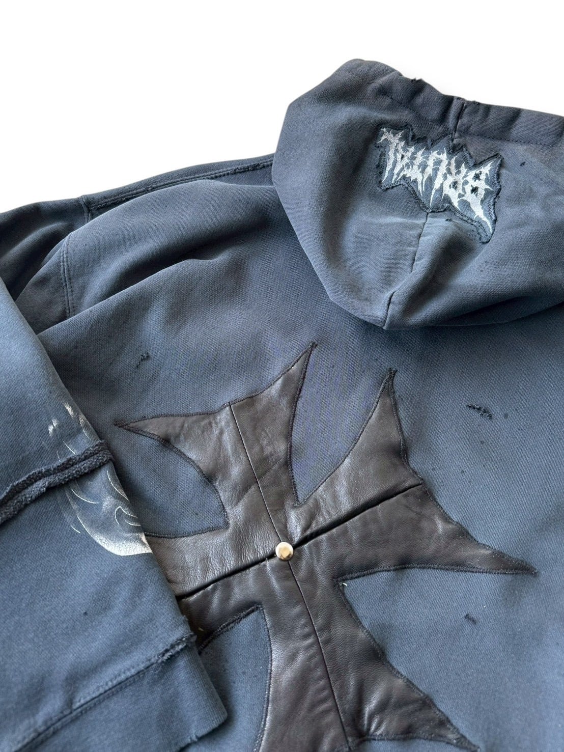 ♾REMADE COLLECTION♾ skull × iron cross motif custom remade design zip up hoodie