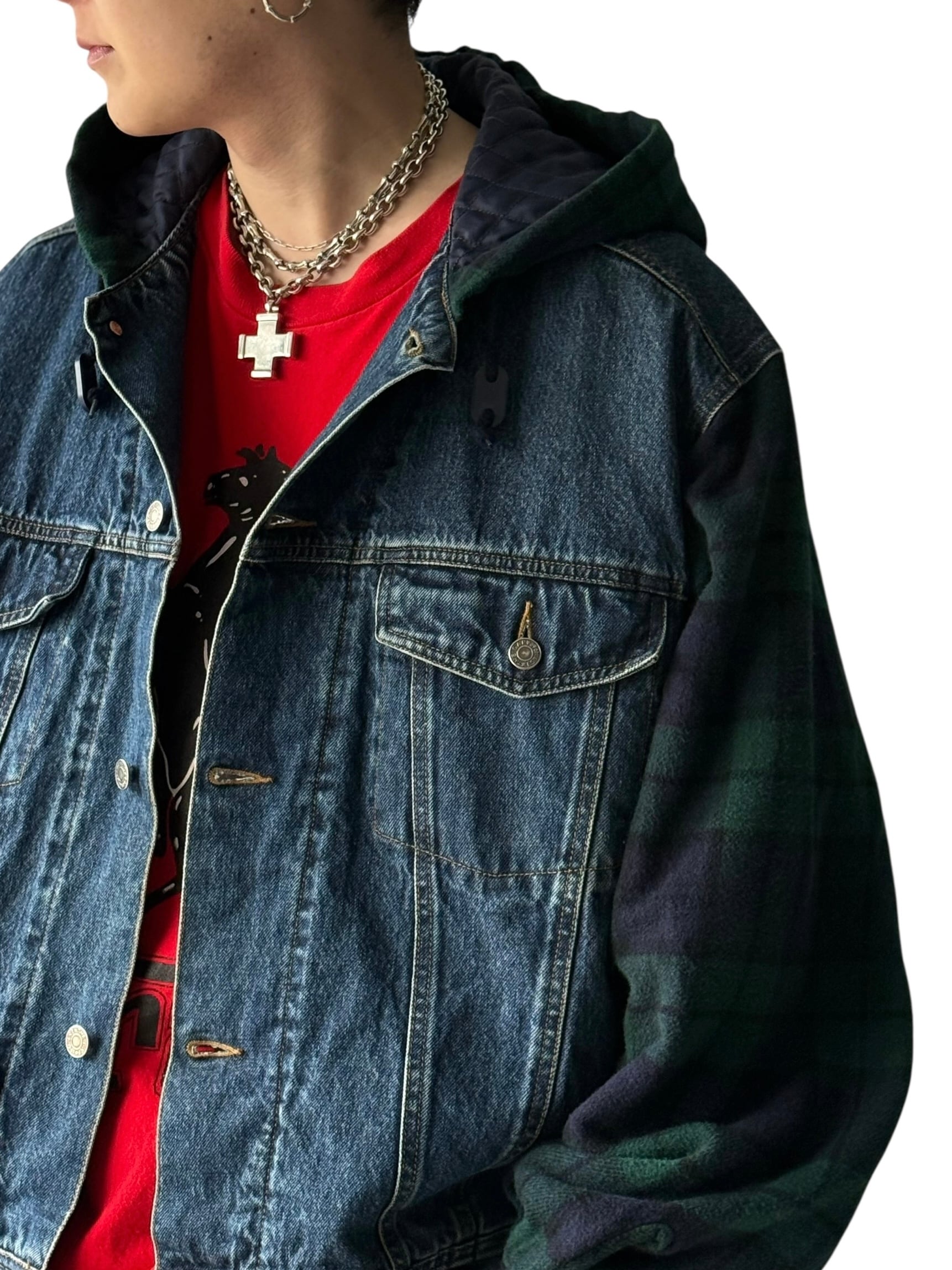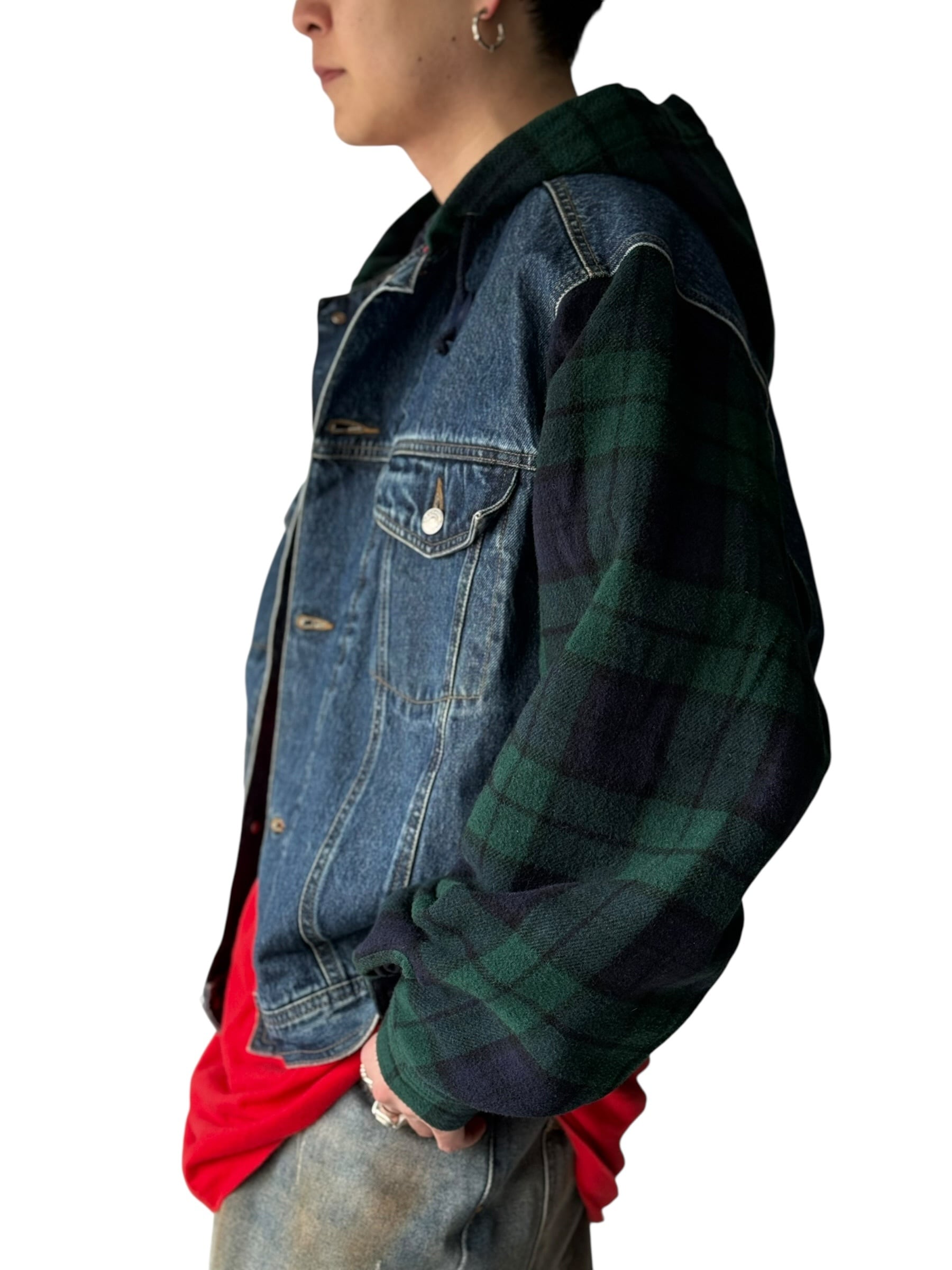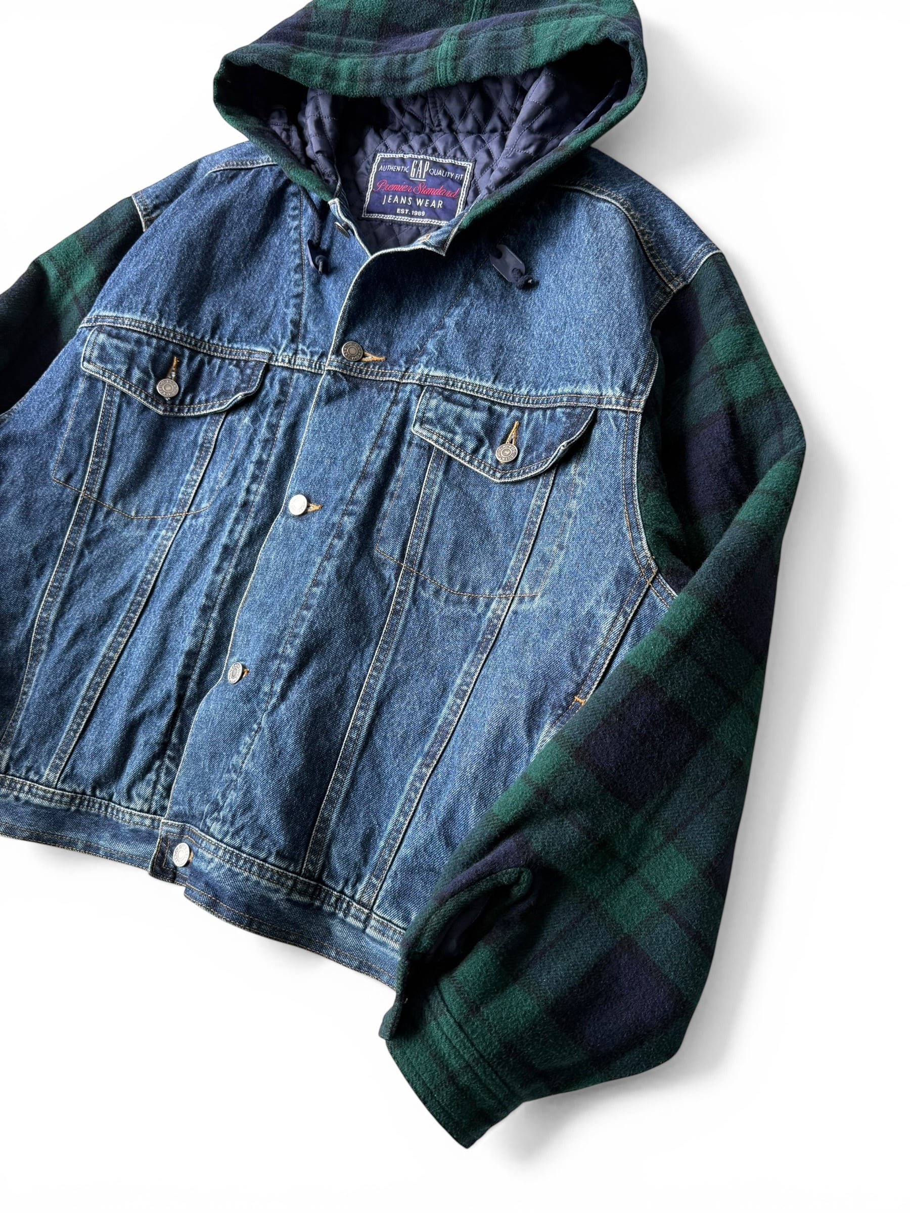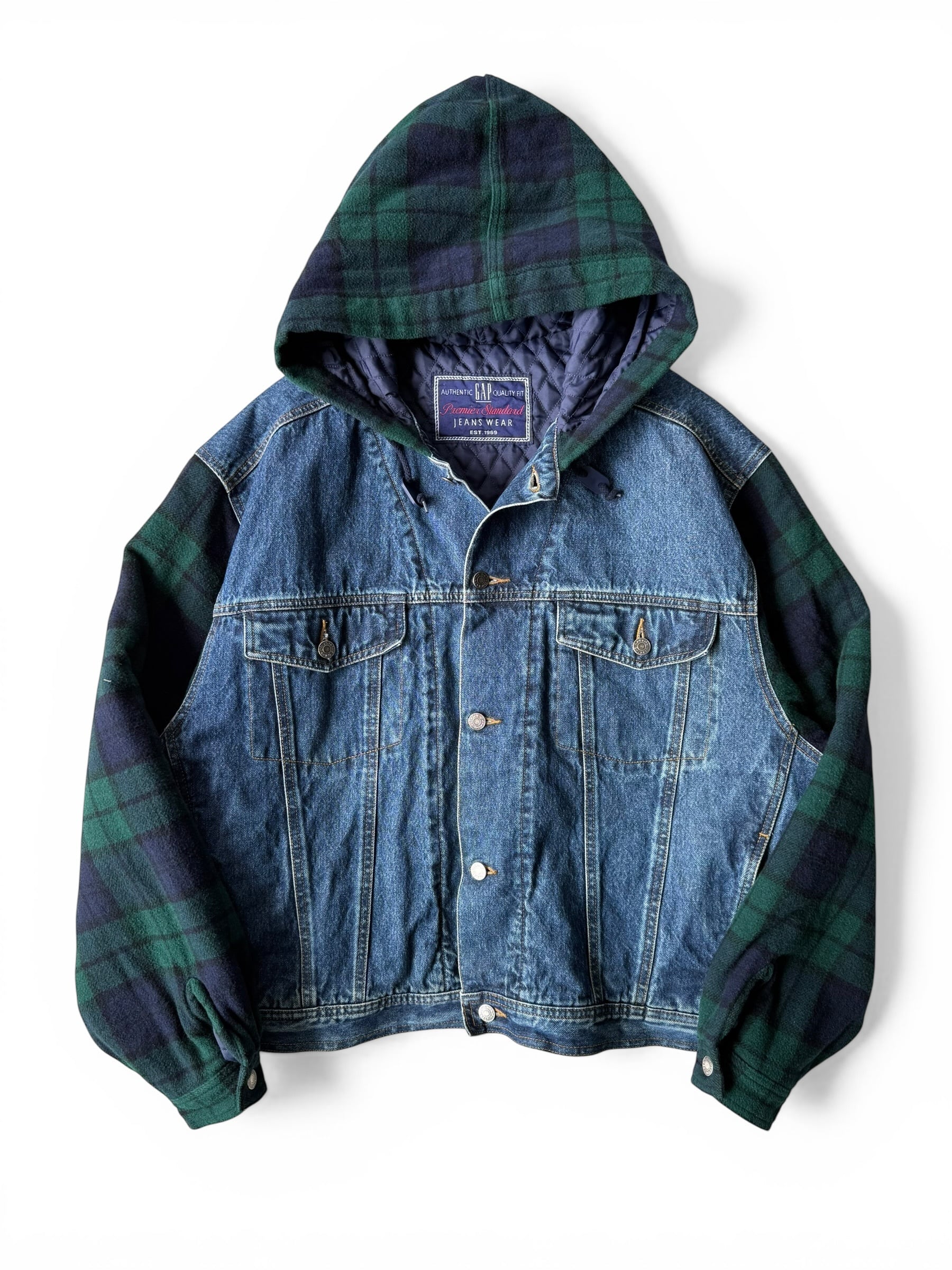 【AUTHENTIC GAP QUALITY FIT】Blackwatch Pattern Denim Hooded tracker Jacket