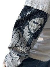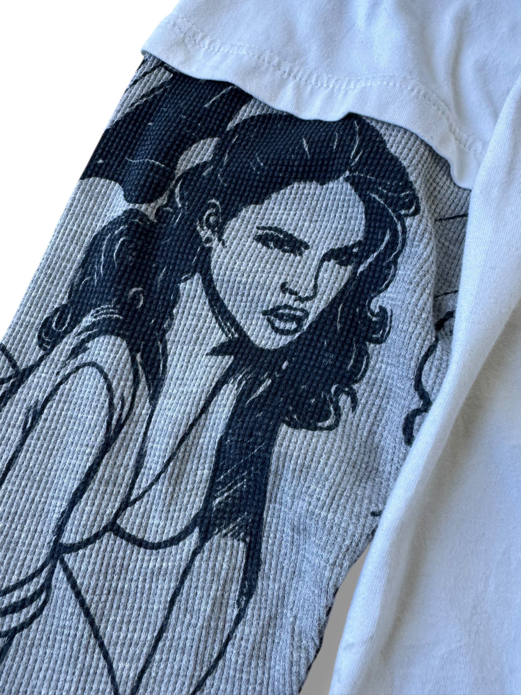 フロントにはスプレーのグラフィックとロゴの比較的シンプルめなデザインが施されており、なにより特徴的なのがサーマルをレイヤードさせたフェイクデザインが重ね着感あってすっごくキャワタン♥