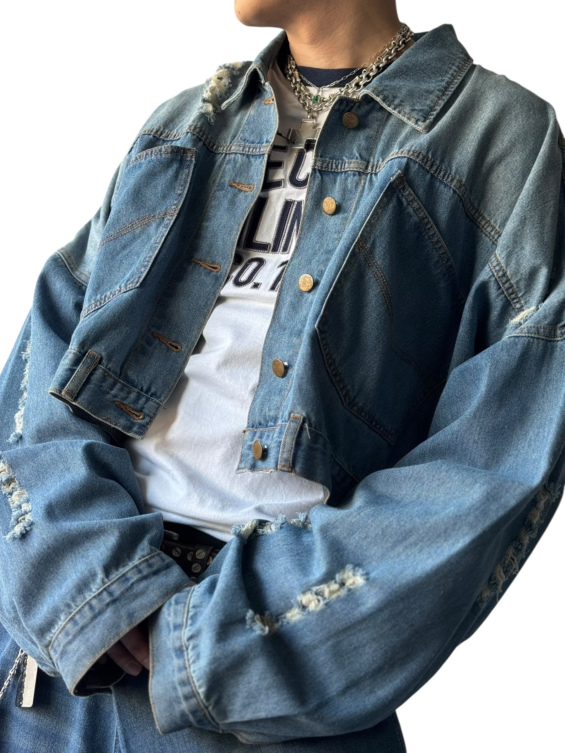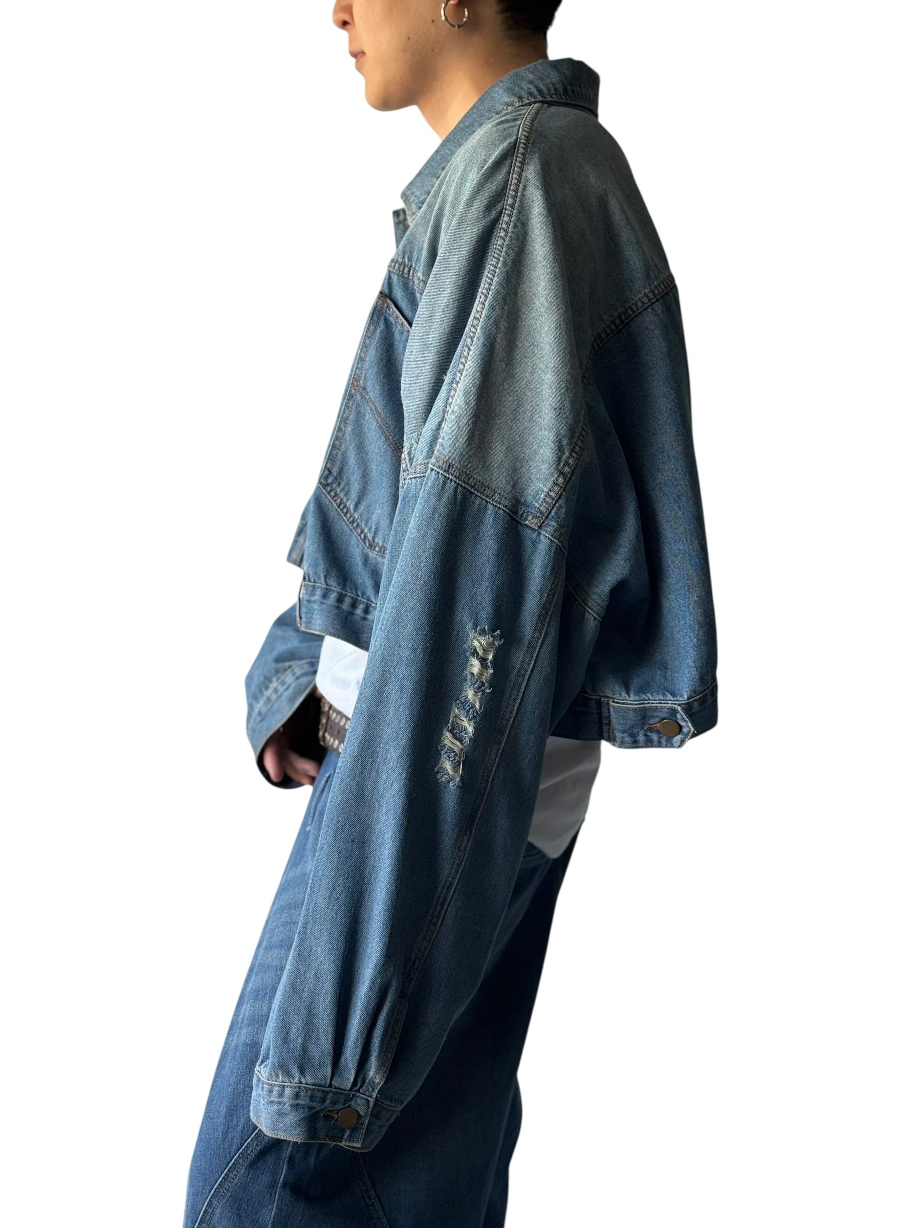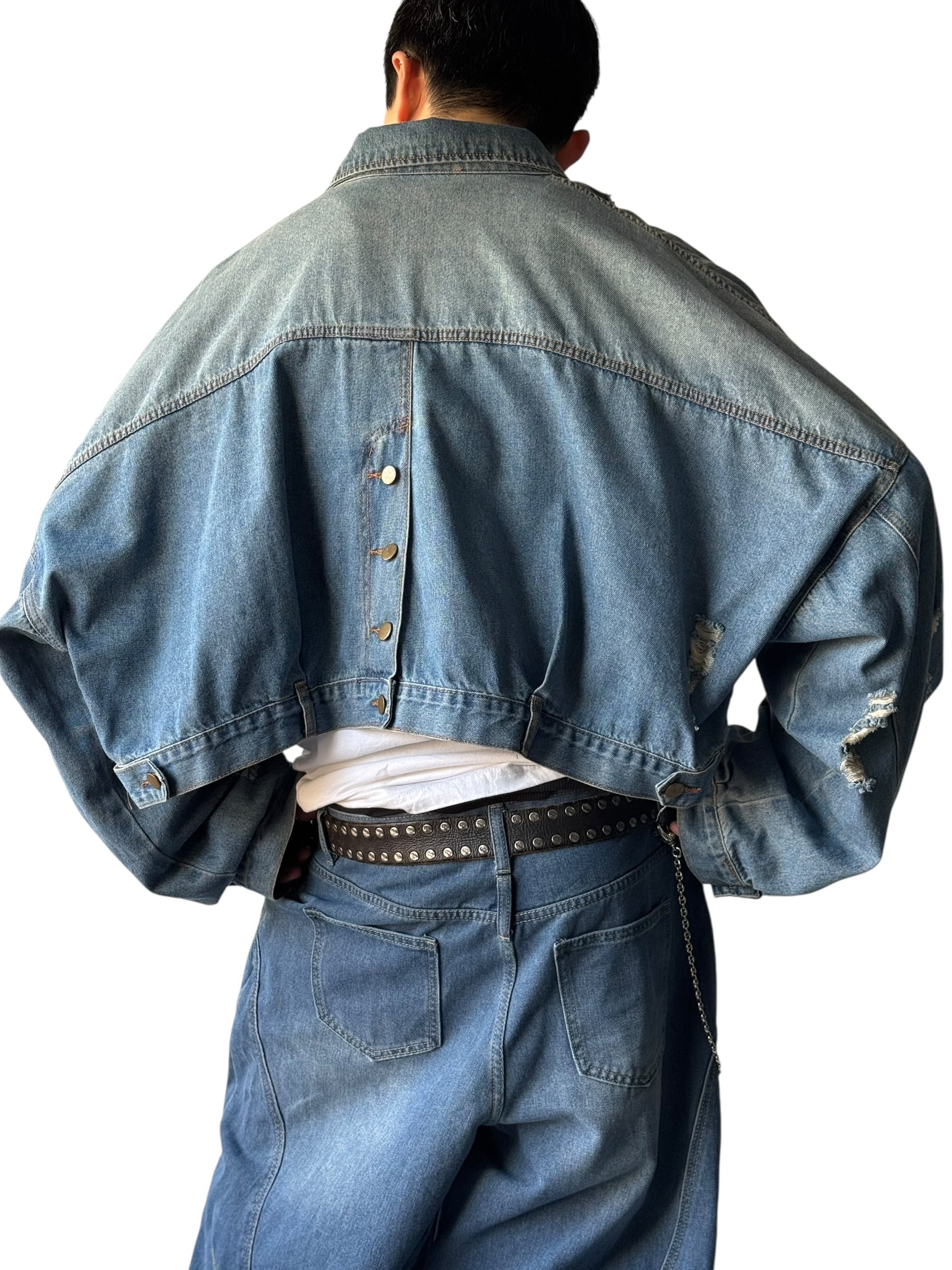 通常にくらべ短く切り落とされたハイパークロップド丈がかなり特徴的なシルエットとなっており全体的に施されたグランジテイストがクールなダメージ加工だったりフロントの大振りなポケットがアクセントになったセンス抜群のデザイン‼️