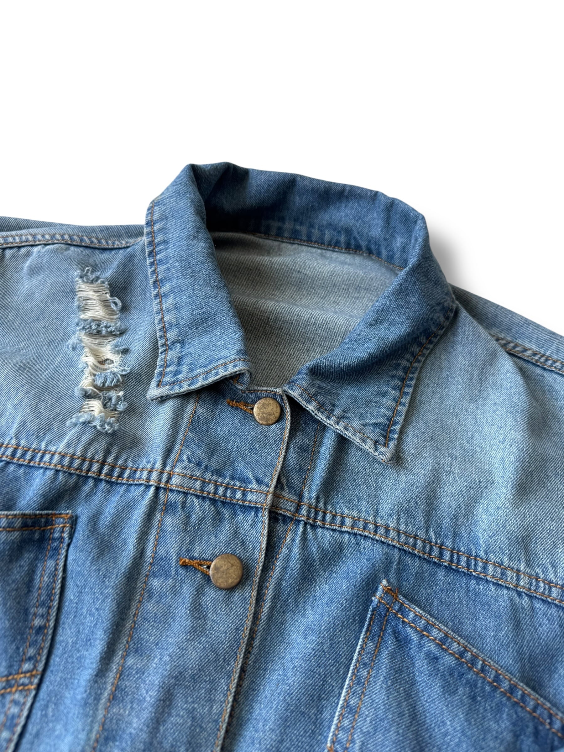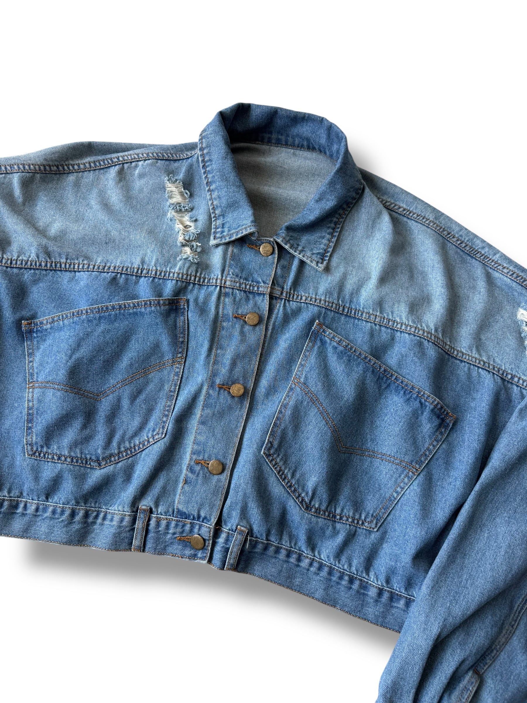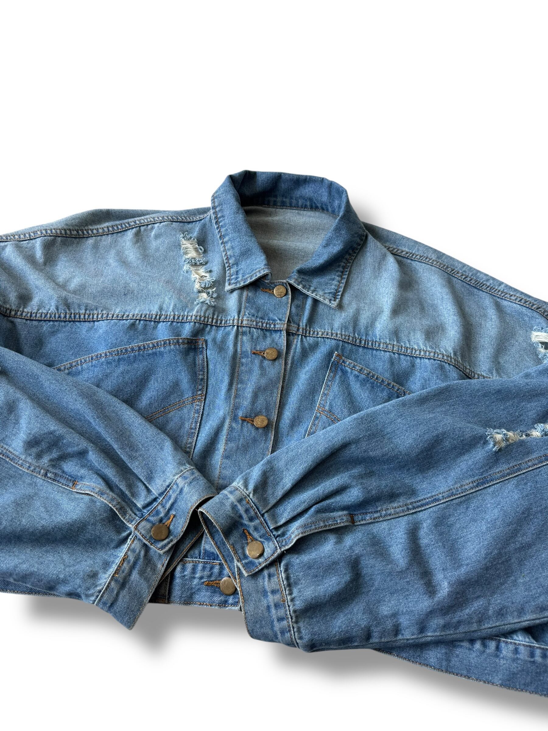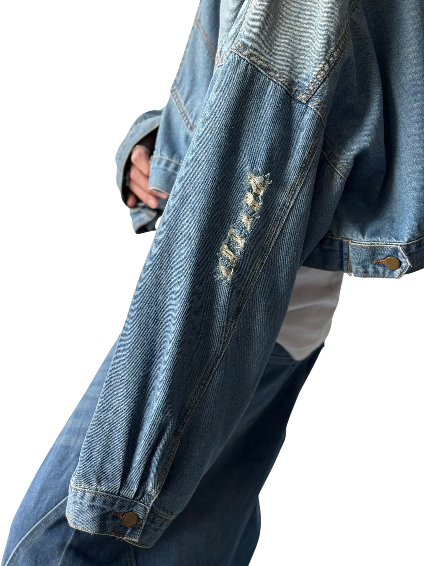 通常にくらべ短く切り落とされたハイパークロップド丈がかなり特徴的なシルエットとなっており全体的に施されたグランジテイストがクールなダメージ加工だったりフロントの大振りなポケットがアクセントになったセンス抜群のデザイン‼️