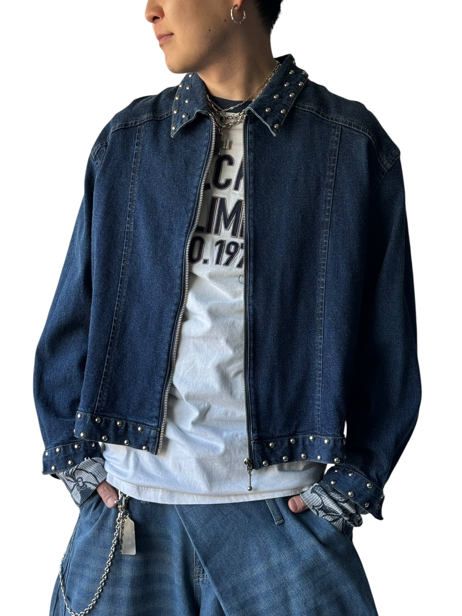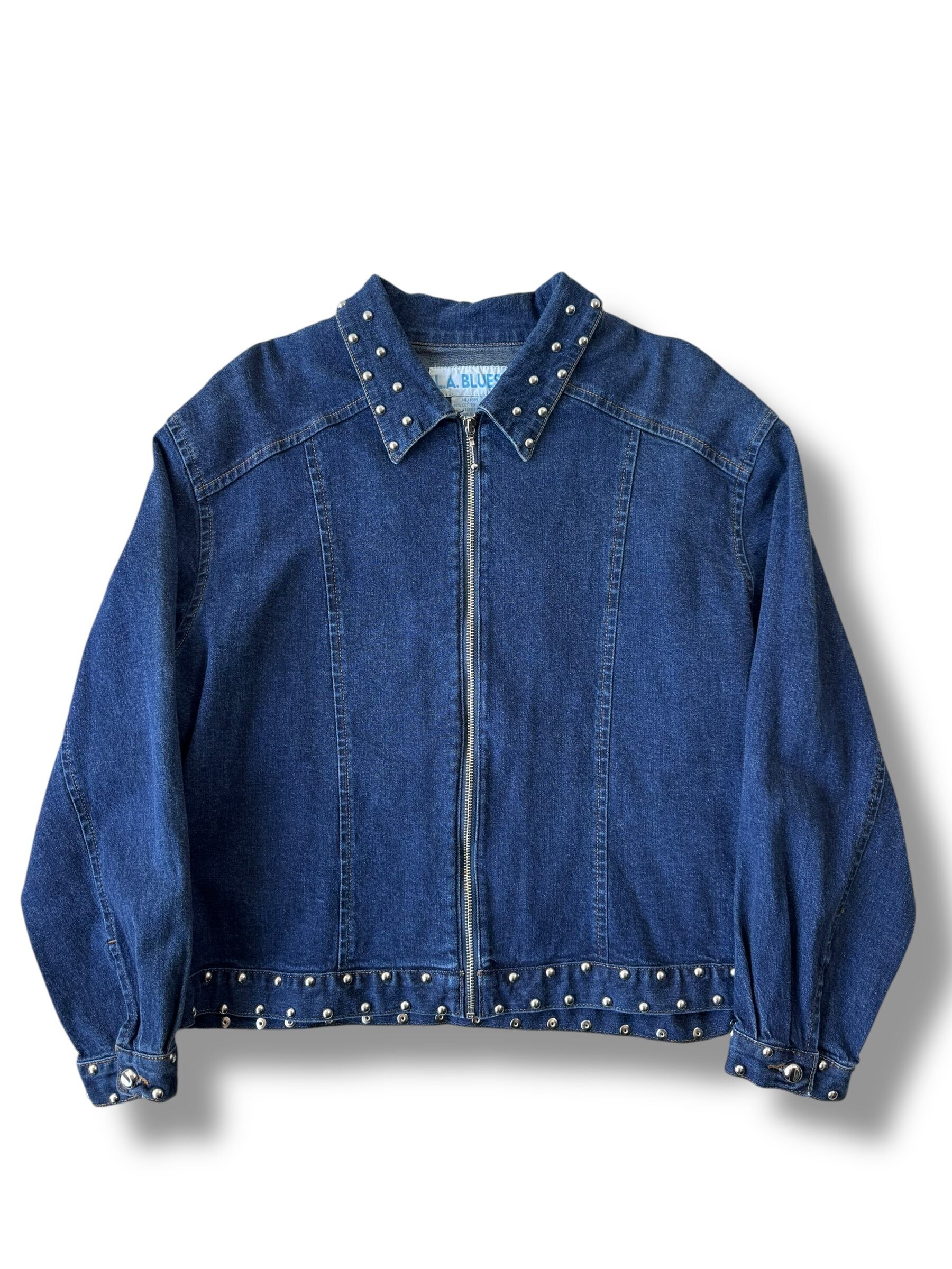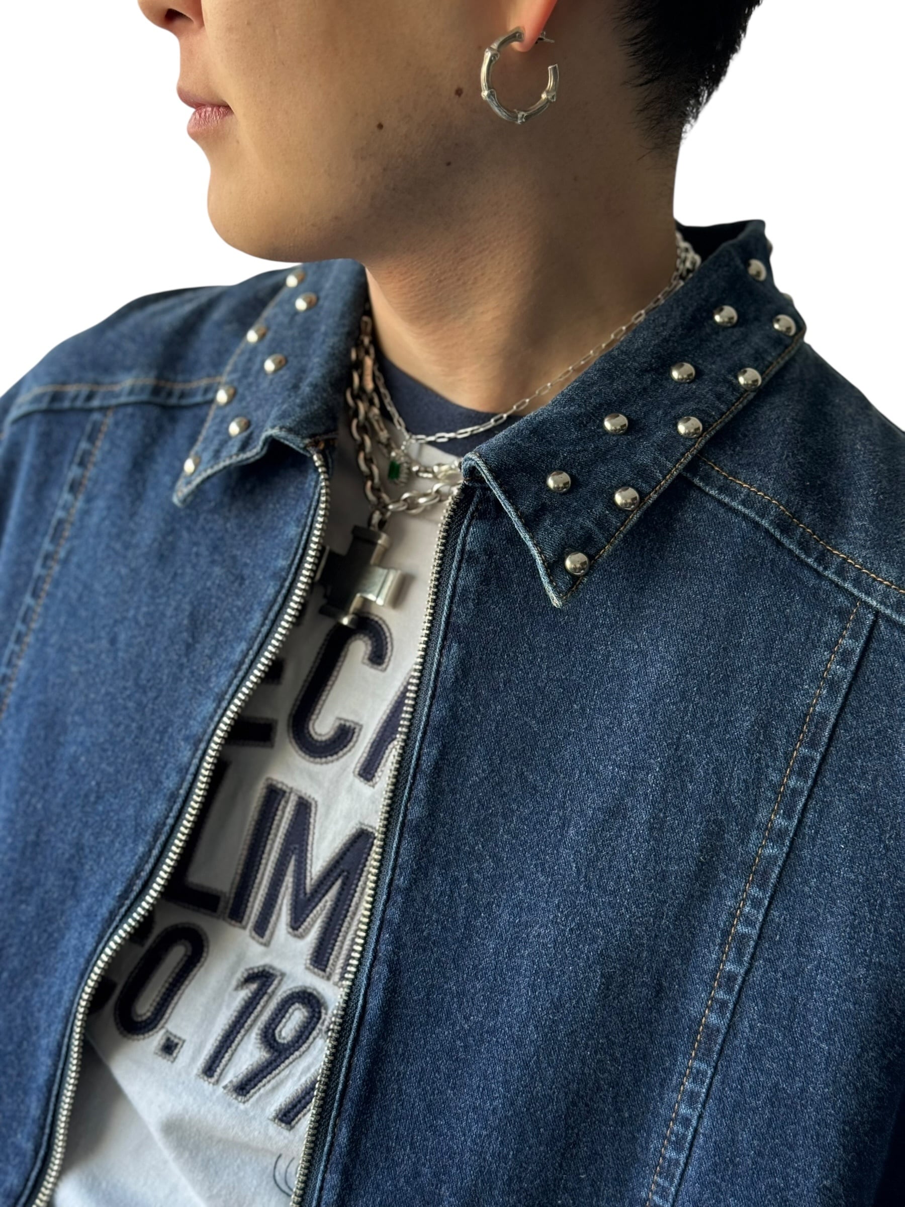 ♾L.A. BLUES♾ studs design zip up denim jacket