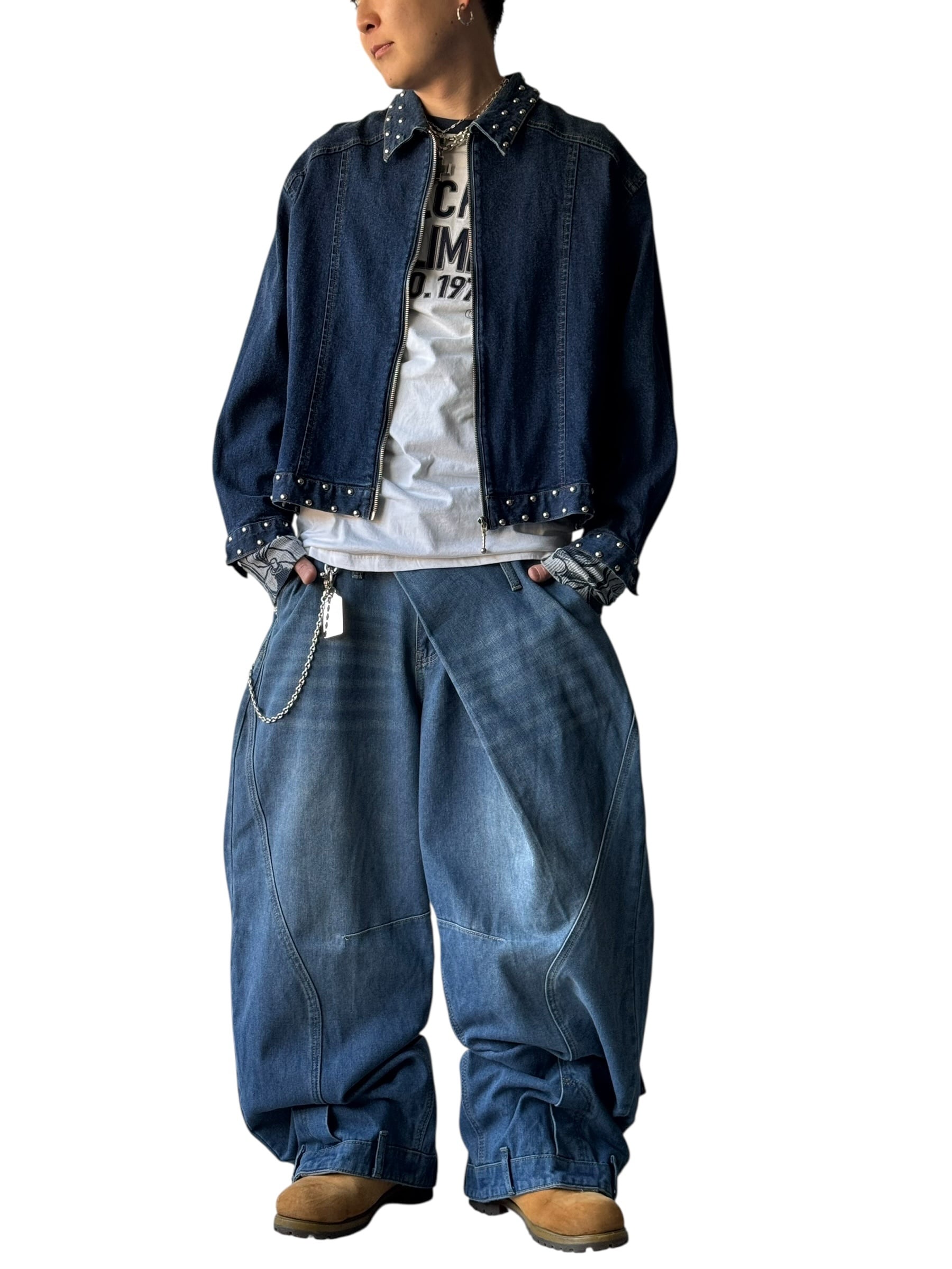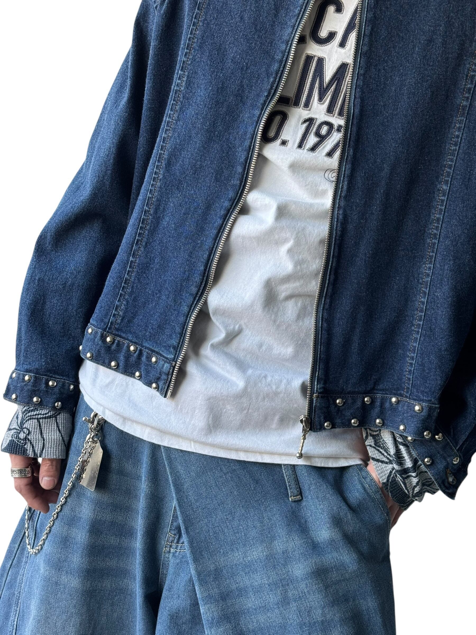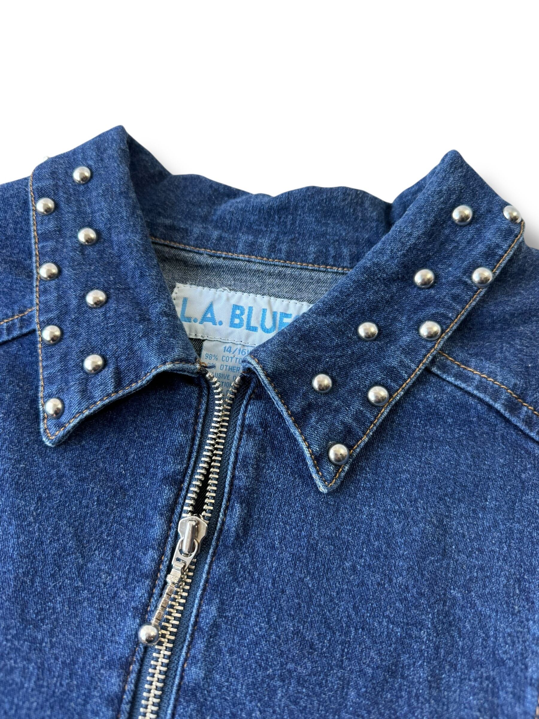 ♾L.A. BLUES♾ studs design zip up denim jacket