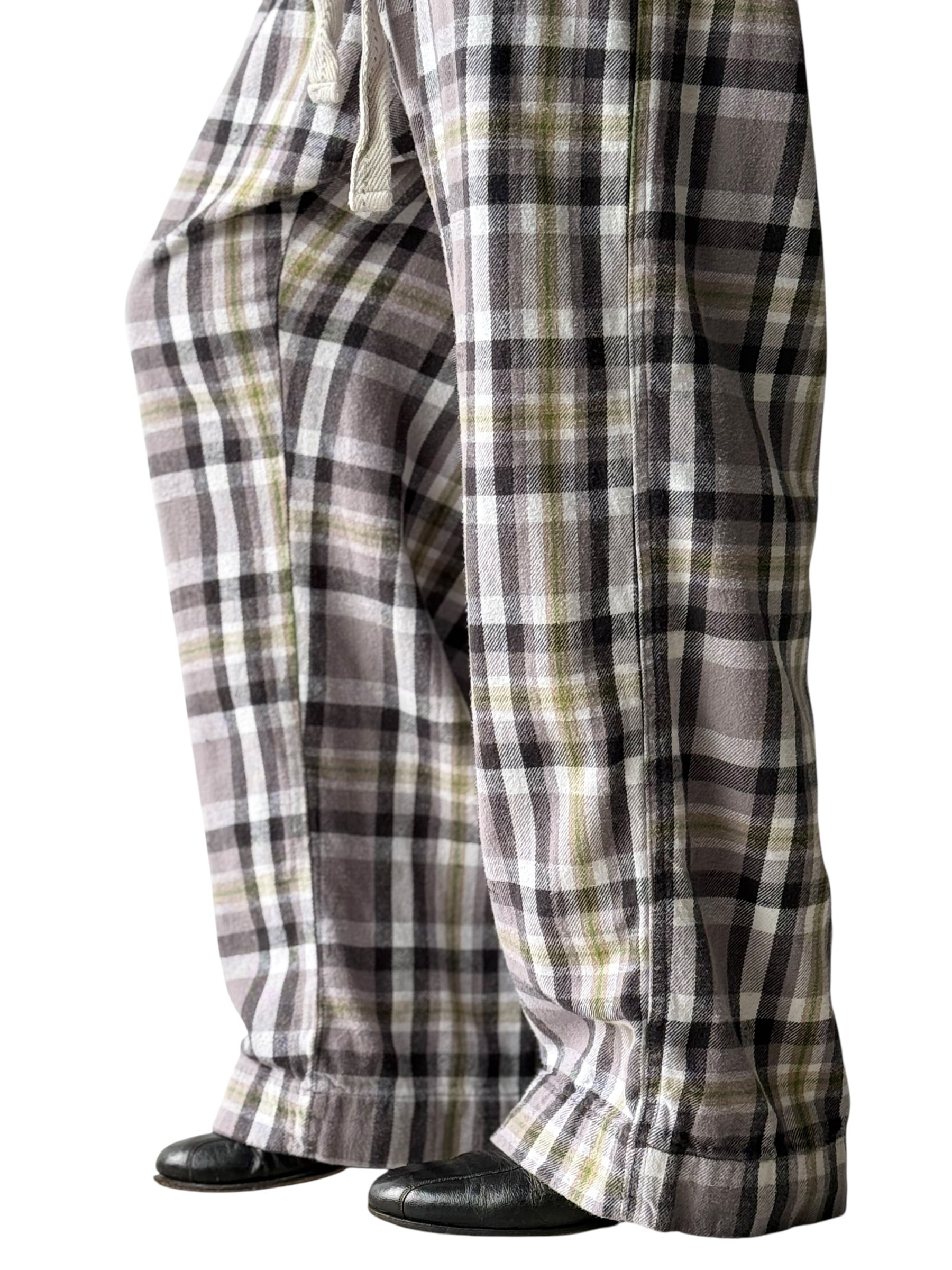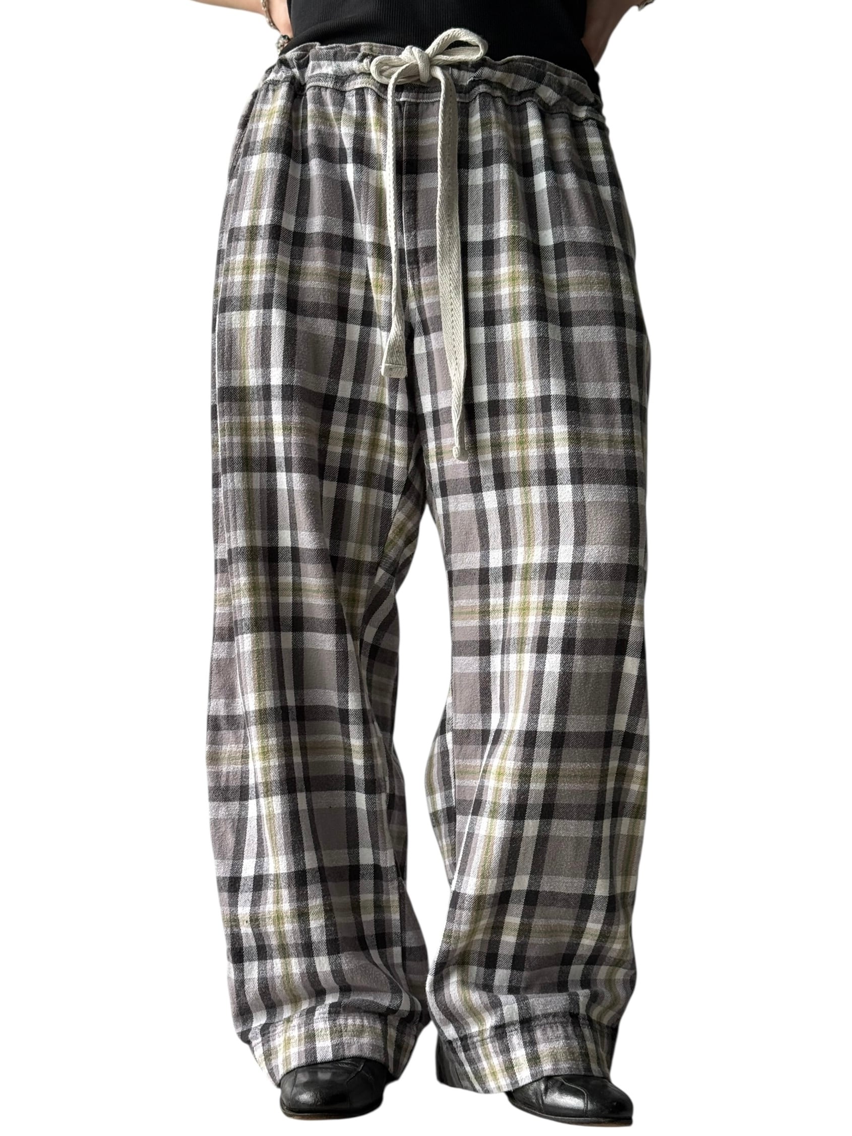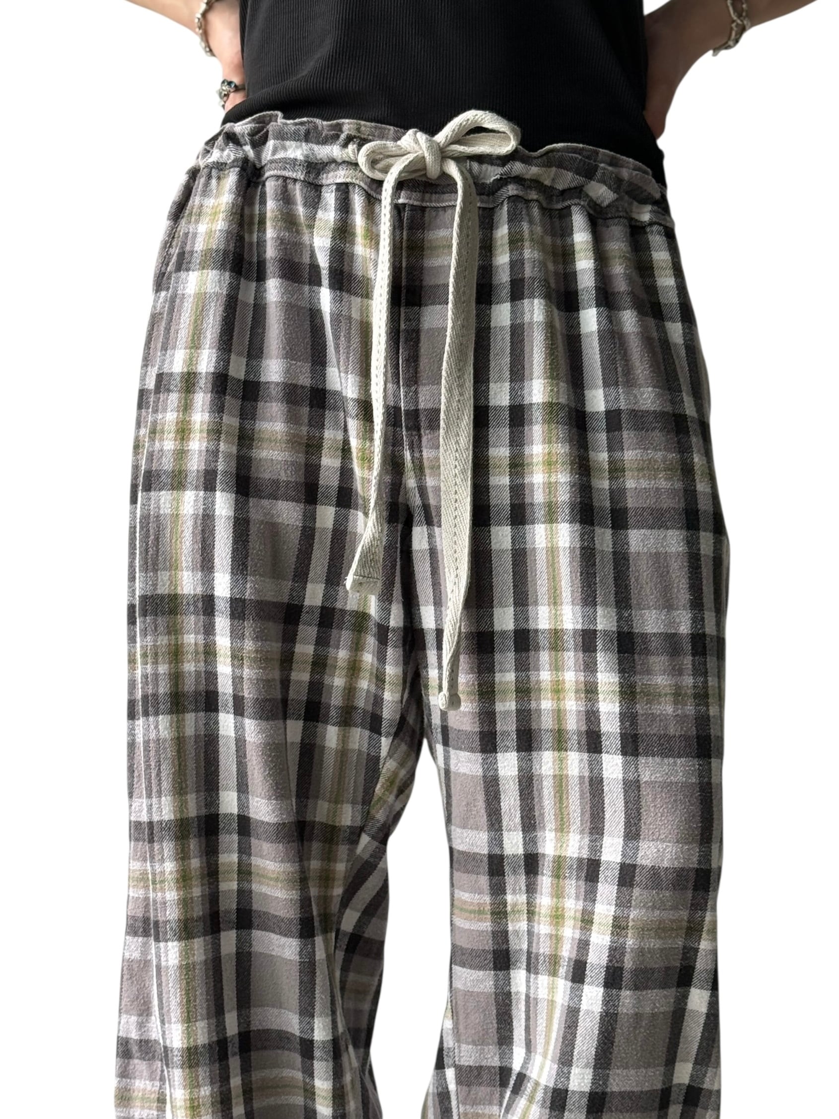 Flannel Check Drawstring Wide Pants