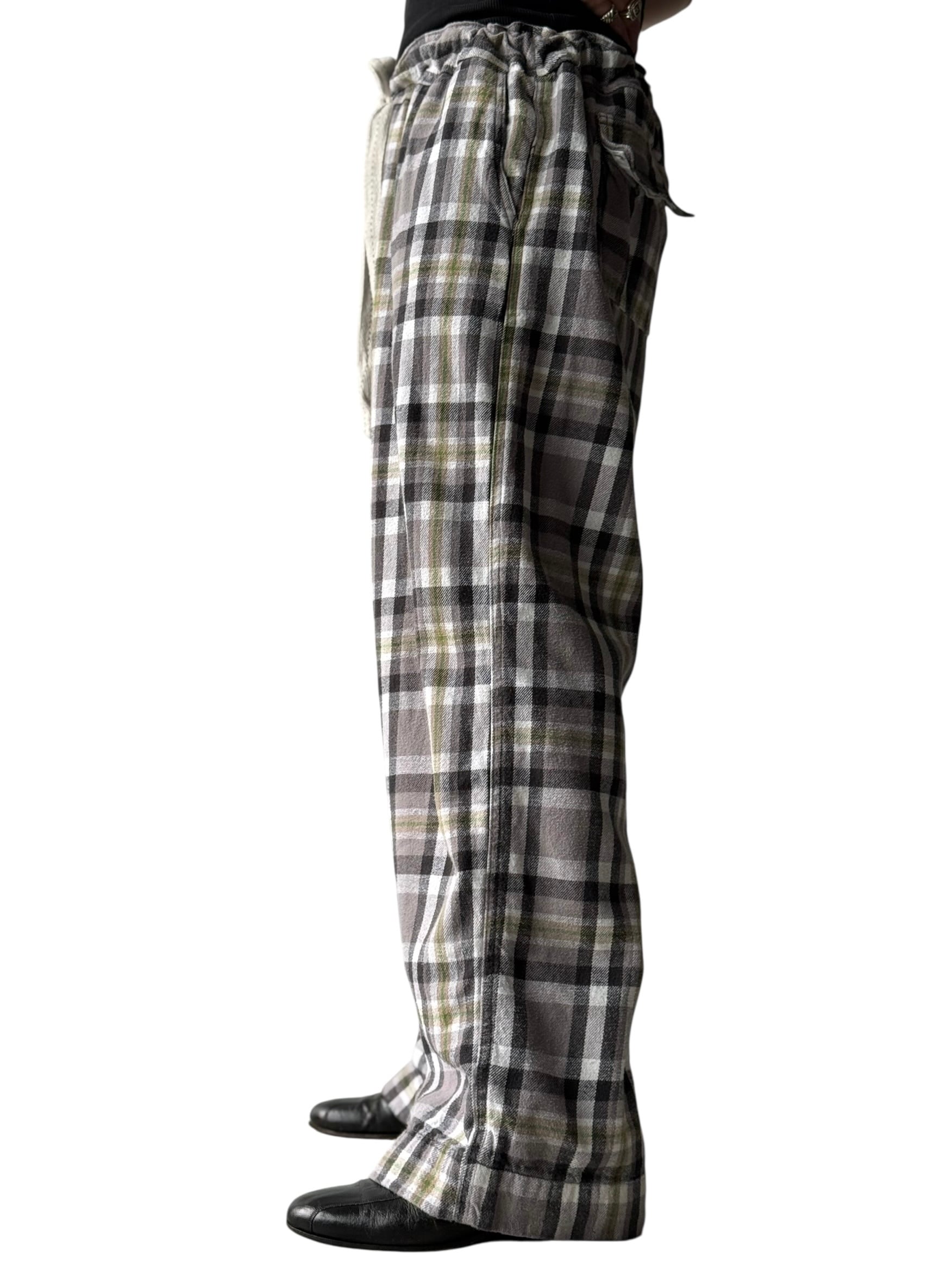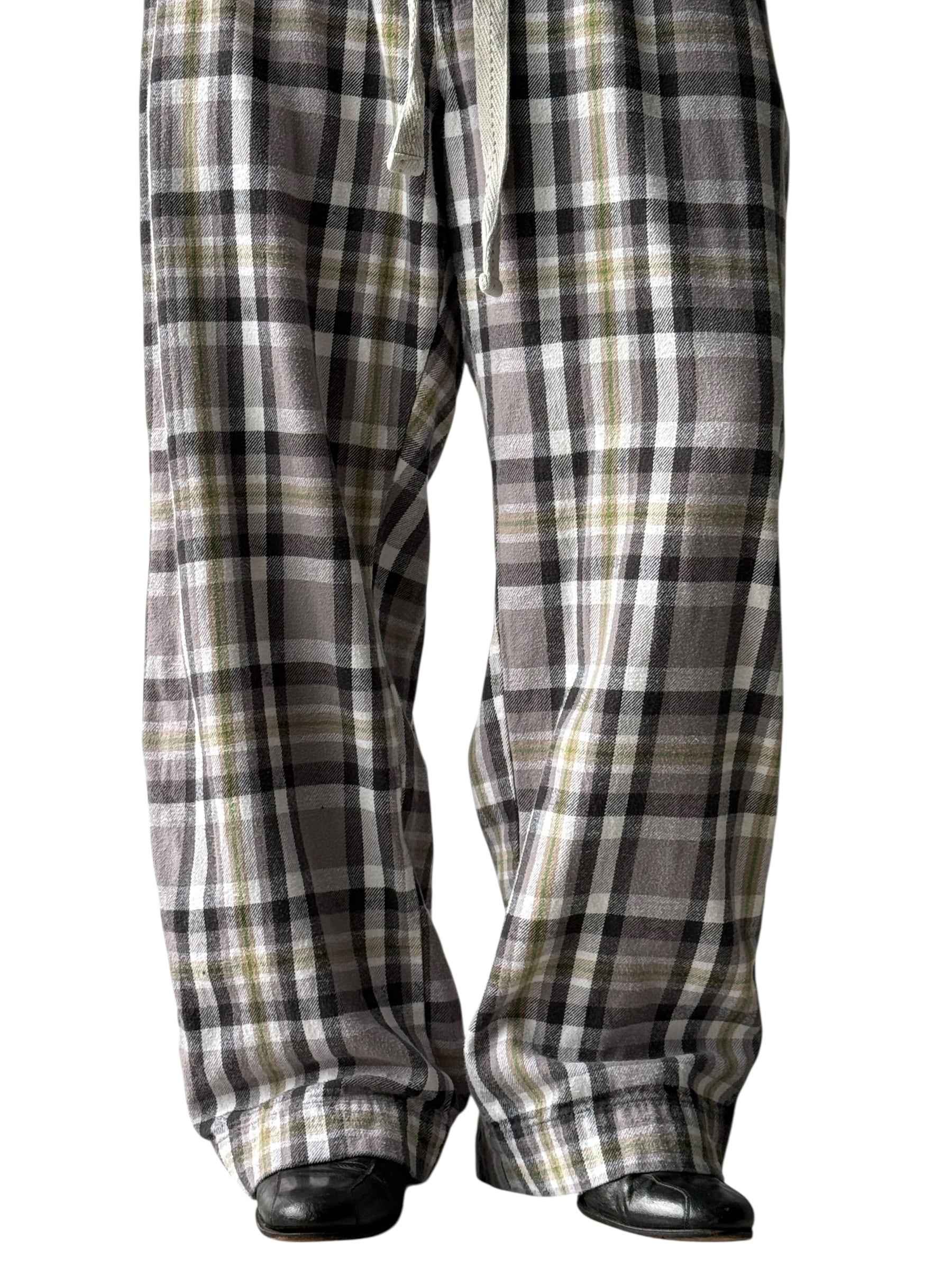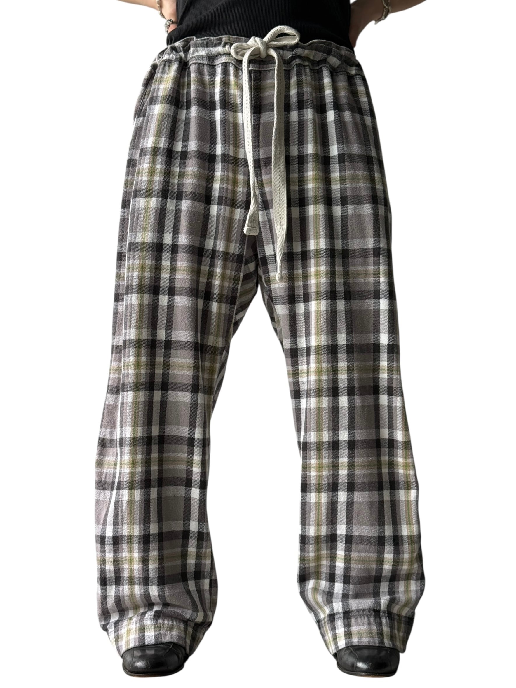 Flannel Check Drawstring Wide Pants