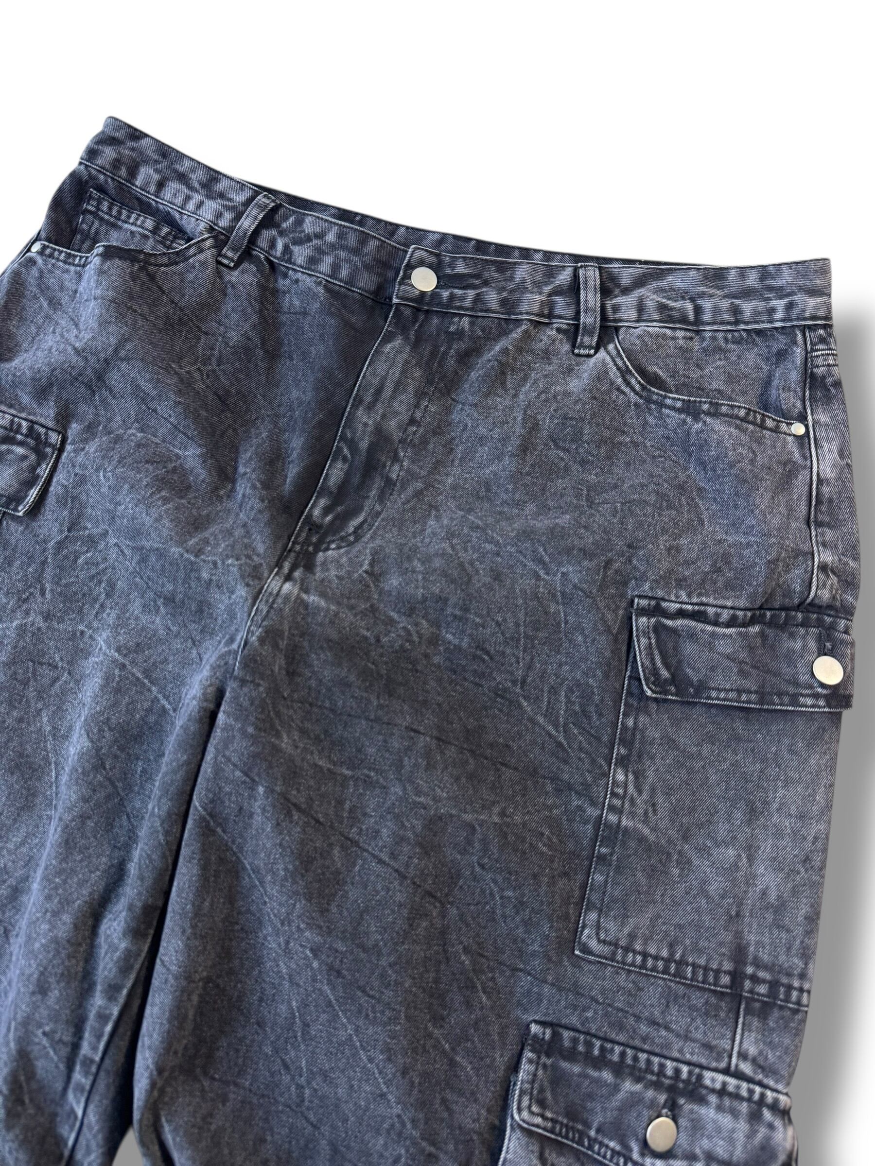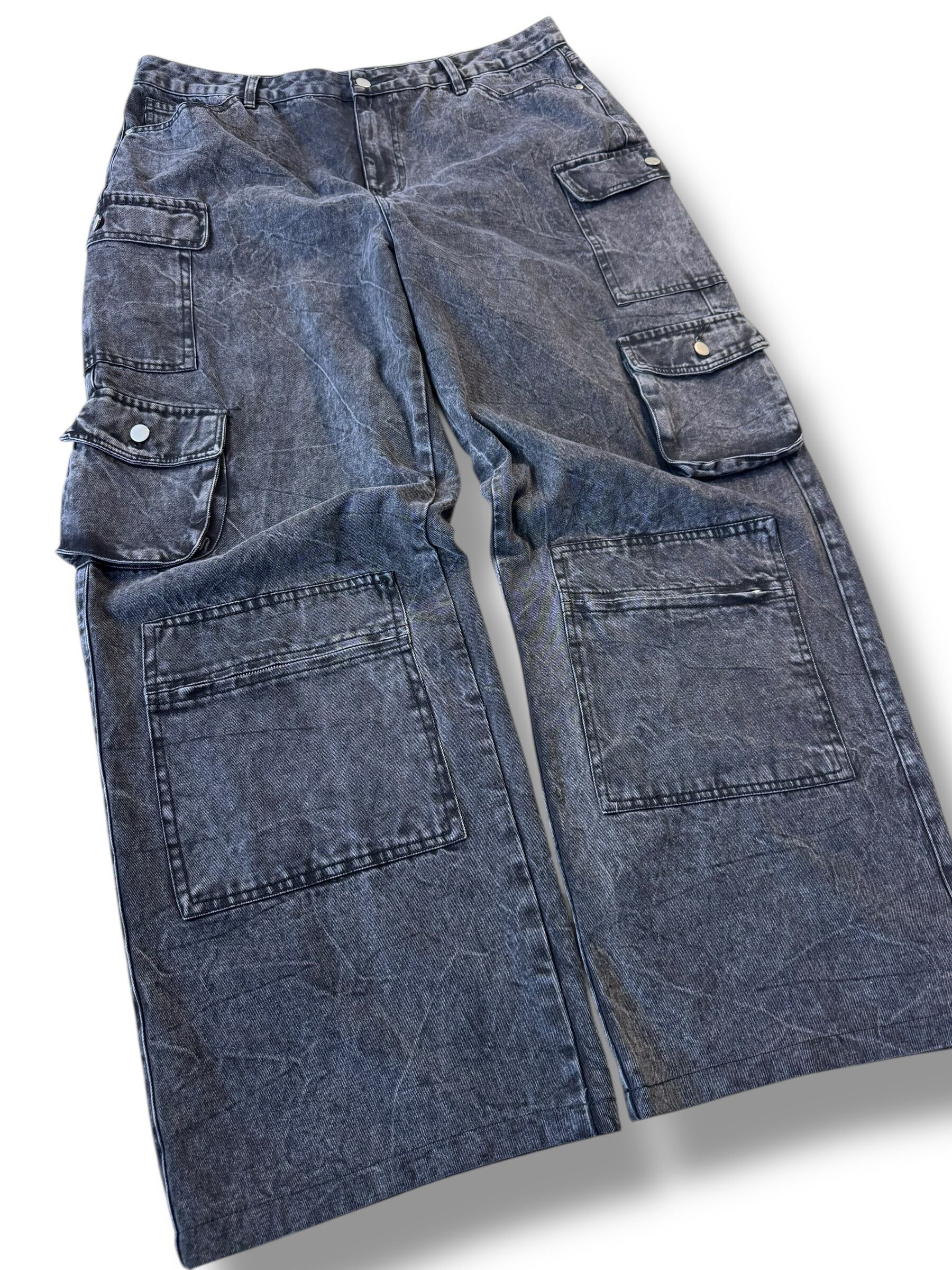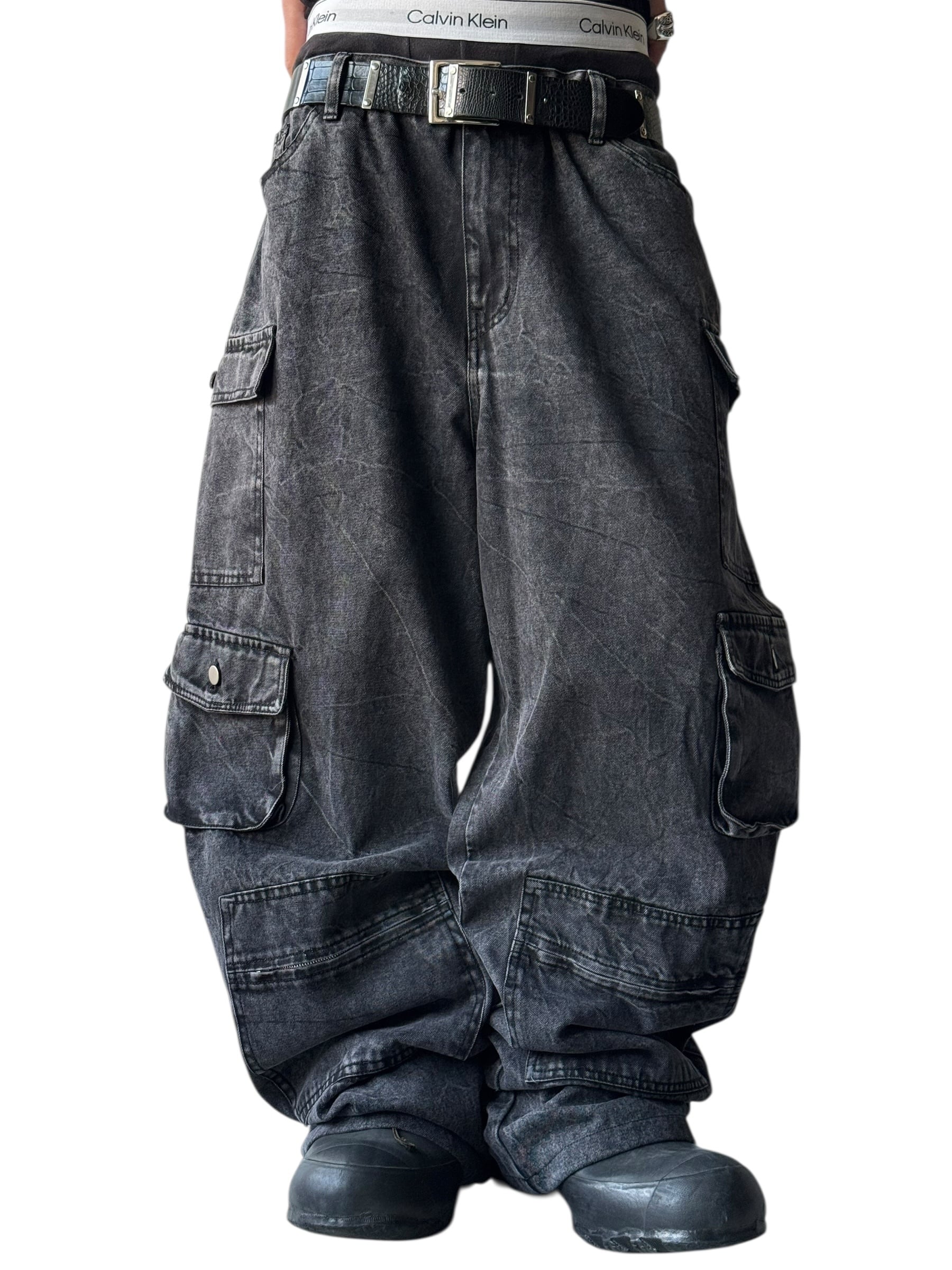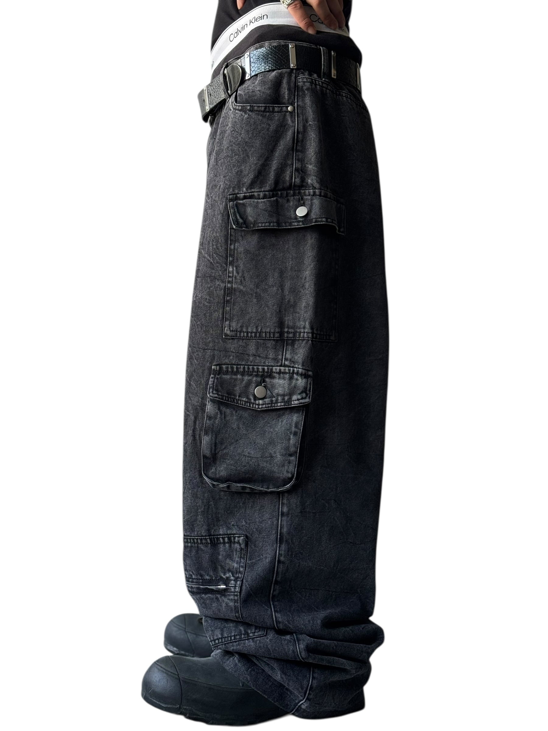 ♾design used♾ heavy pocket detail extra wide silhouette black denim pants