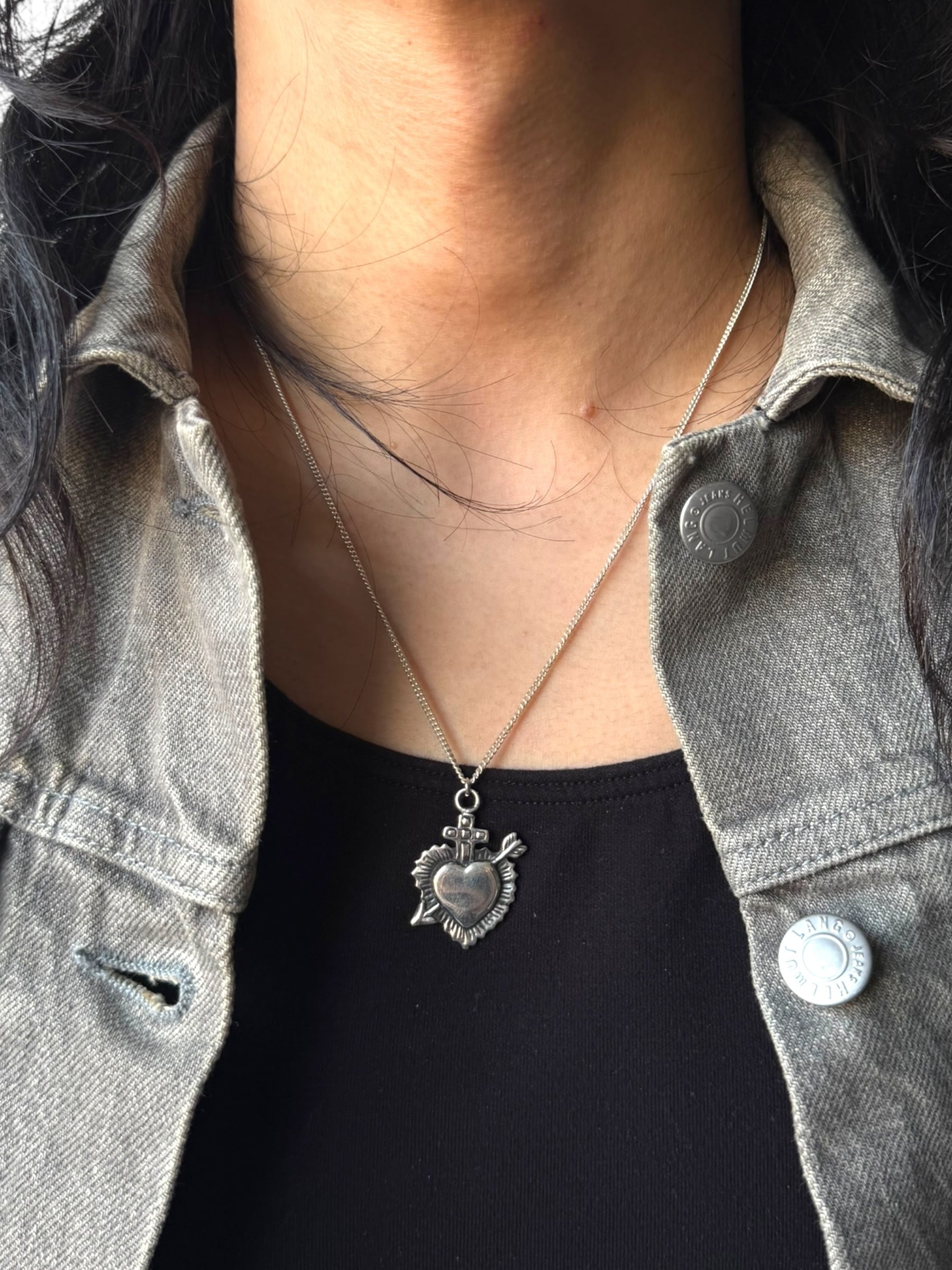 ♾vtg sv jewelry♾ heart pendant top design necklace sv925 ・