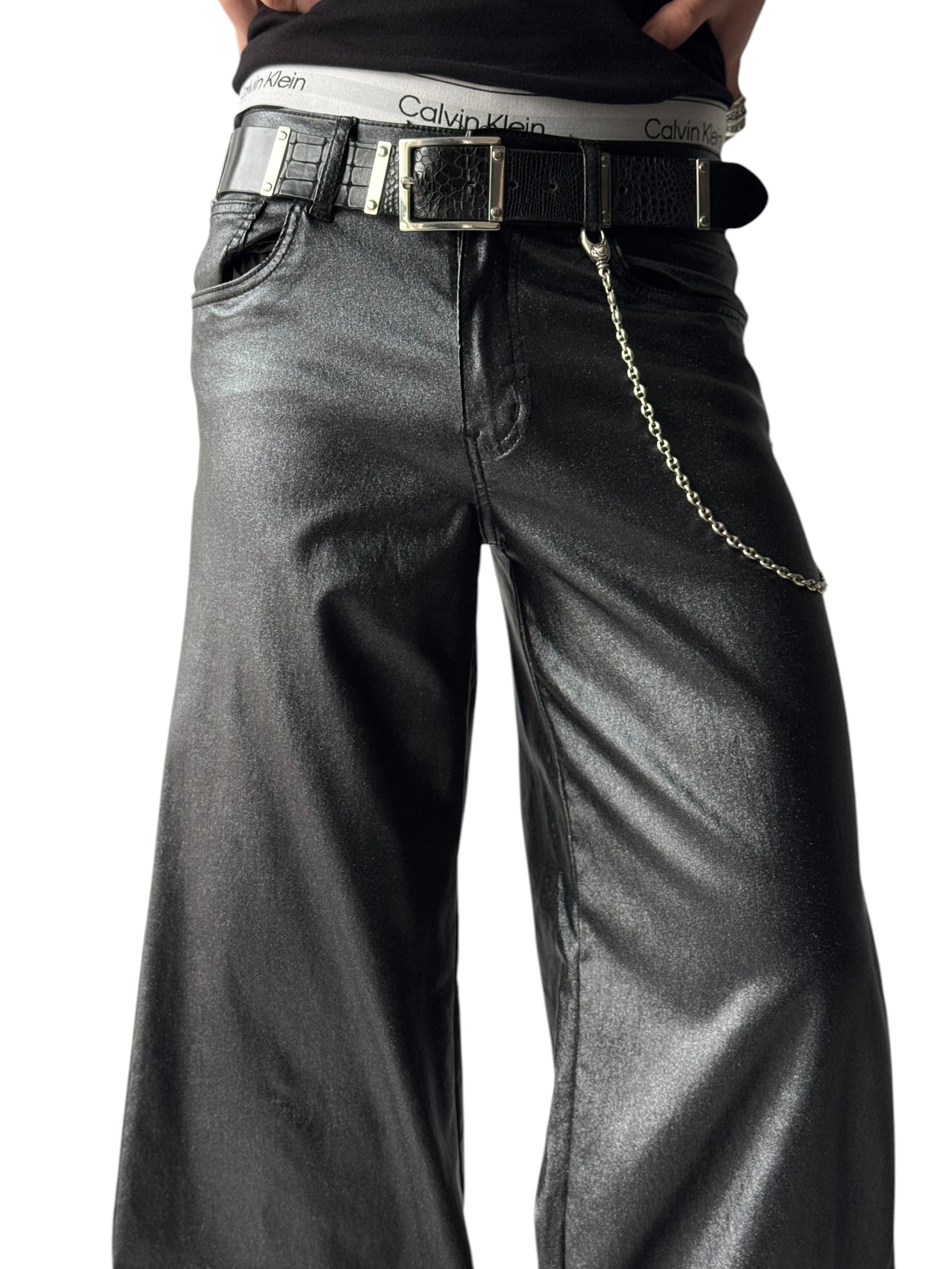 ♾JC&JQ JEANS♾ shiny design lover coating buggy silhouette pants