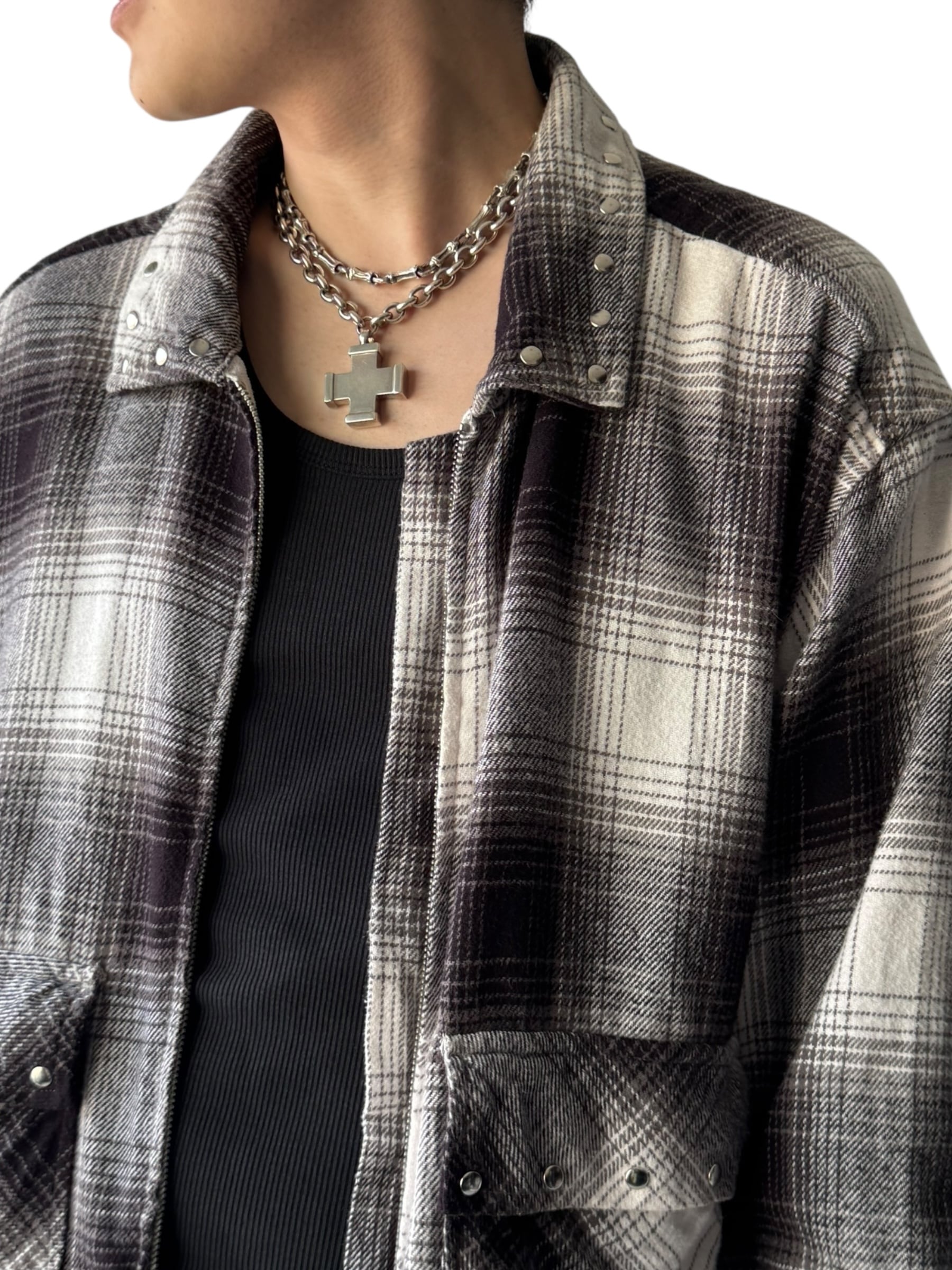 studs custom design ombre check zip up L/S shirt