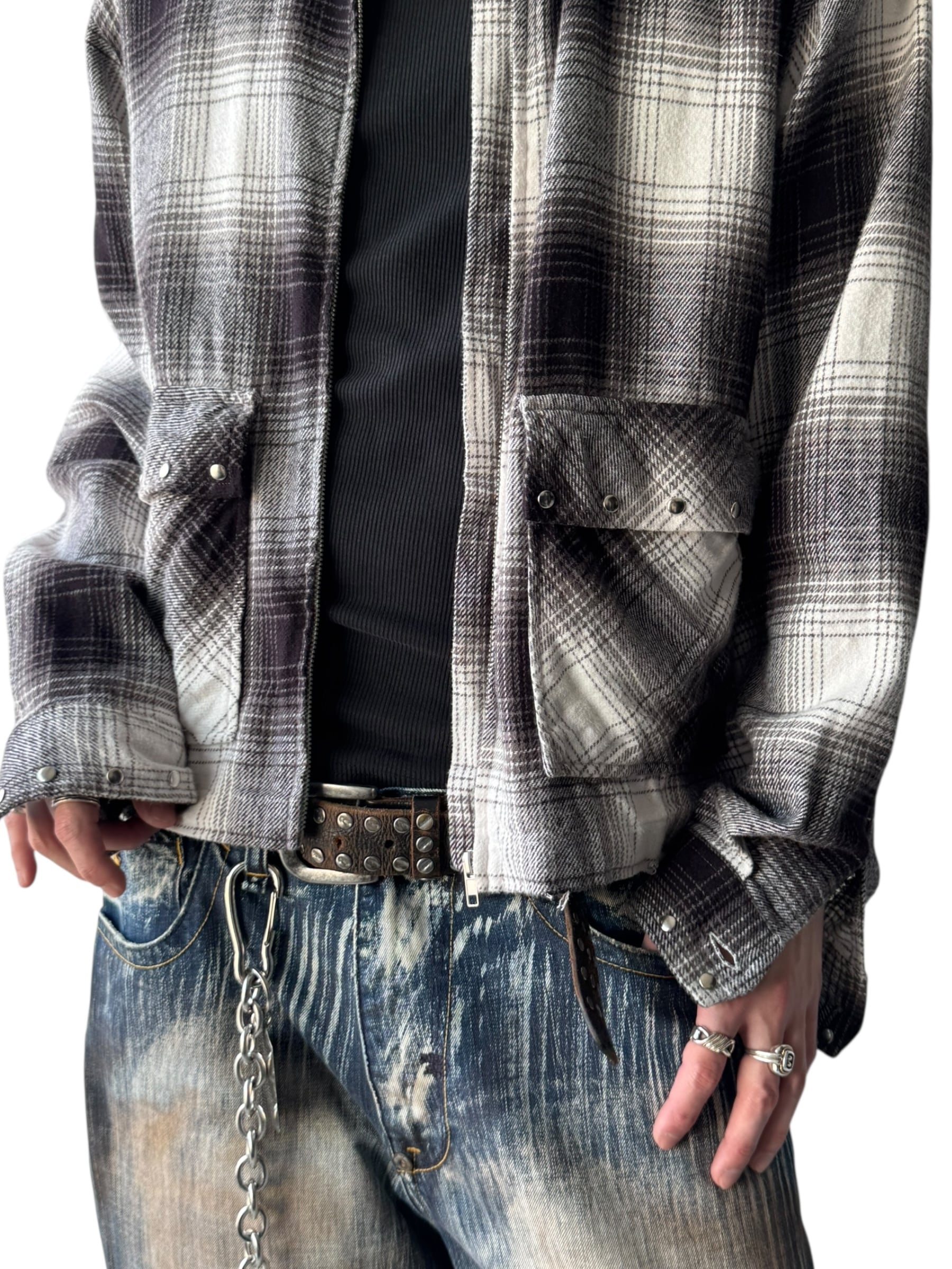 ♾beachlunchlounge♾ studs custom design ombre check zip up L/S shirt