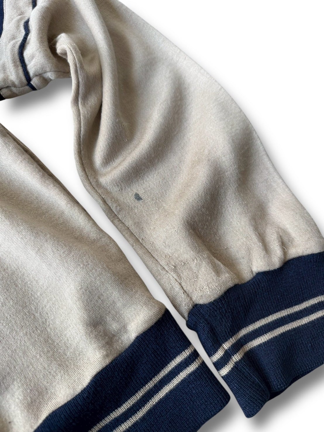上品なベージュ×ネイビーのシンプルな色の切り替えにアクセントになった袖のラインカラーがめちゃめちゃナイス✨️
