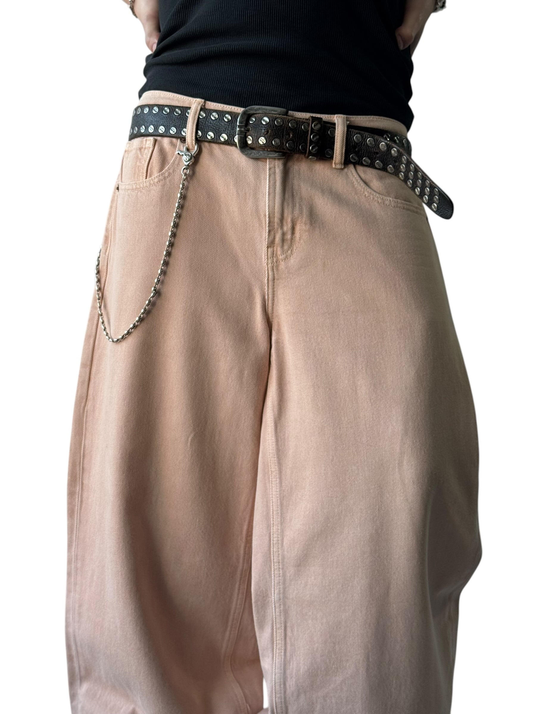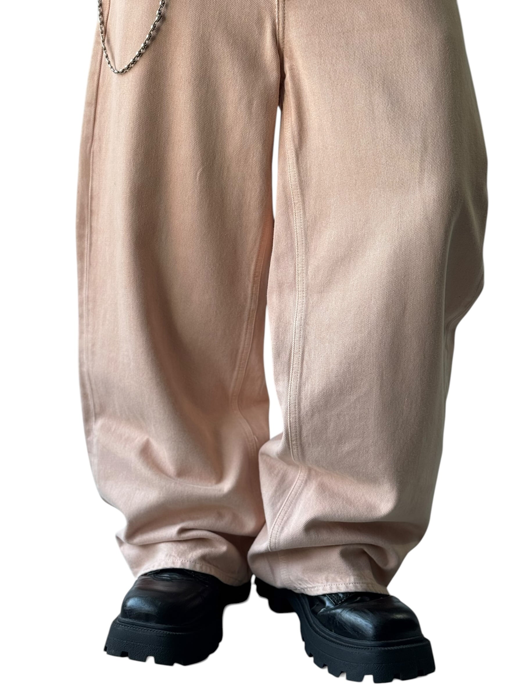 抜群のグッドワイドバギーシルエットが満足なサーモンピンクデニムパンツの入荷✨️