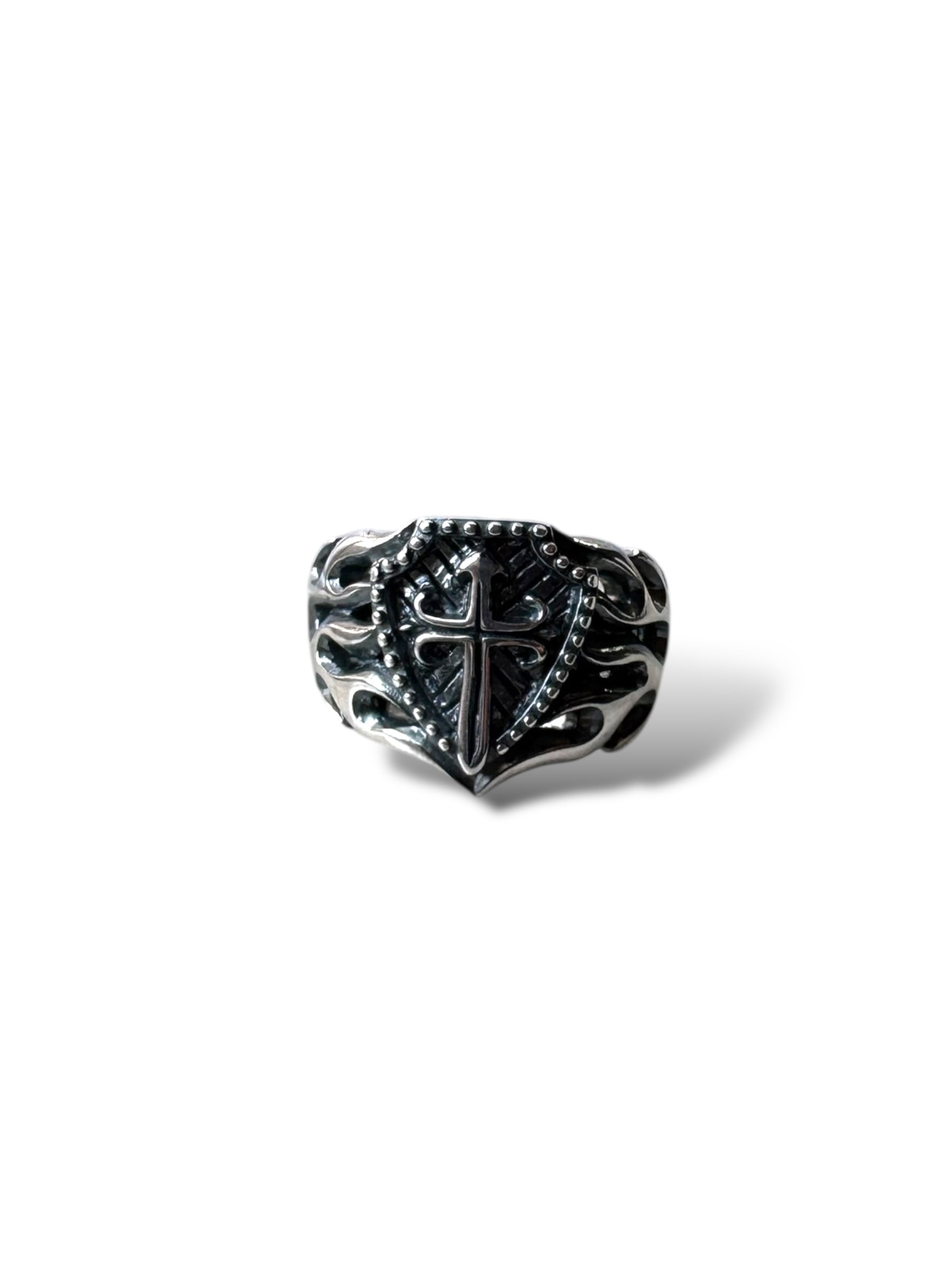 ♾vtg sterling collection♾ cross motif fire patterned shield design ring size17号19号 sv925
