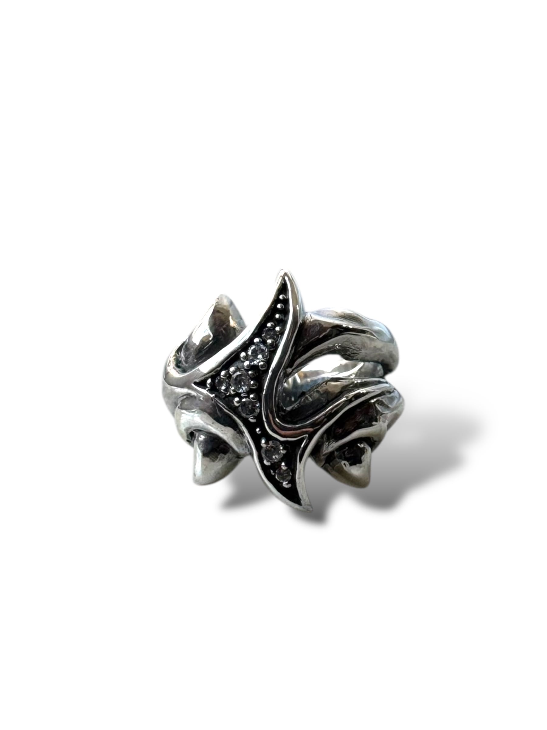 ♾vtg sterling collection♾ tribal organic cz design wide ring size16号 sv925