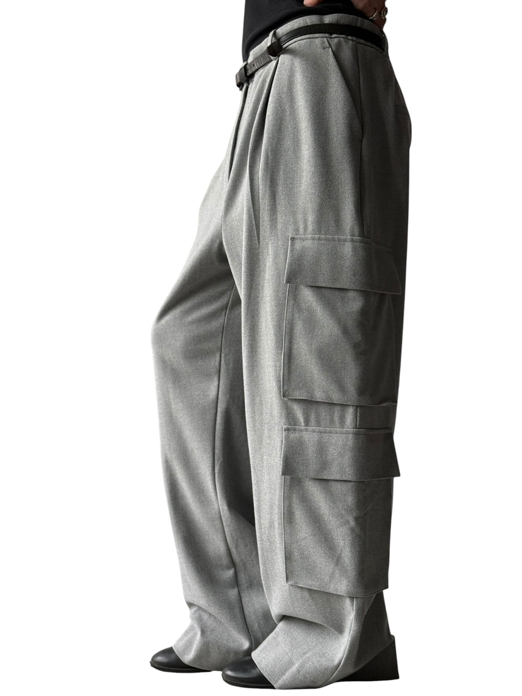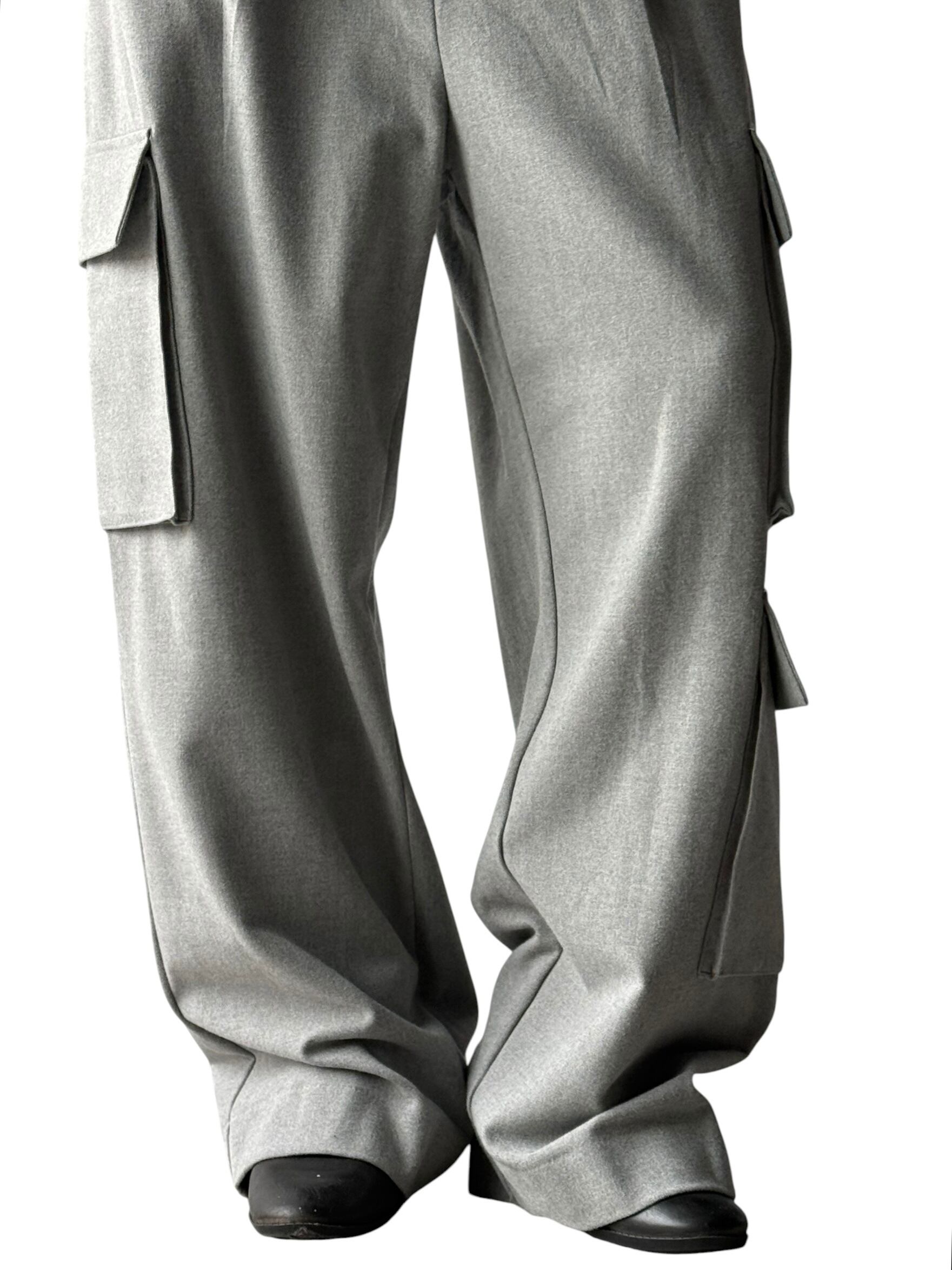 Flannel fabric cargo wide slacks