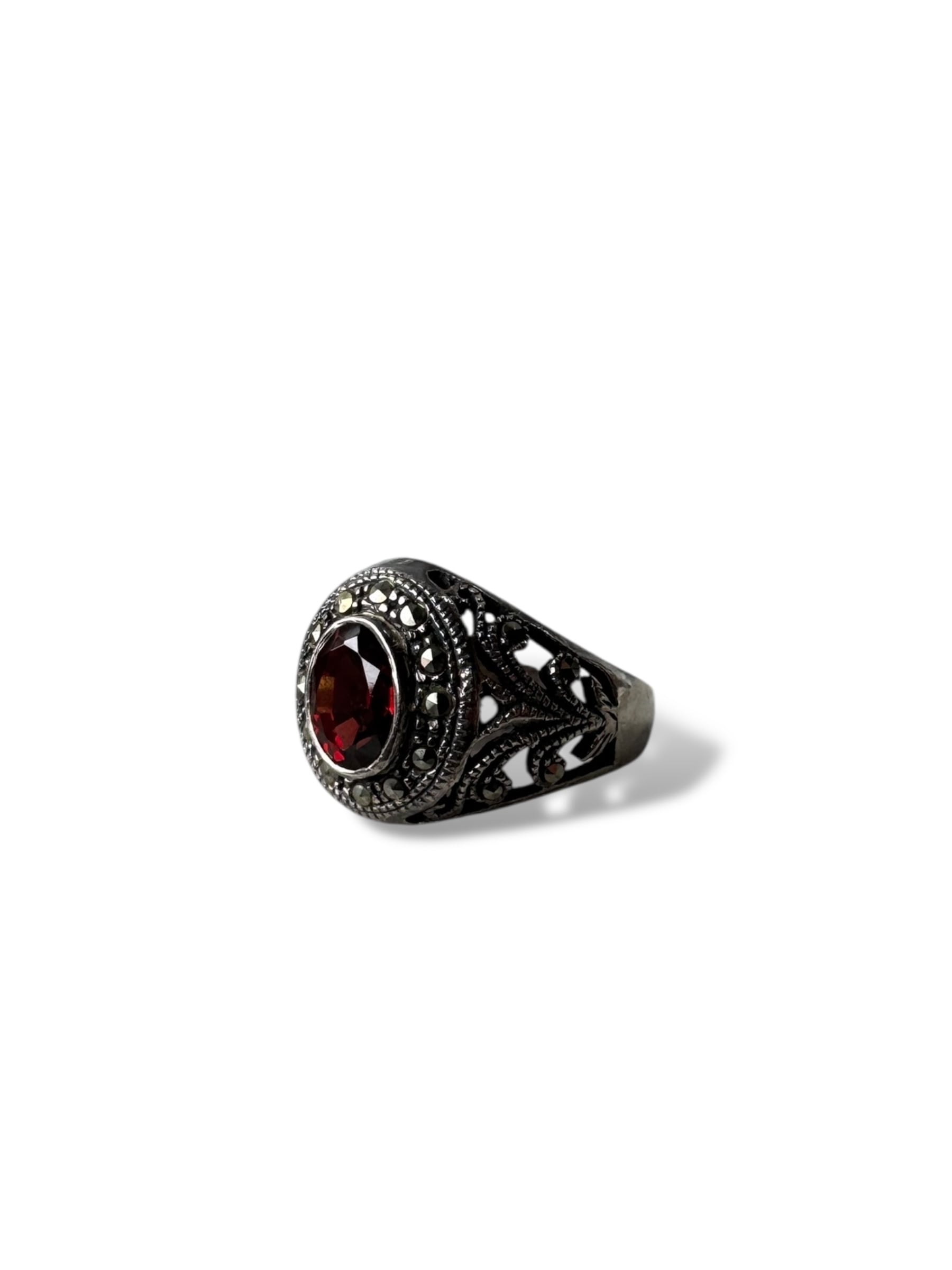 ♾vintage silver jewellery♾ red stone college ring size 15号 sv925