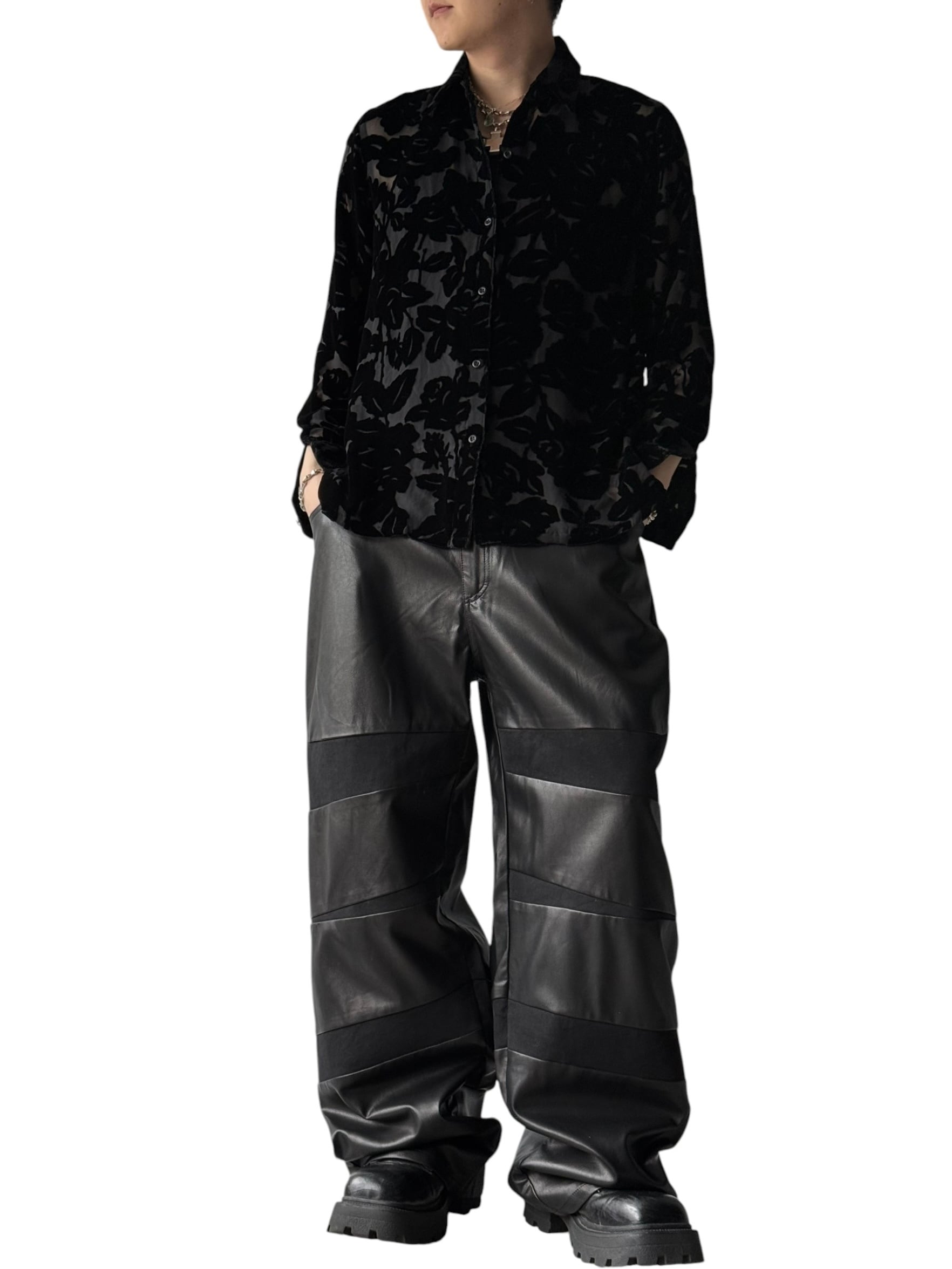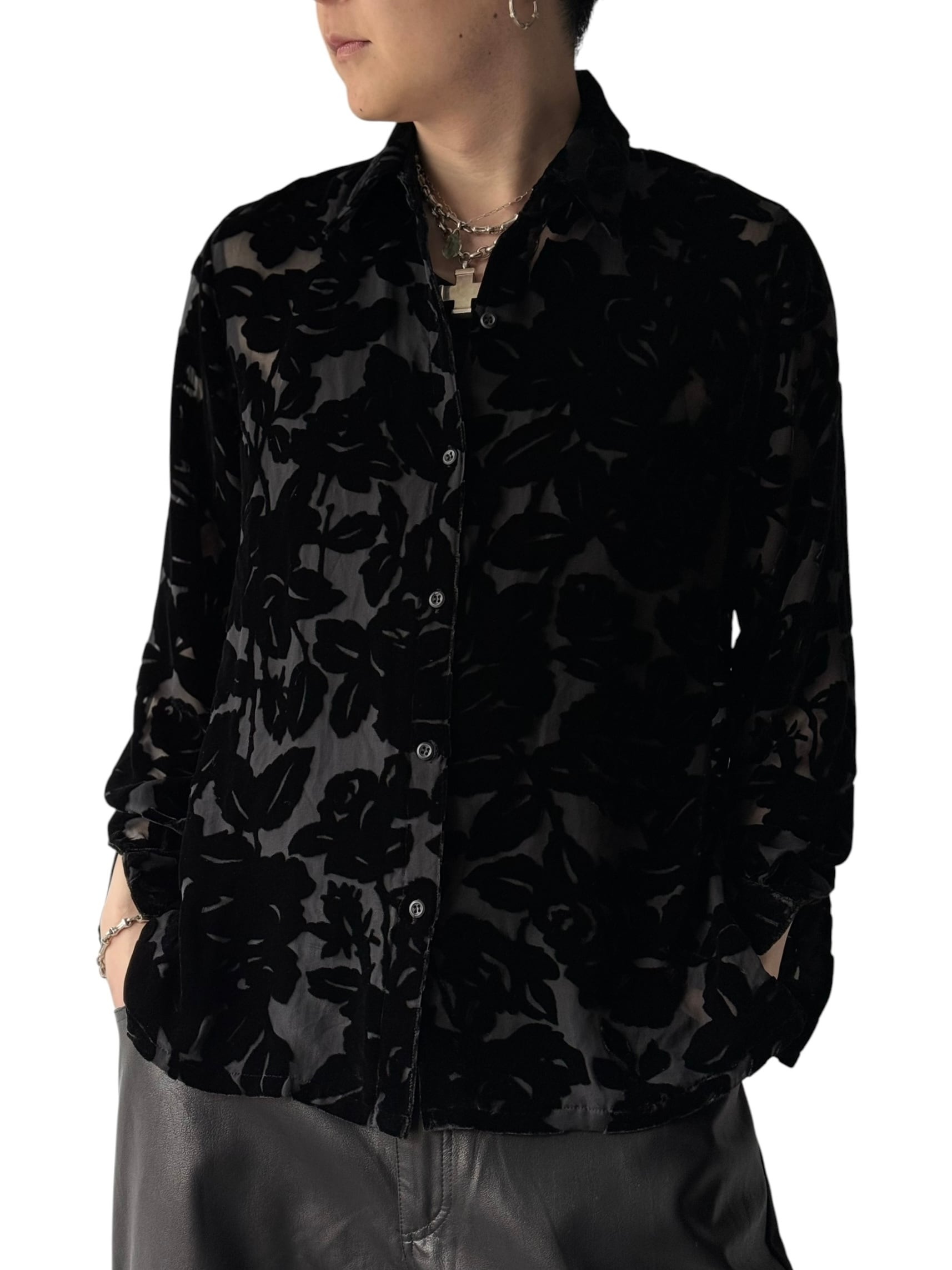 【Design used】 Rose pattern velvet sheer shirt