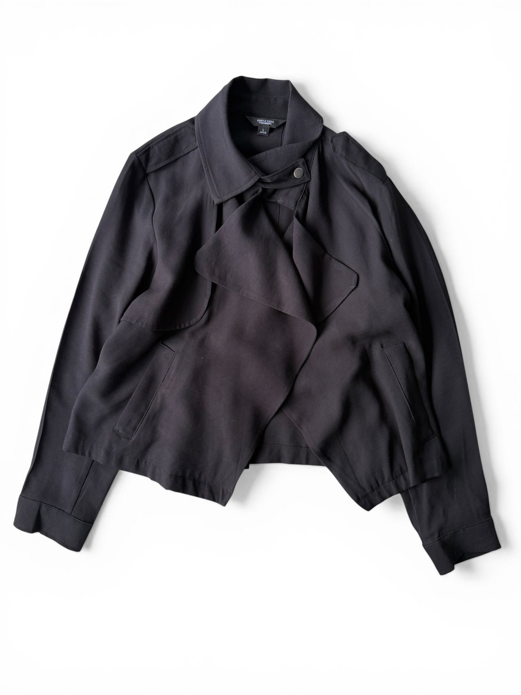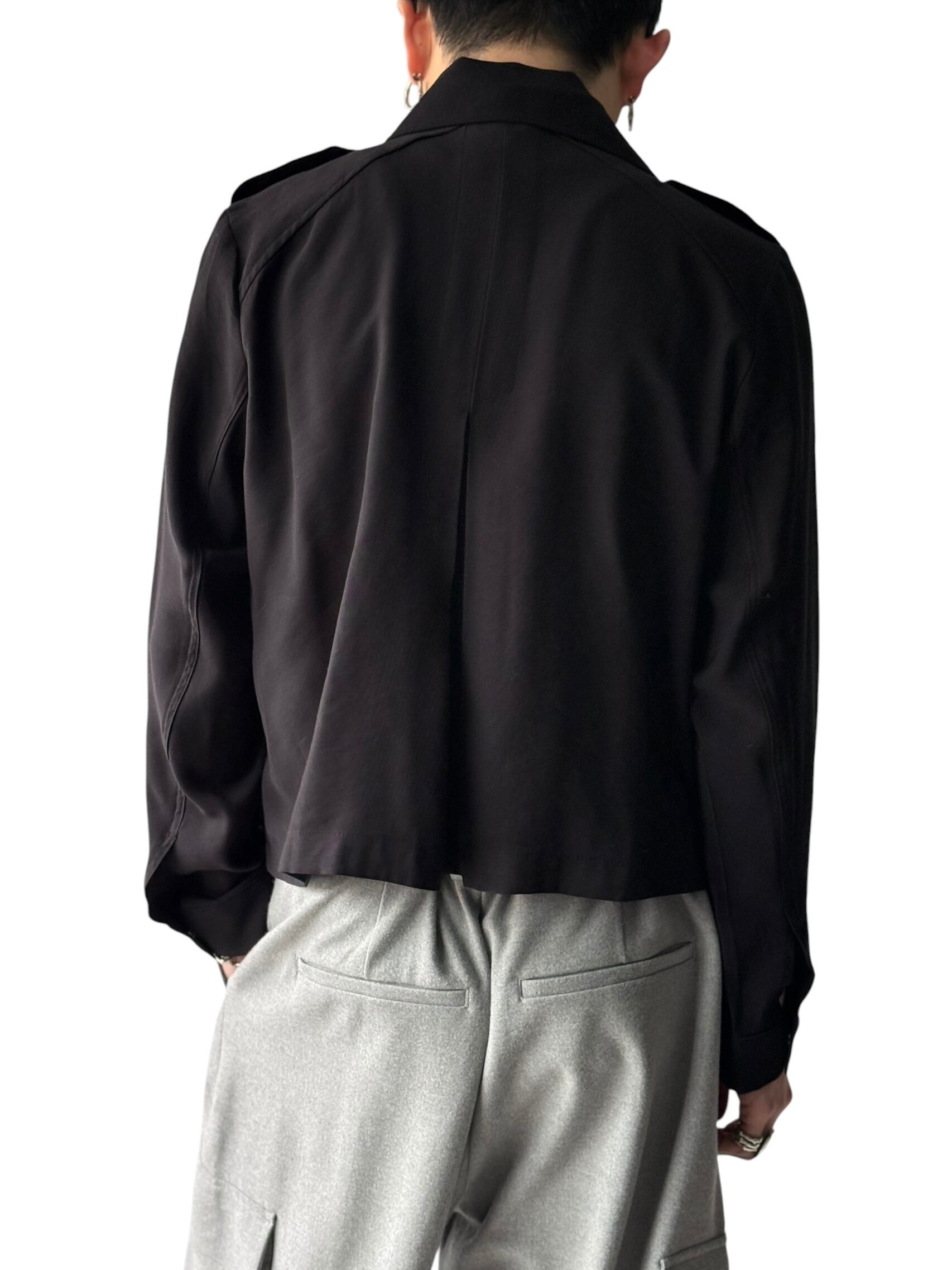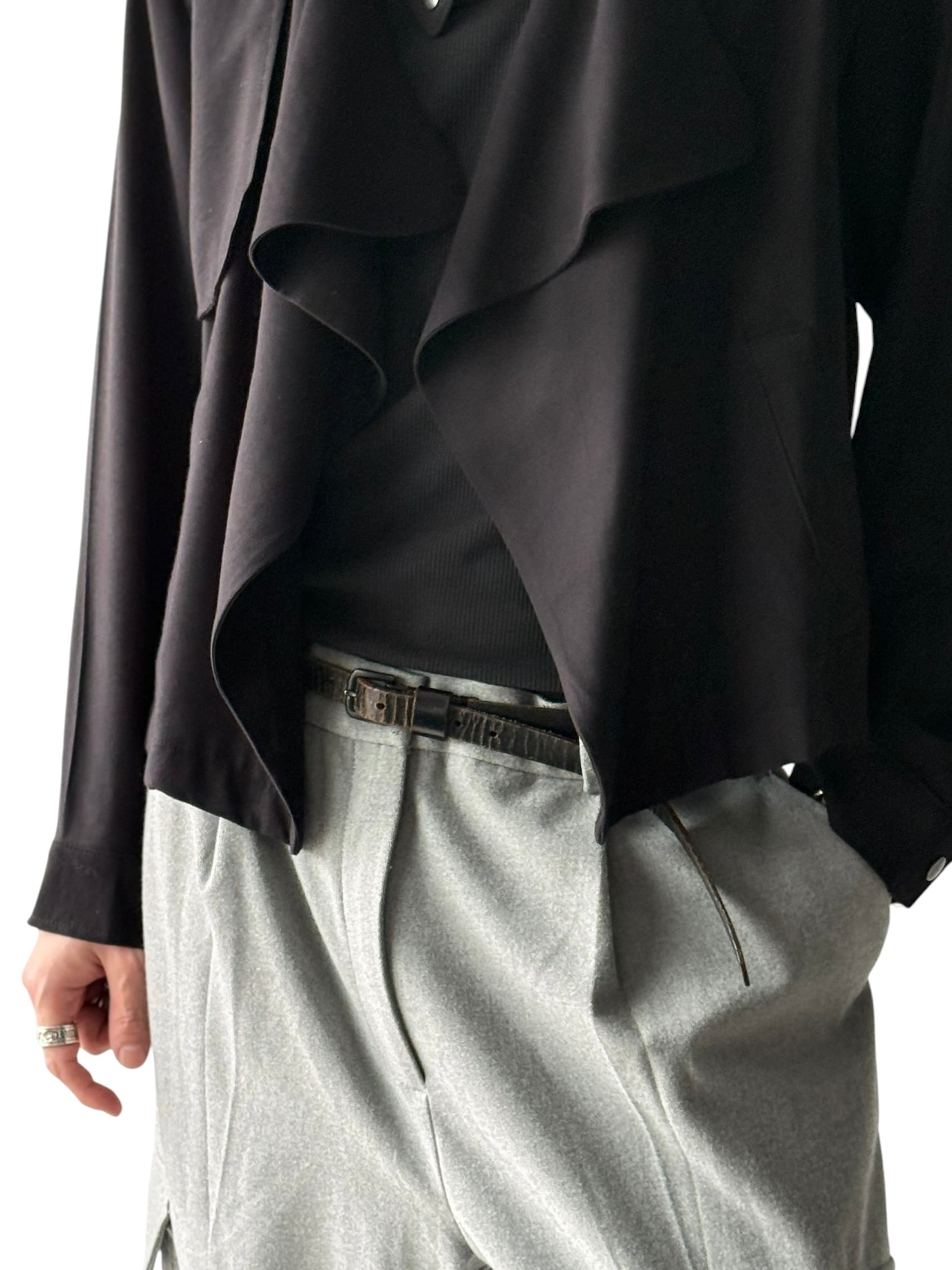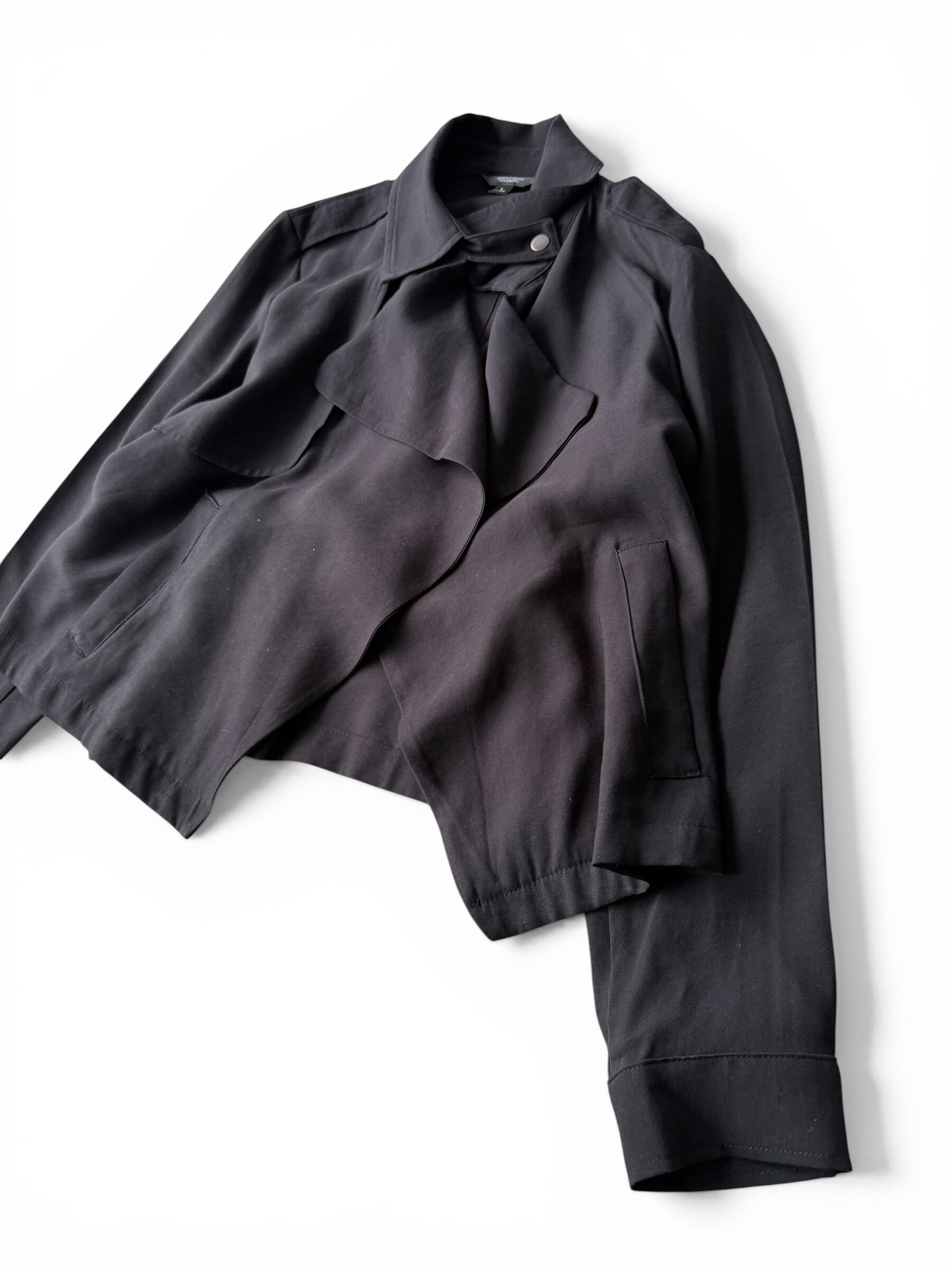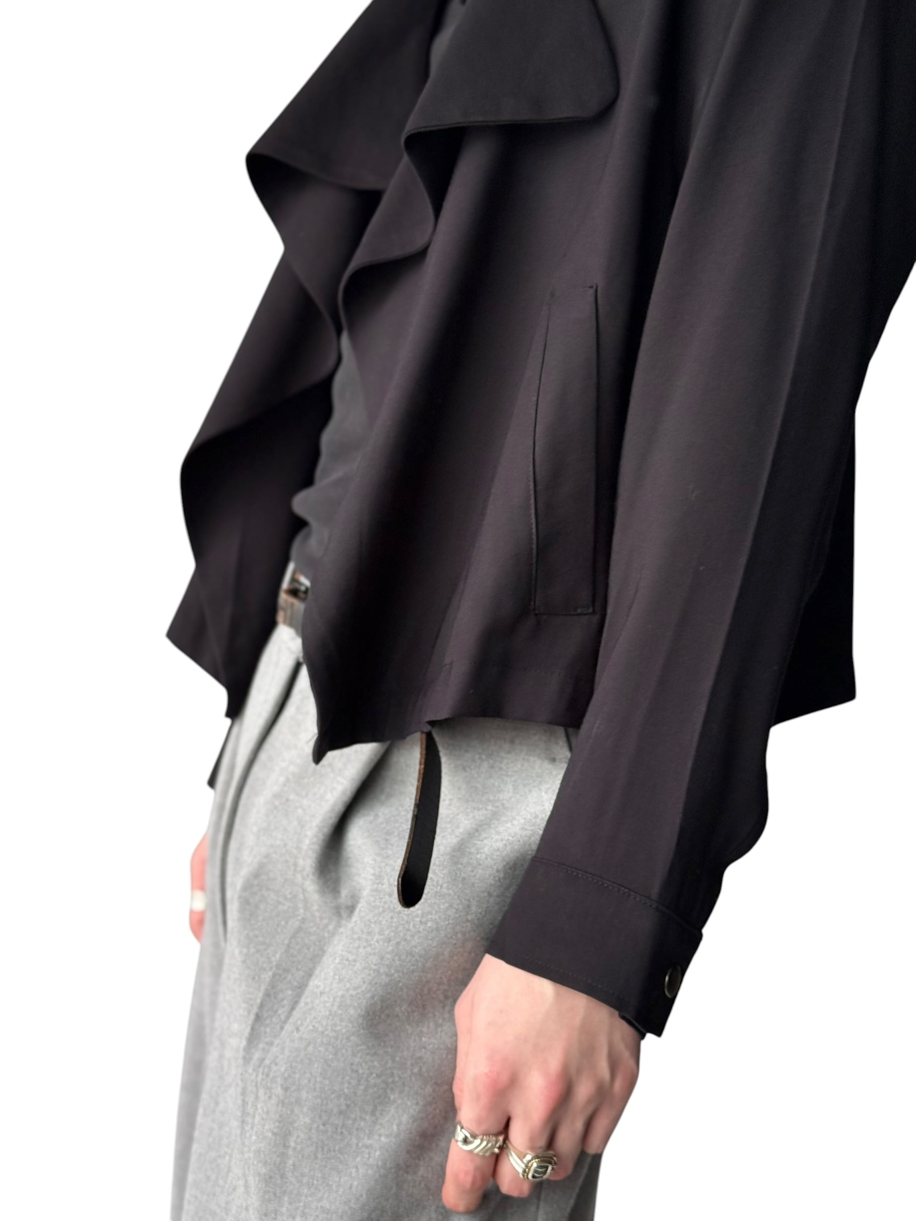 モードな雰囲気抜群のフリルデザインが施されたショートジャケット。