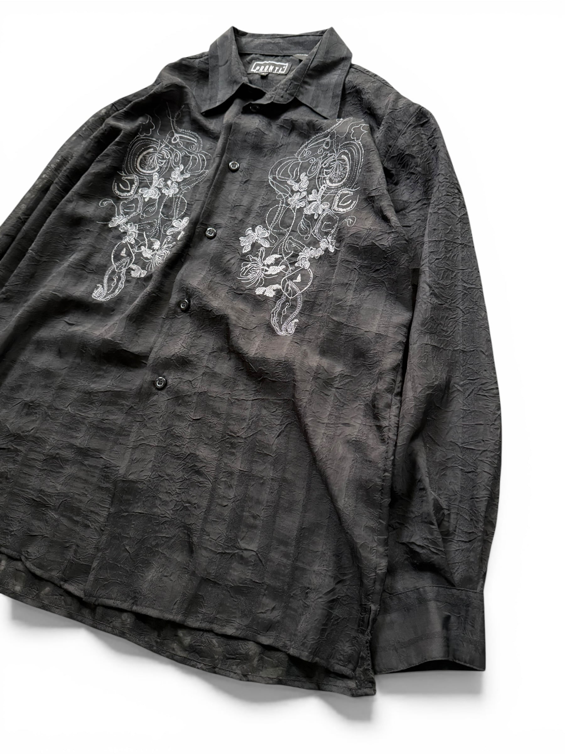 【PRONTI】 Processed fabric, embroidered, sheer striped shirt