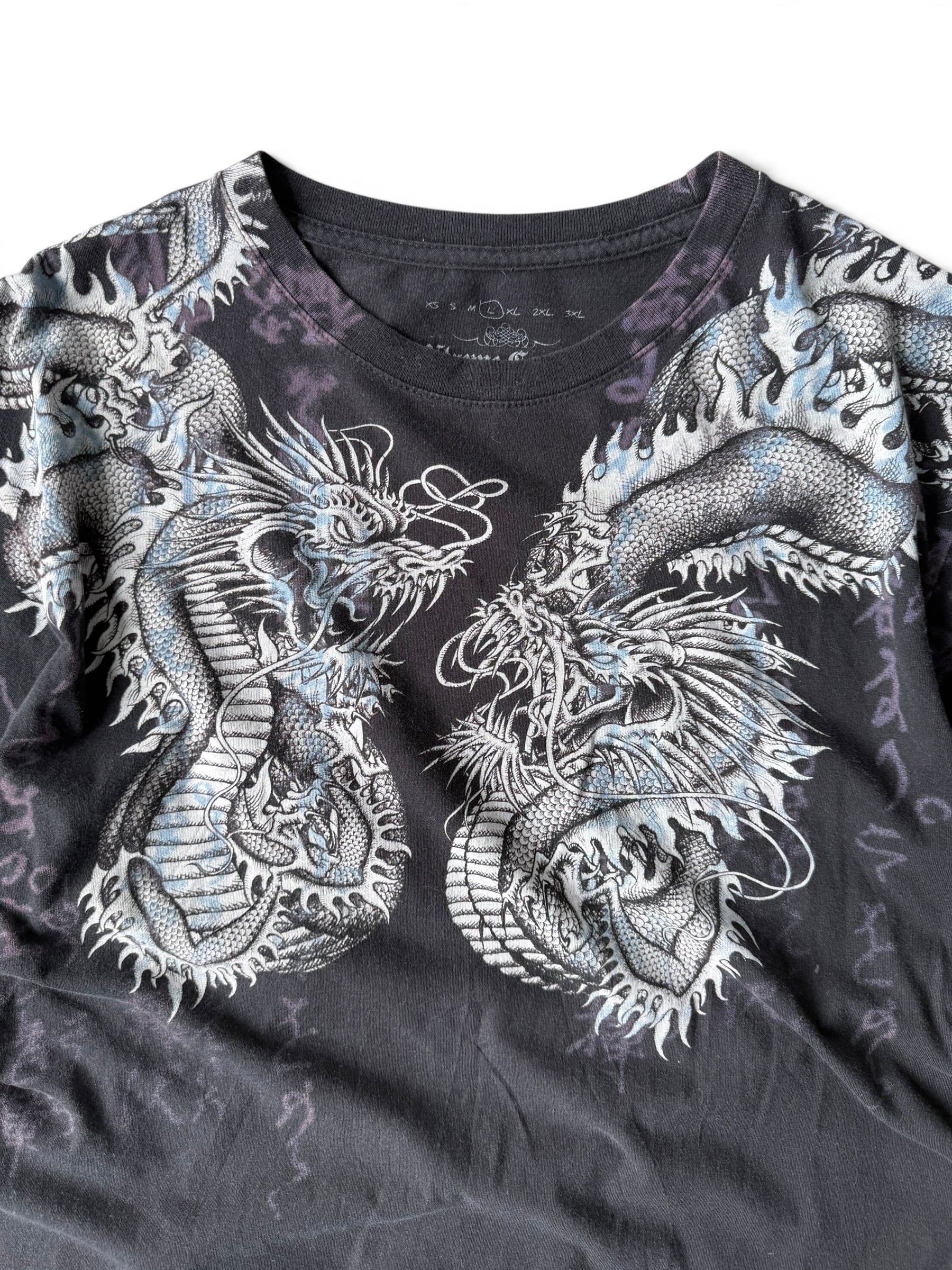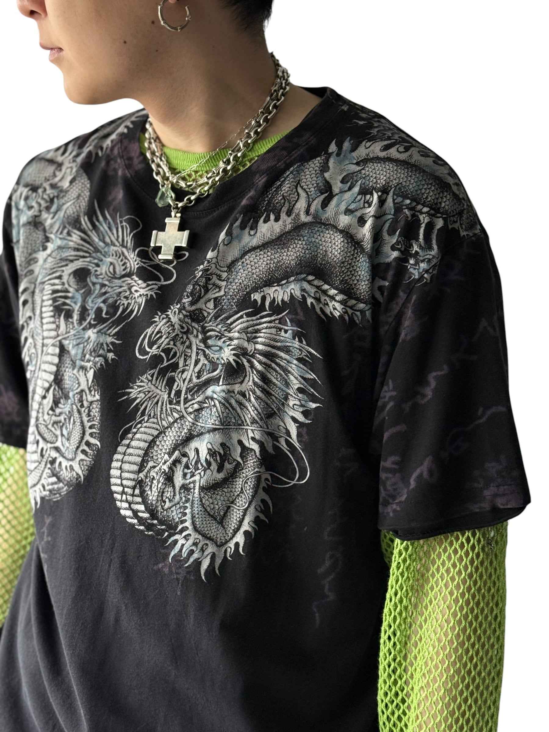 黒ボディに禍々しいドラゴンがフロントとバックにかけてプリントされたインパクト抜群なTシャツ!!!