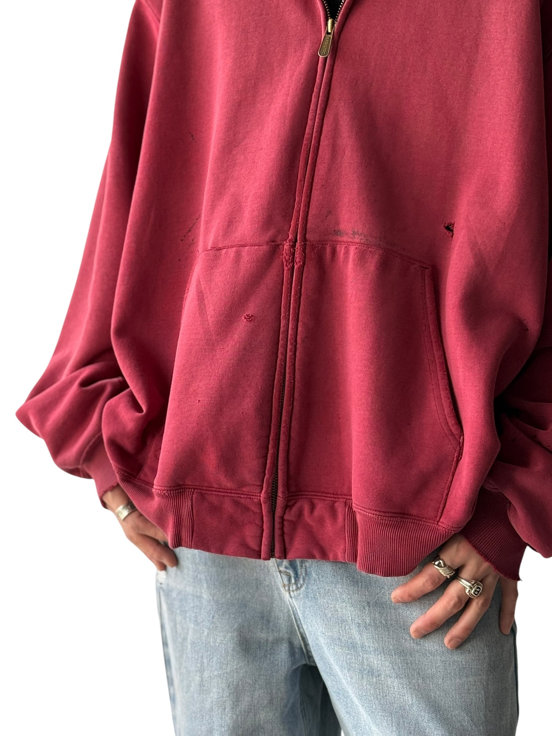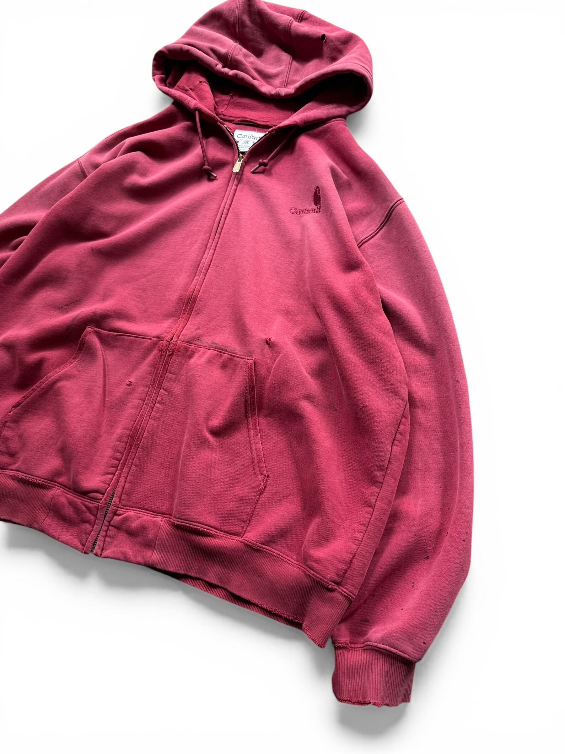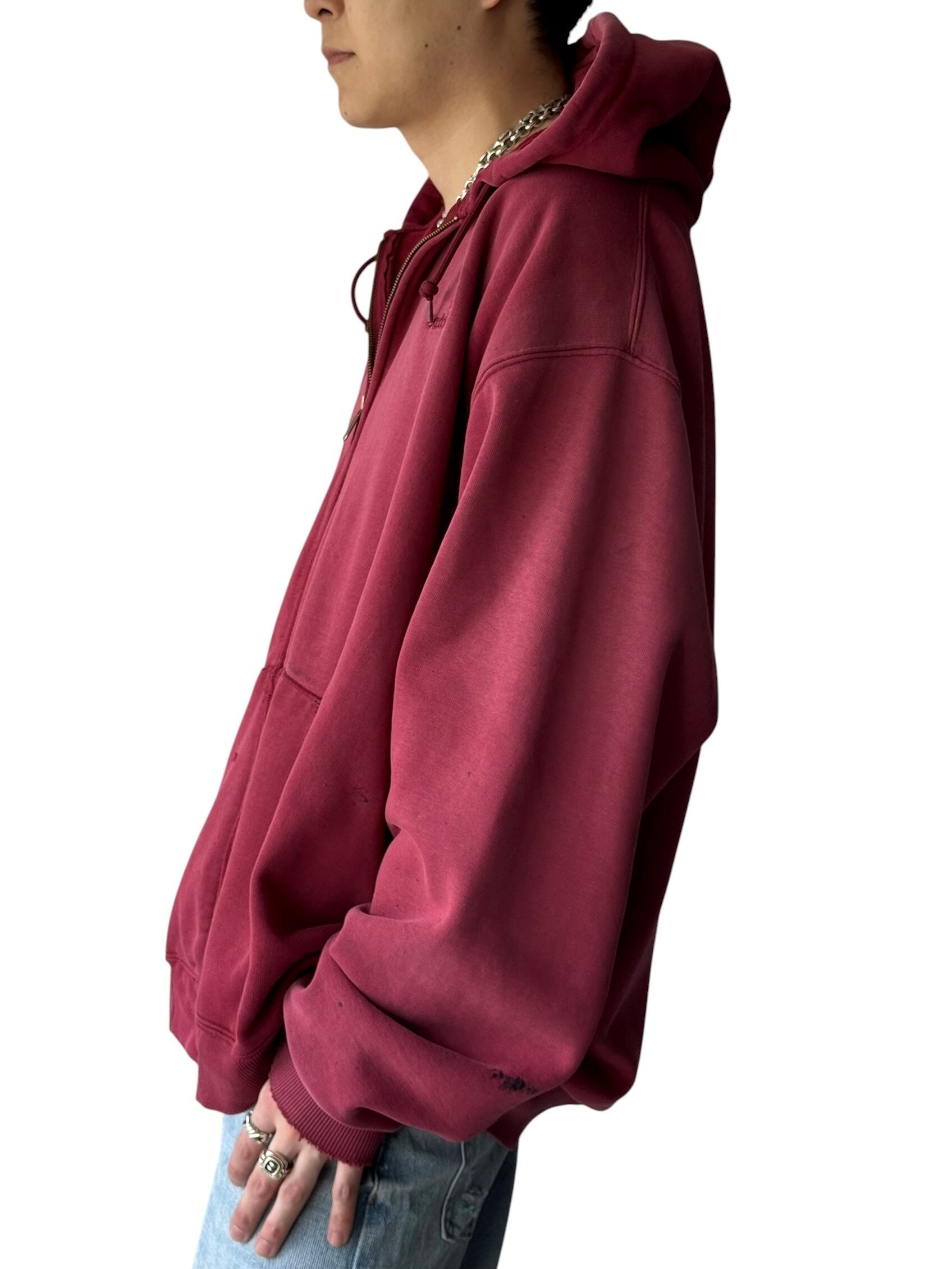 【Carhartt】 Sunfade distressed zip hoodie -Red aging-