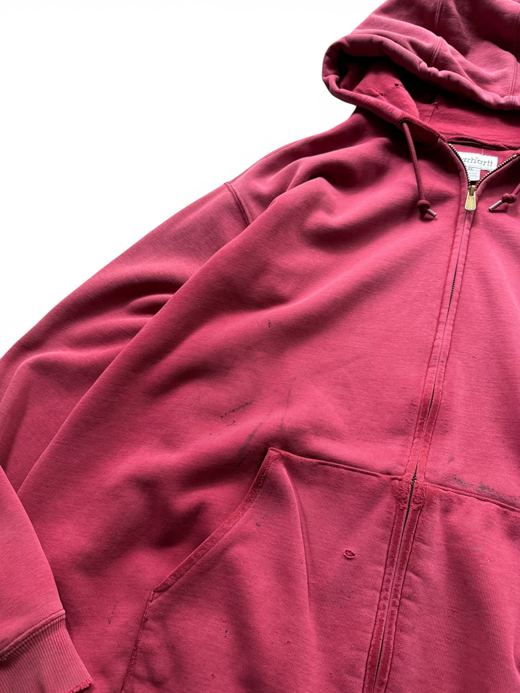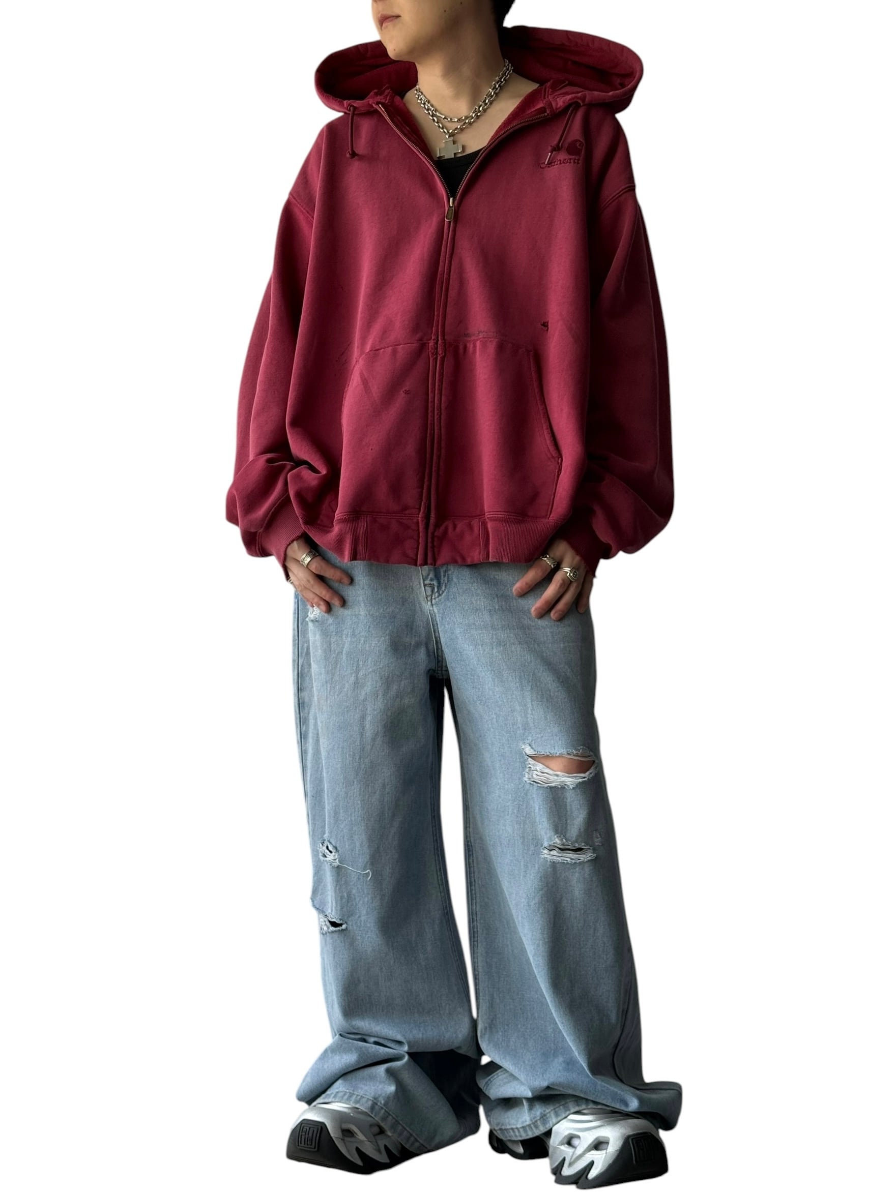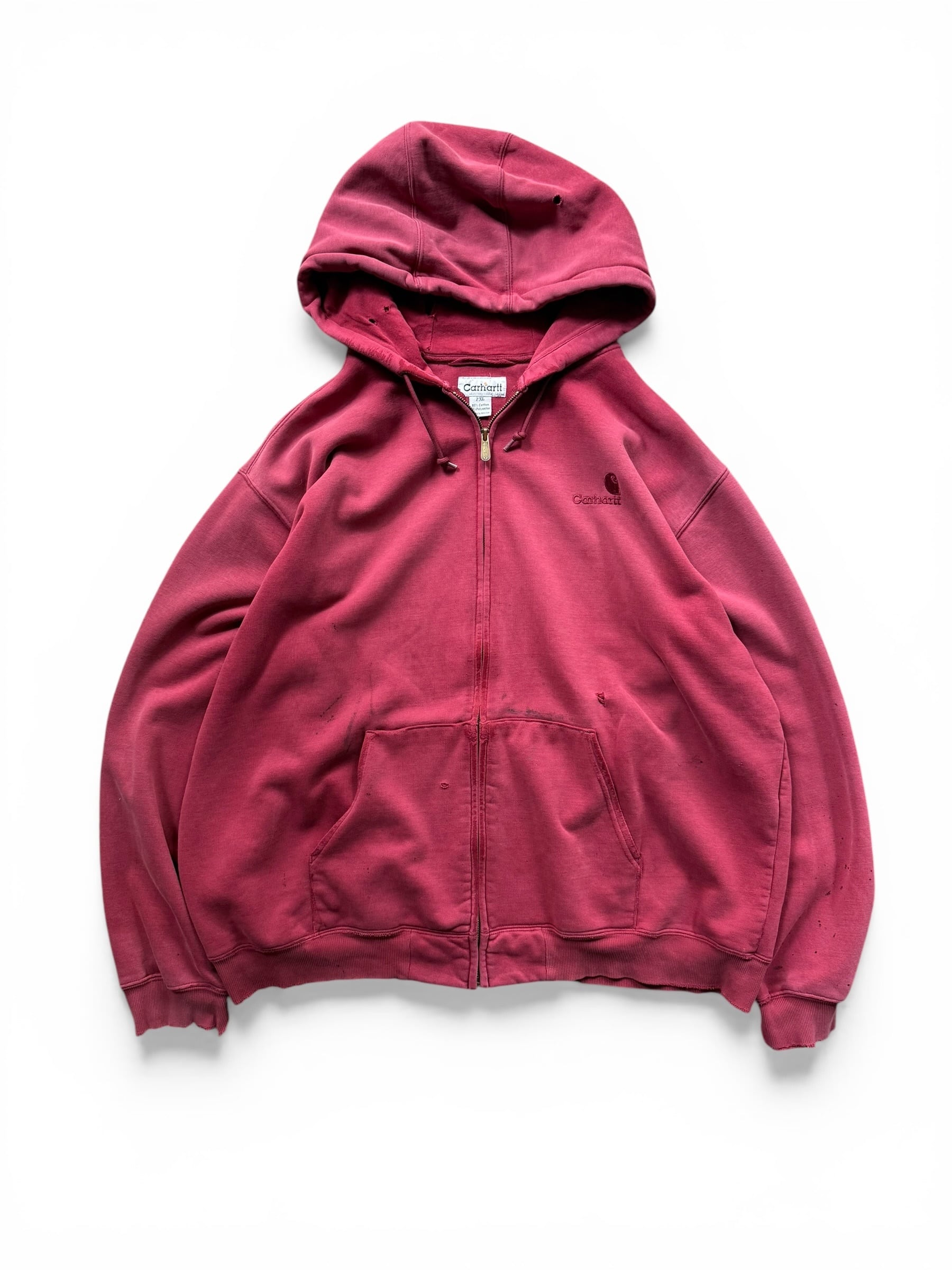 【Carhartt】 Sunfade distressed zip hoodie -Red aging-