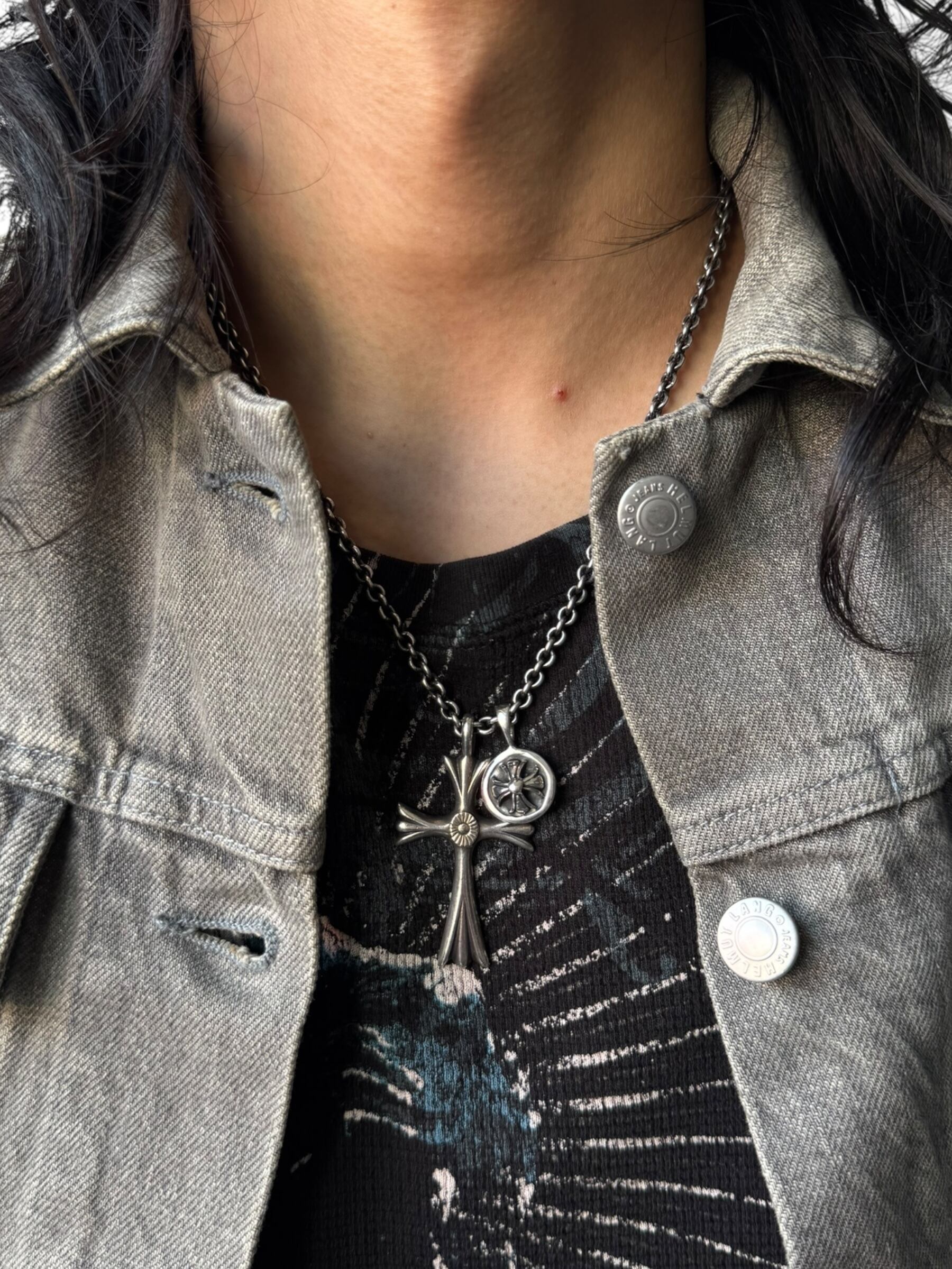 存在感のある特大クロスと、安定感抜群なクロスボールが連なったダブルトップデザインネックレス‼️✨️