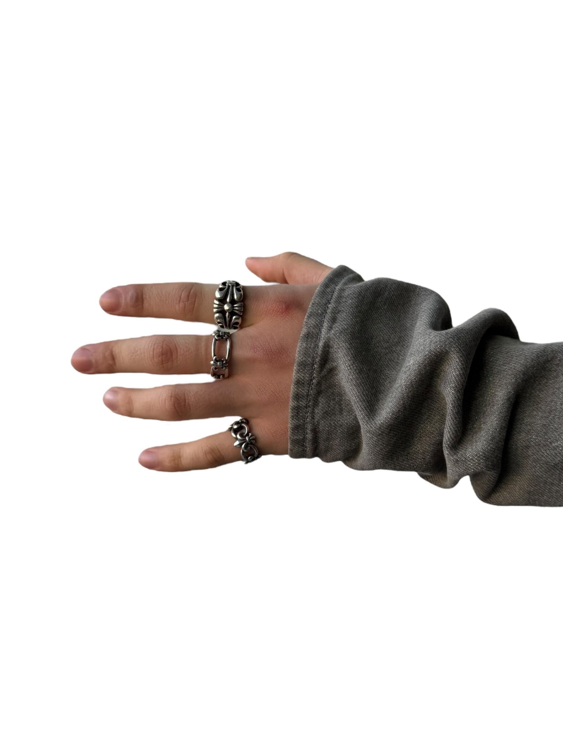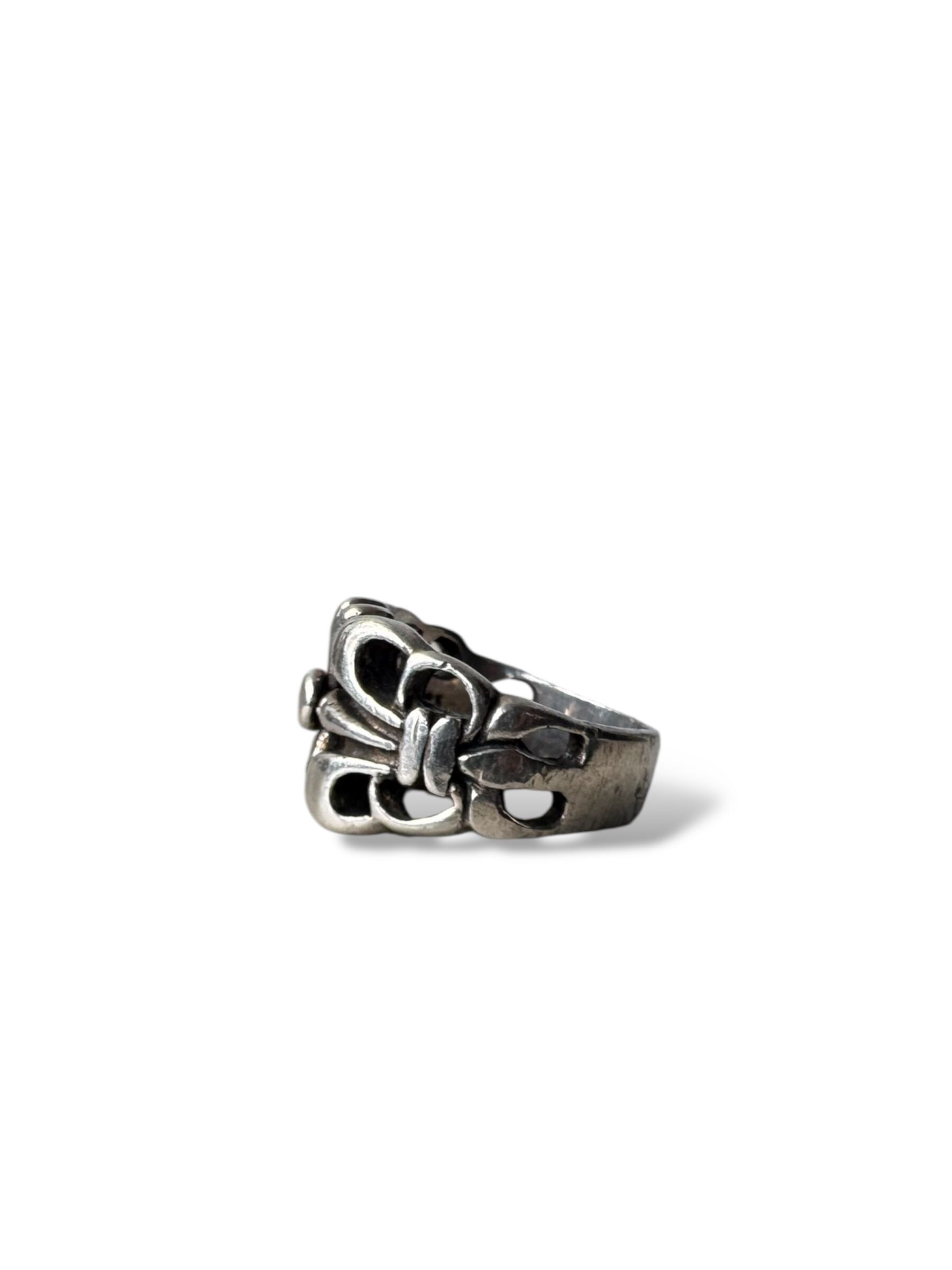 ♾vintage silver jewellery♾ Double Floral Cross Design Ring size 16号 sv925