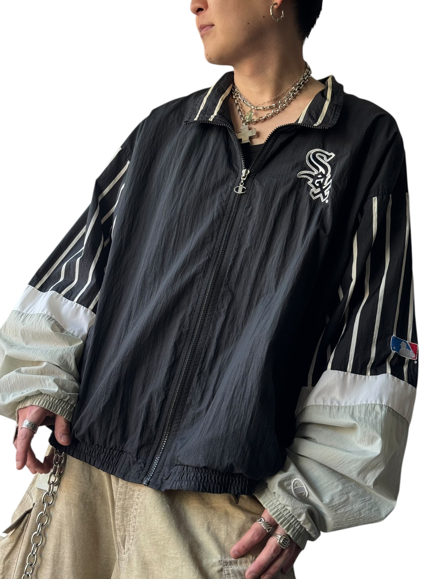 ♾90's Champion♾ MLB Chicago White Sox design zip up nylon jacket sizeXL