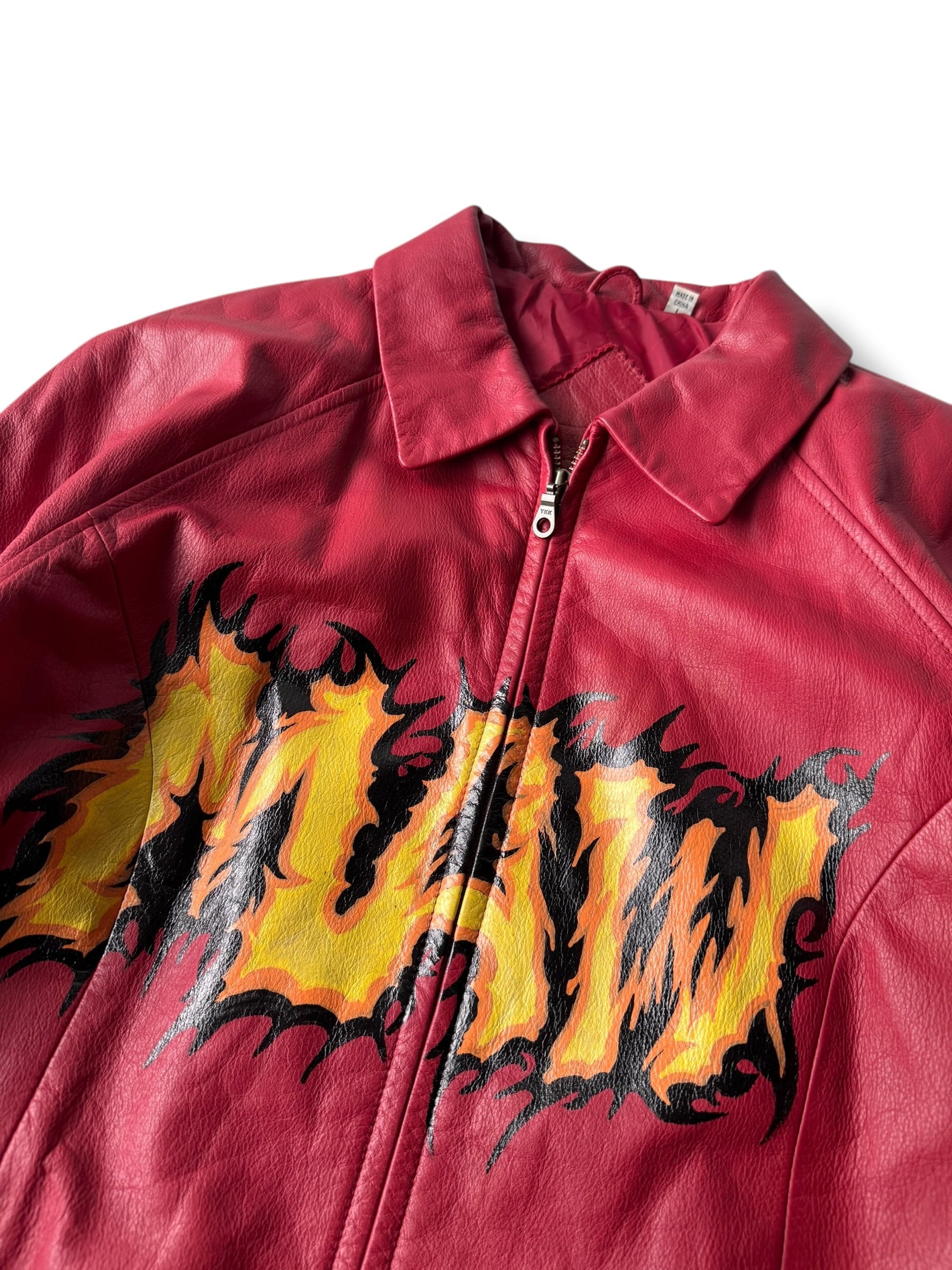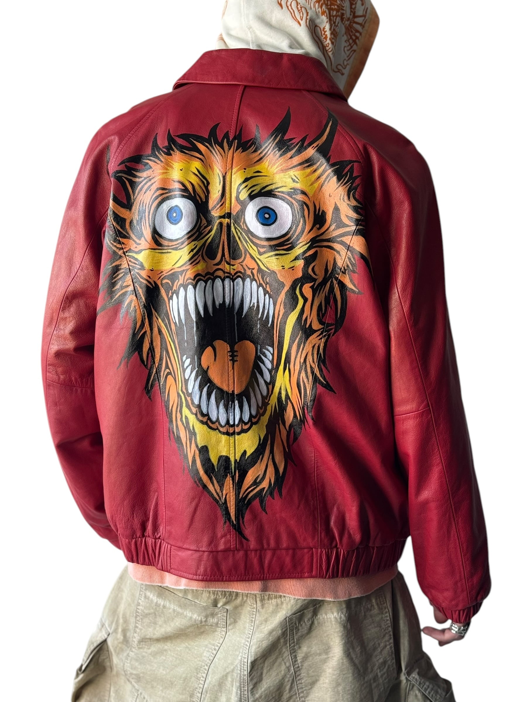 ♾PRESTON&YORK♾ "MAW" hand painted design zip up leather jacket