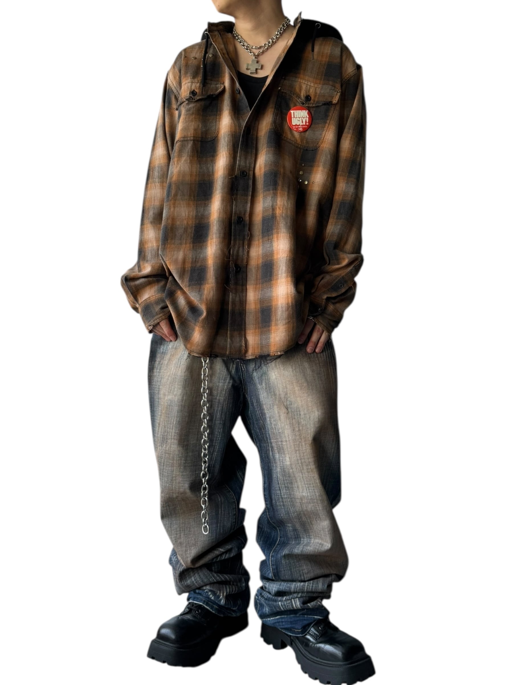 おとなっぽいカラーや渋いダメージデザインに加え、フーディやさり気無いスタッズや胸元の缶バッジなど可愛さも相まった超贅沢1級品✨️