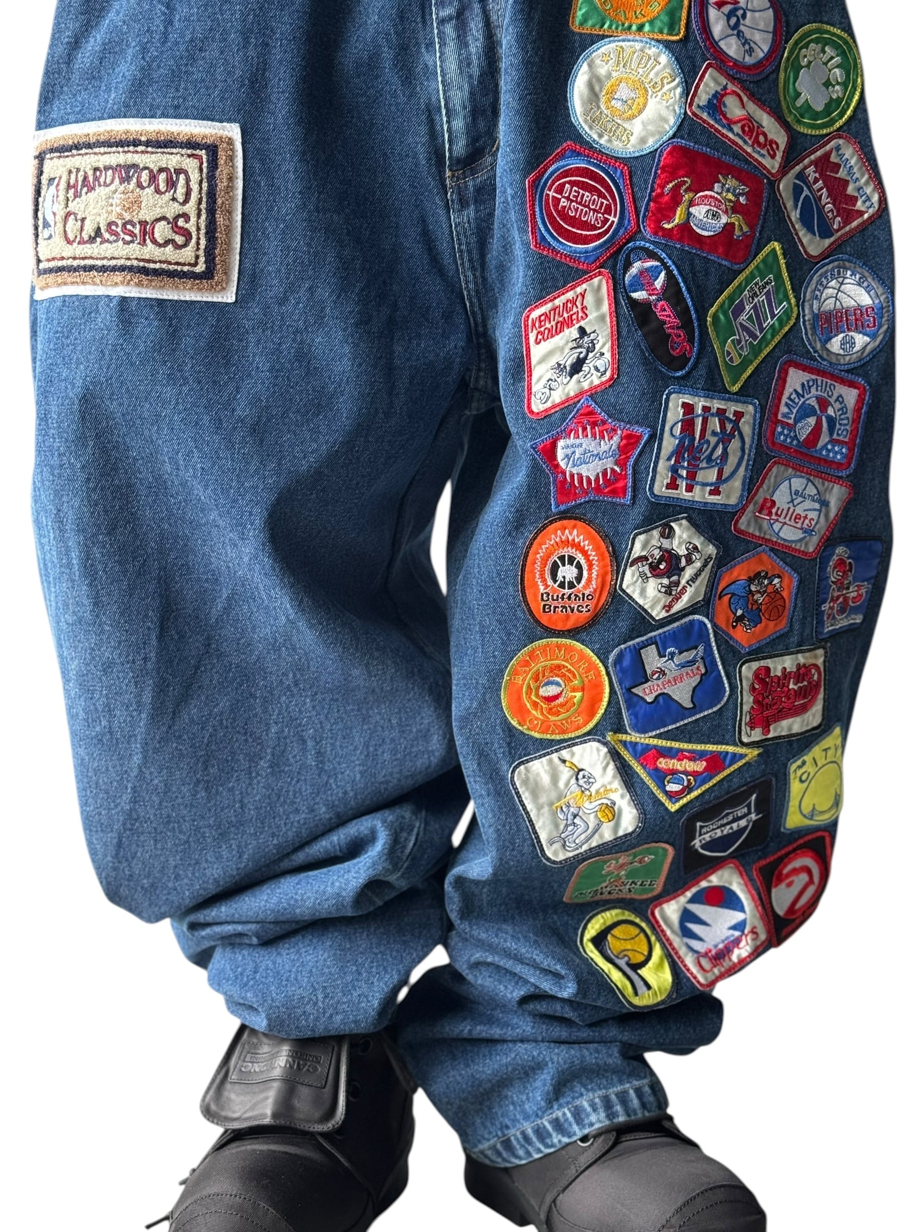 ♾️JEFF HAMILTON♾️ "NBA ALL STAR" Design patched buggy denim pants size 44