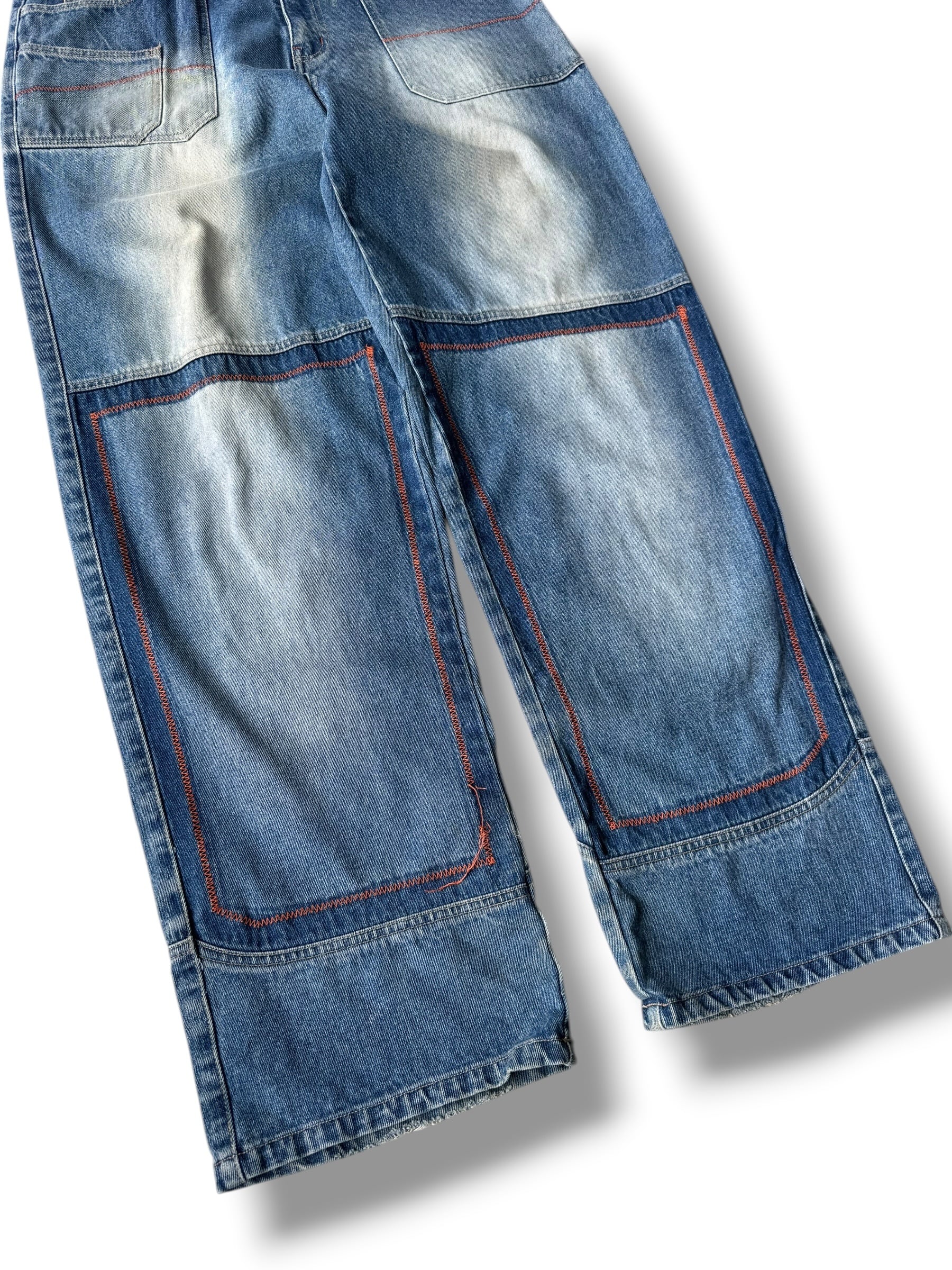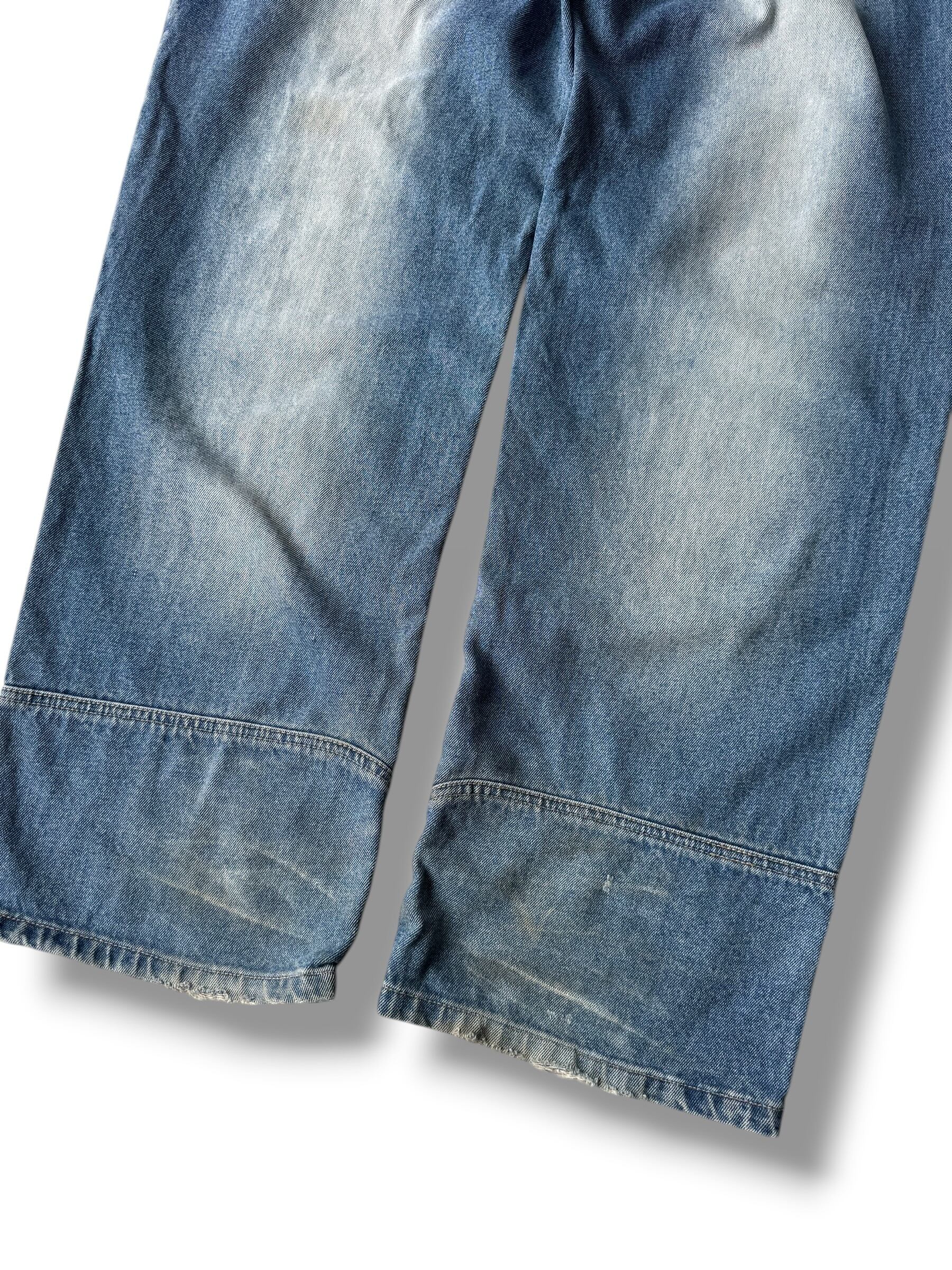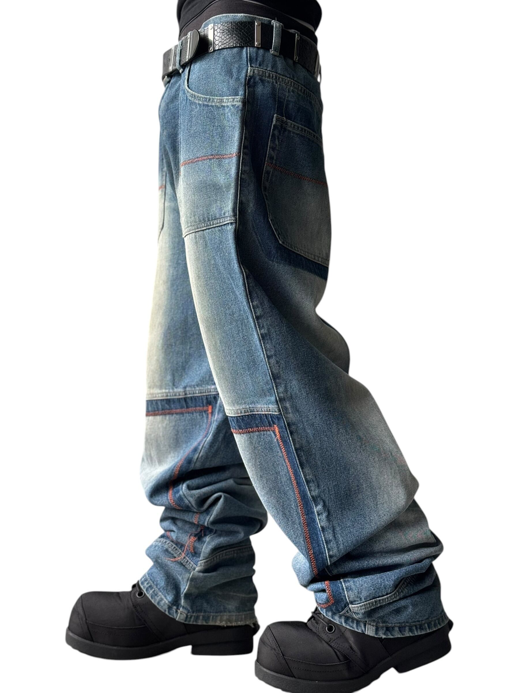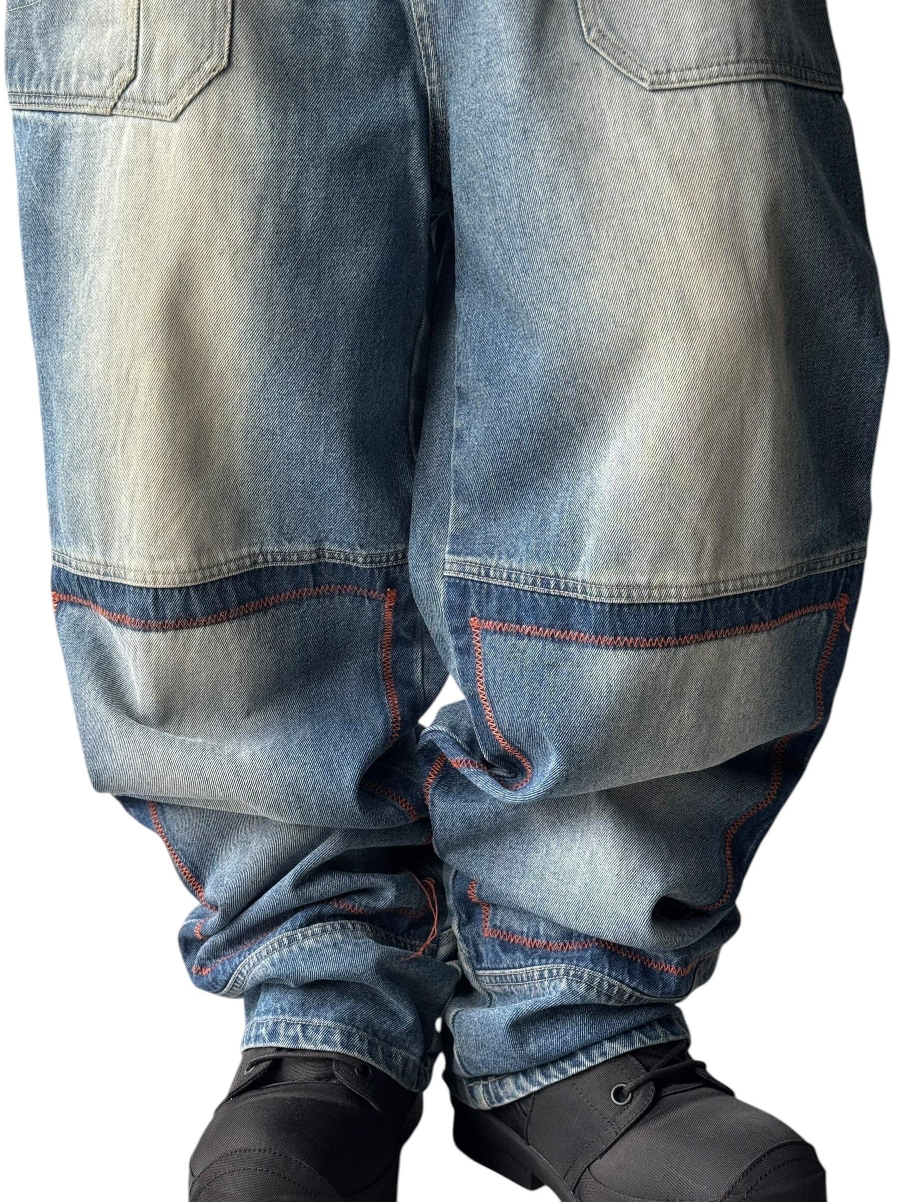 Knee-stitched wide silhouette baggy denim pants