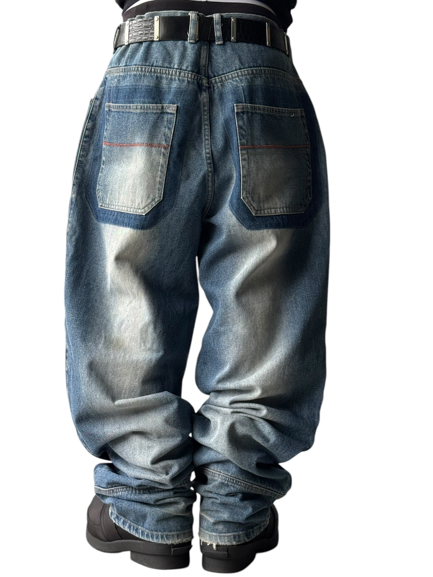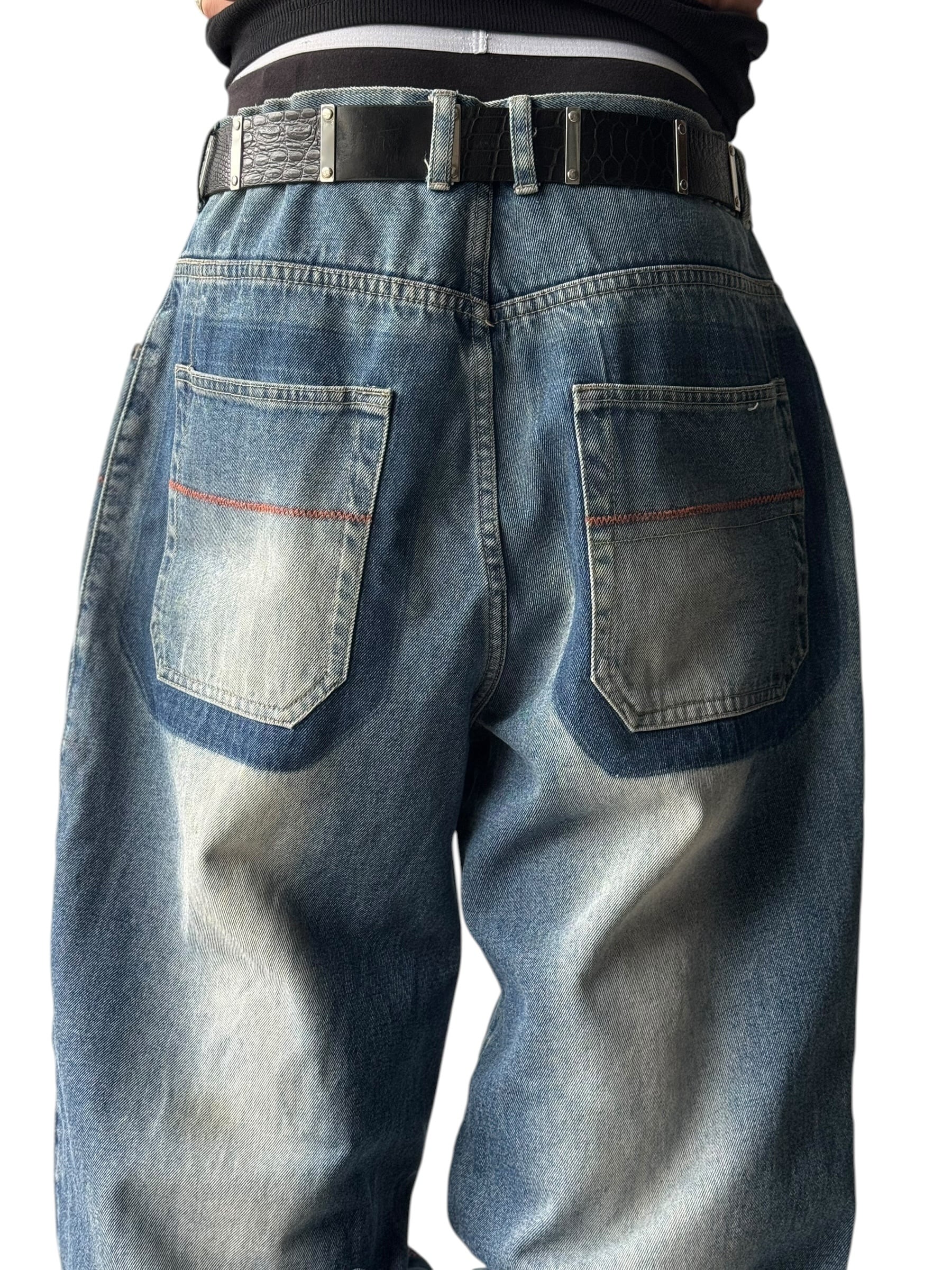 ♾️90’s akademiks♾️ Knee-stitched wide silhouette baggy denim pants