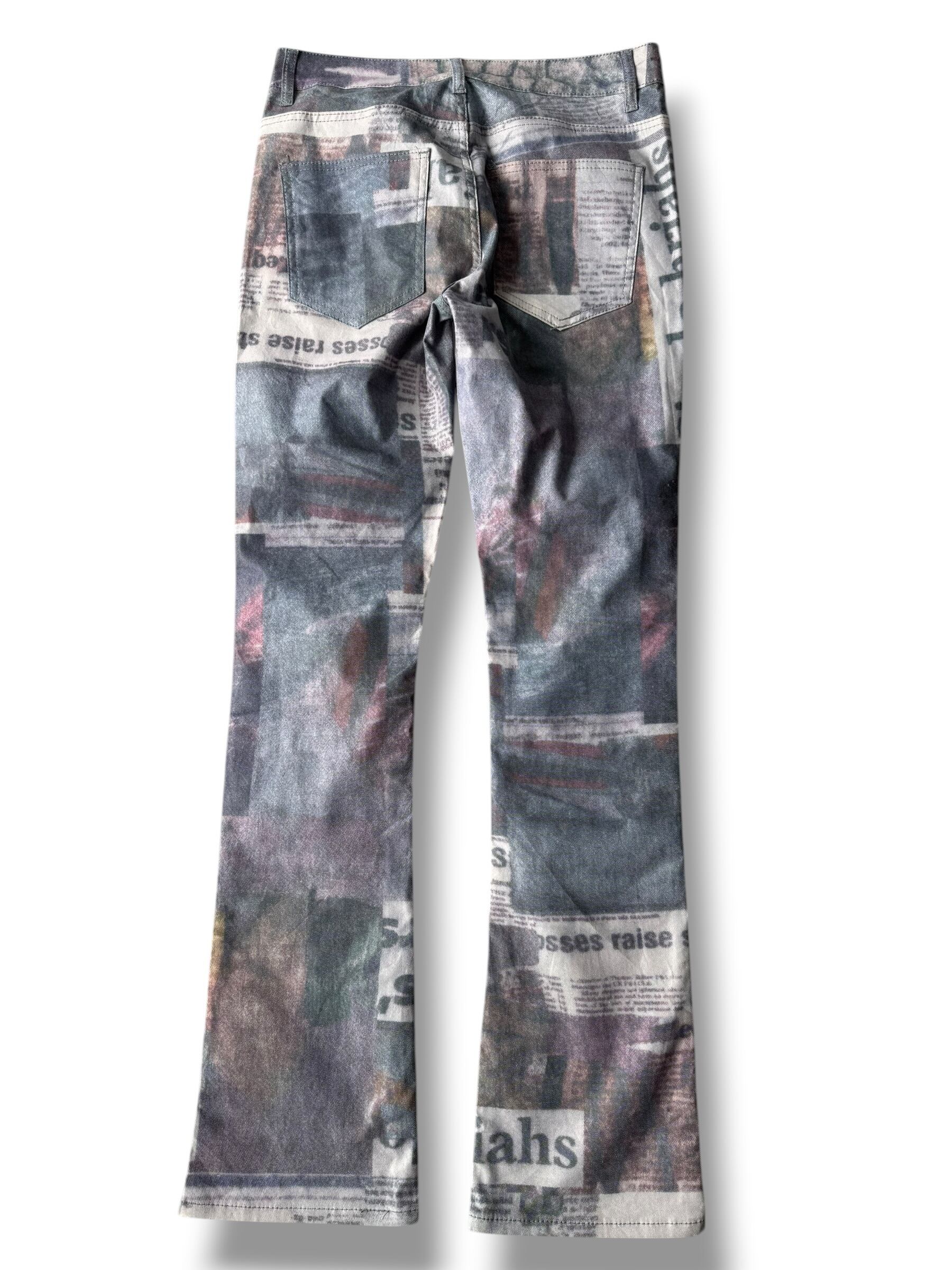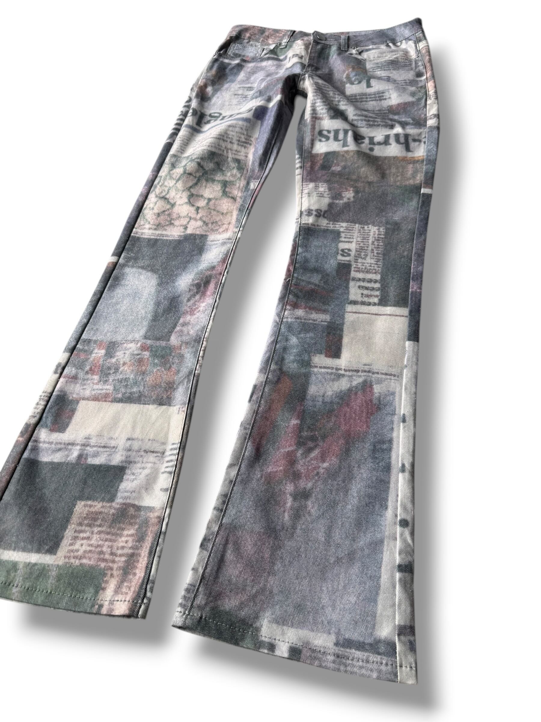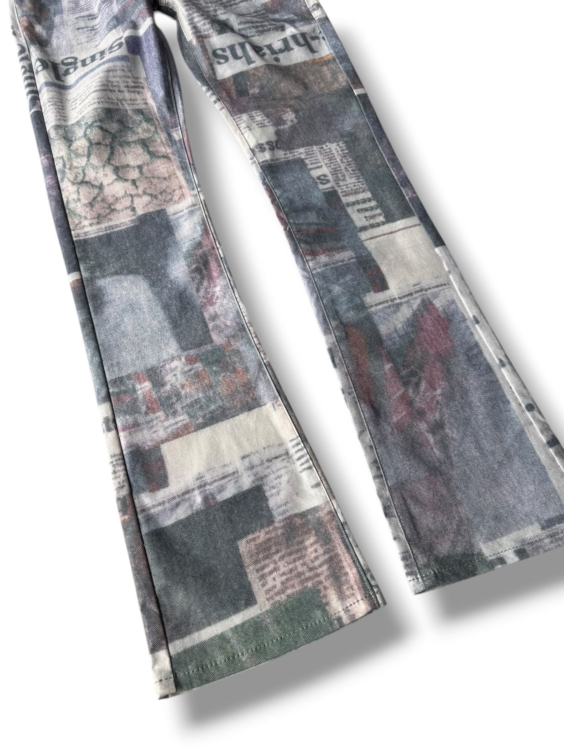 ニュースペーパーのデザインが転写されたクールなフレアパンツの入荷❣️❣️