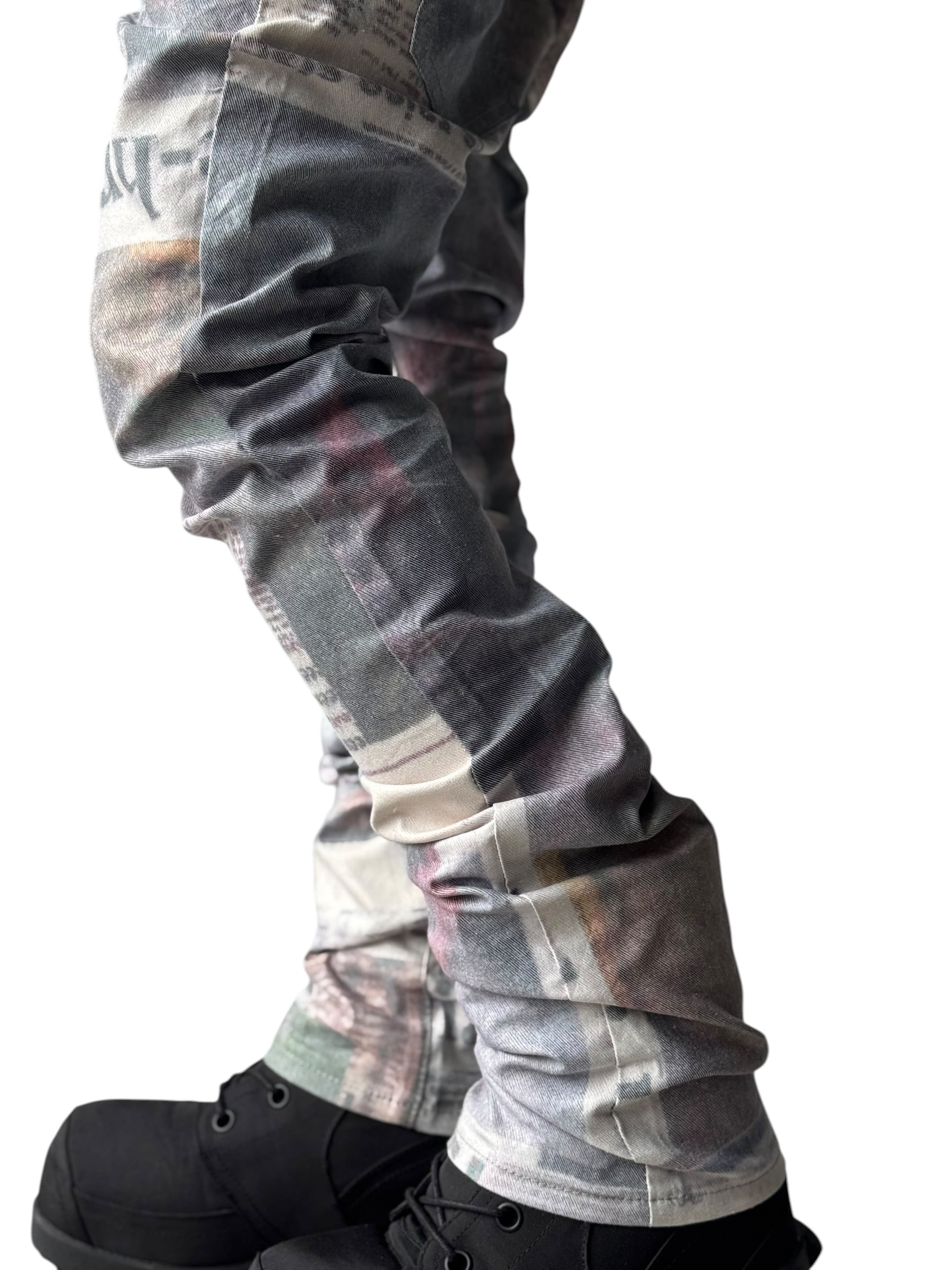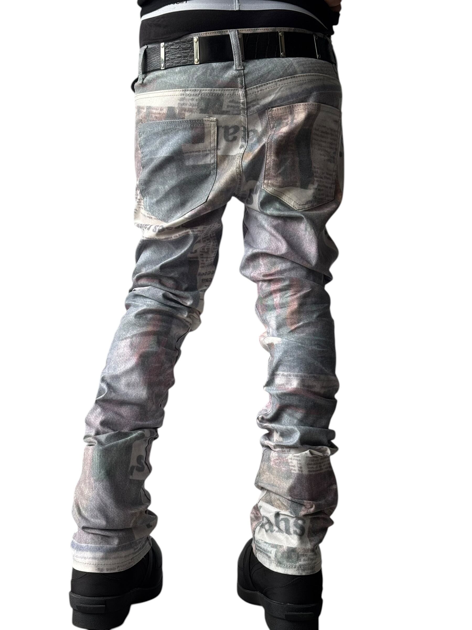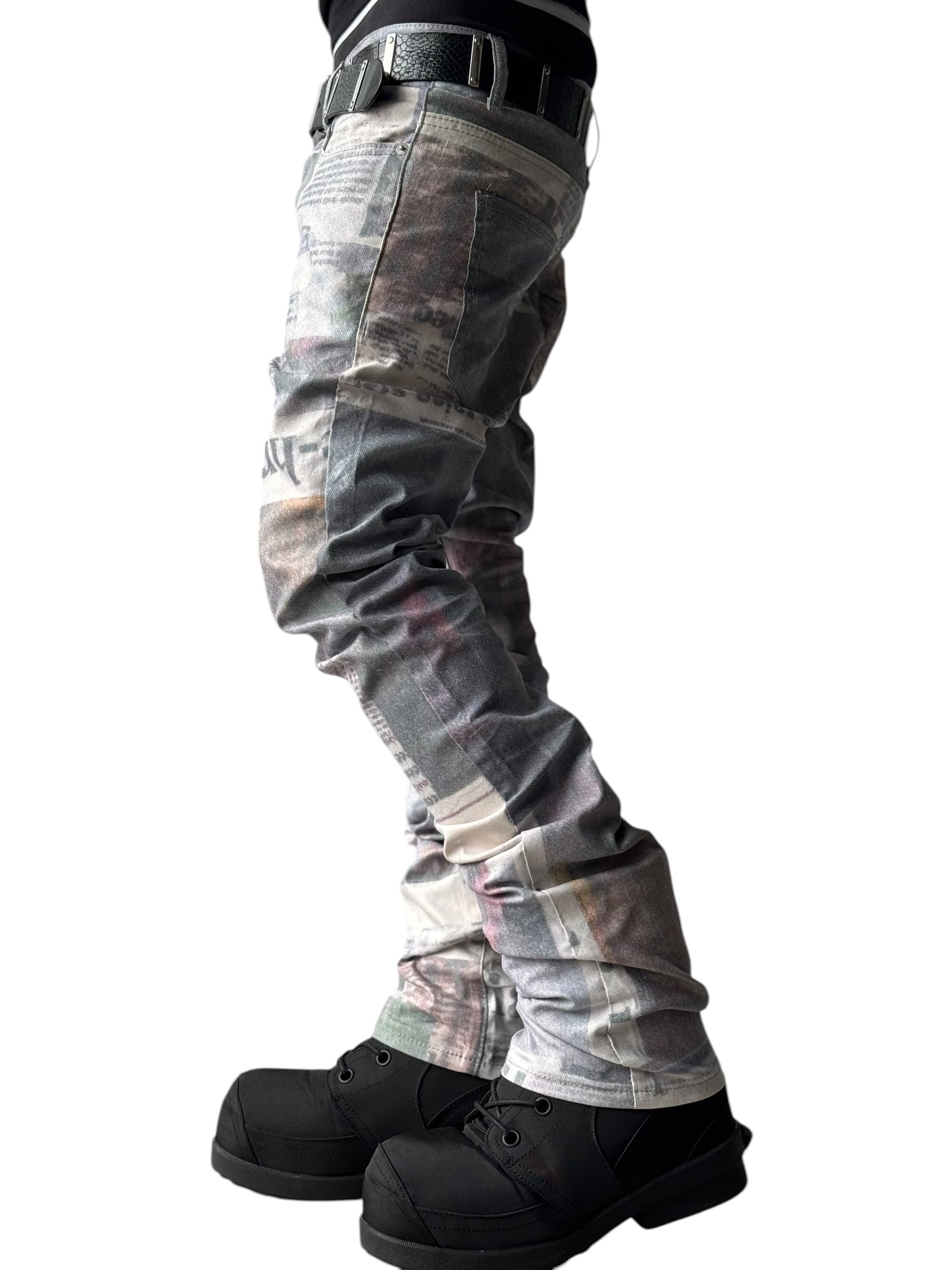 ニュースペーパーのデザインが転写されたクールなフレアパンツの入荷❣️❣️