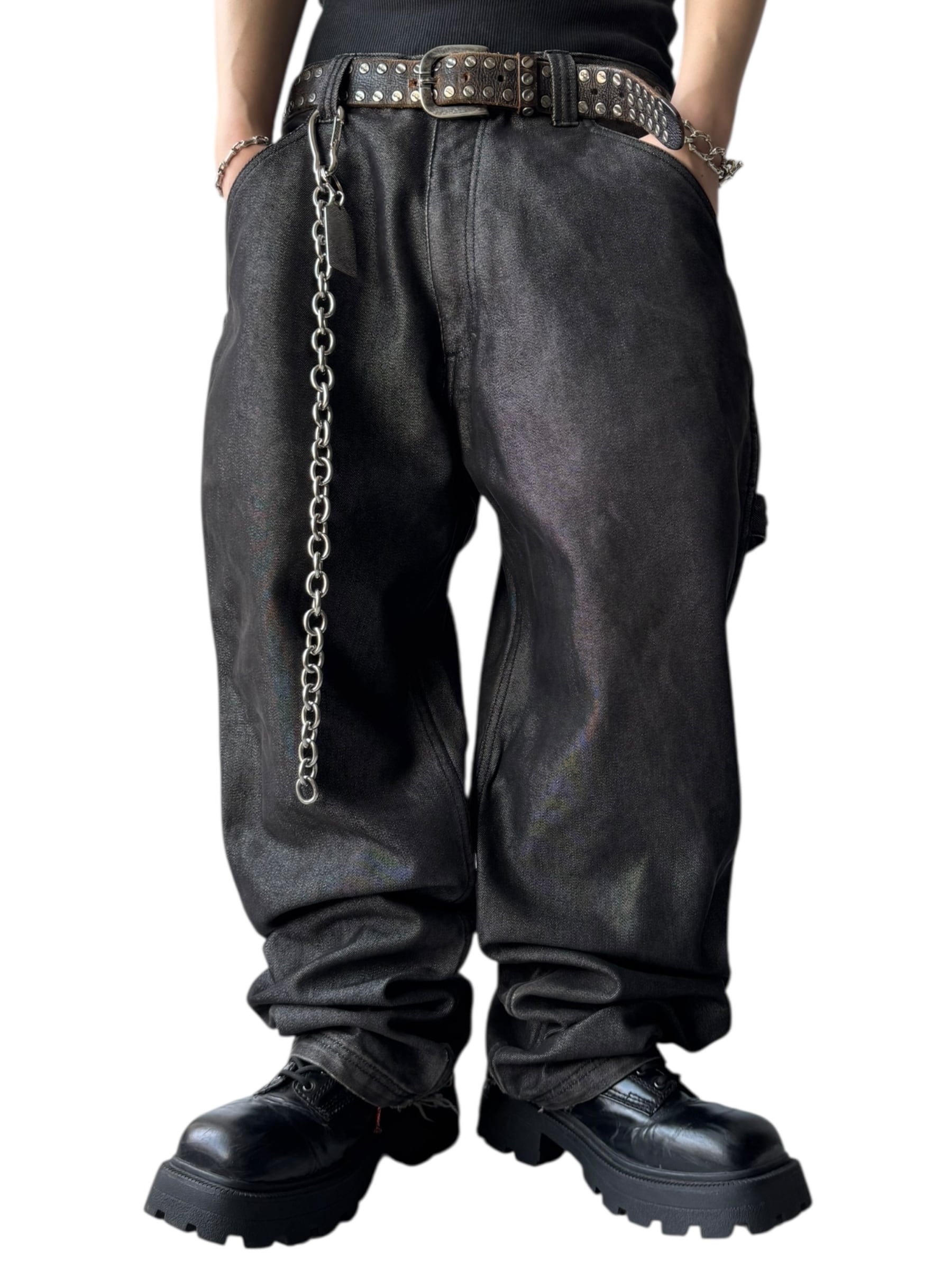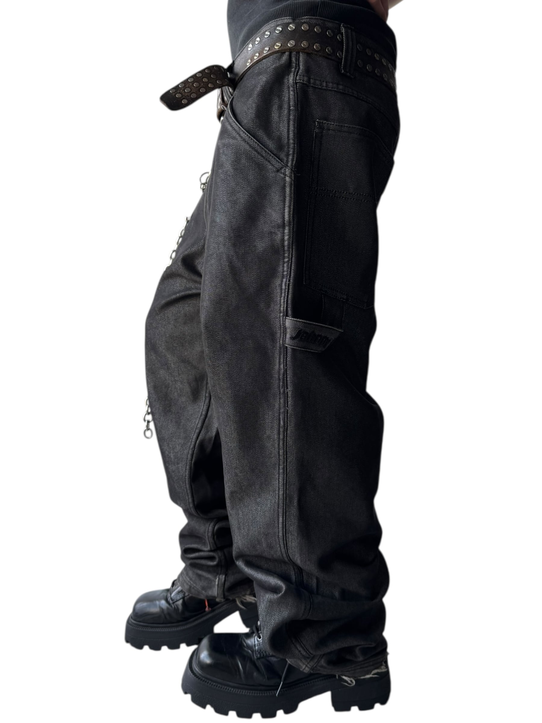 ♾ JOHNNY BLAZE ♾ wide buggy silhouette shiny black denim pants size 36