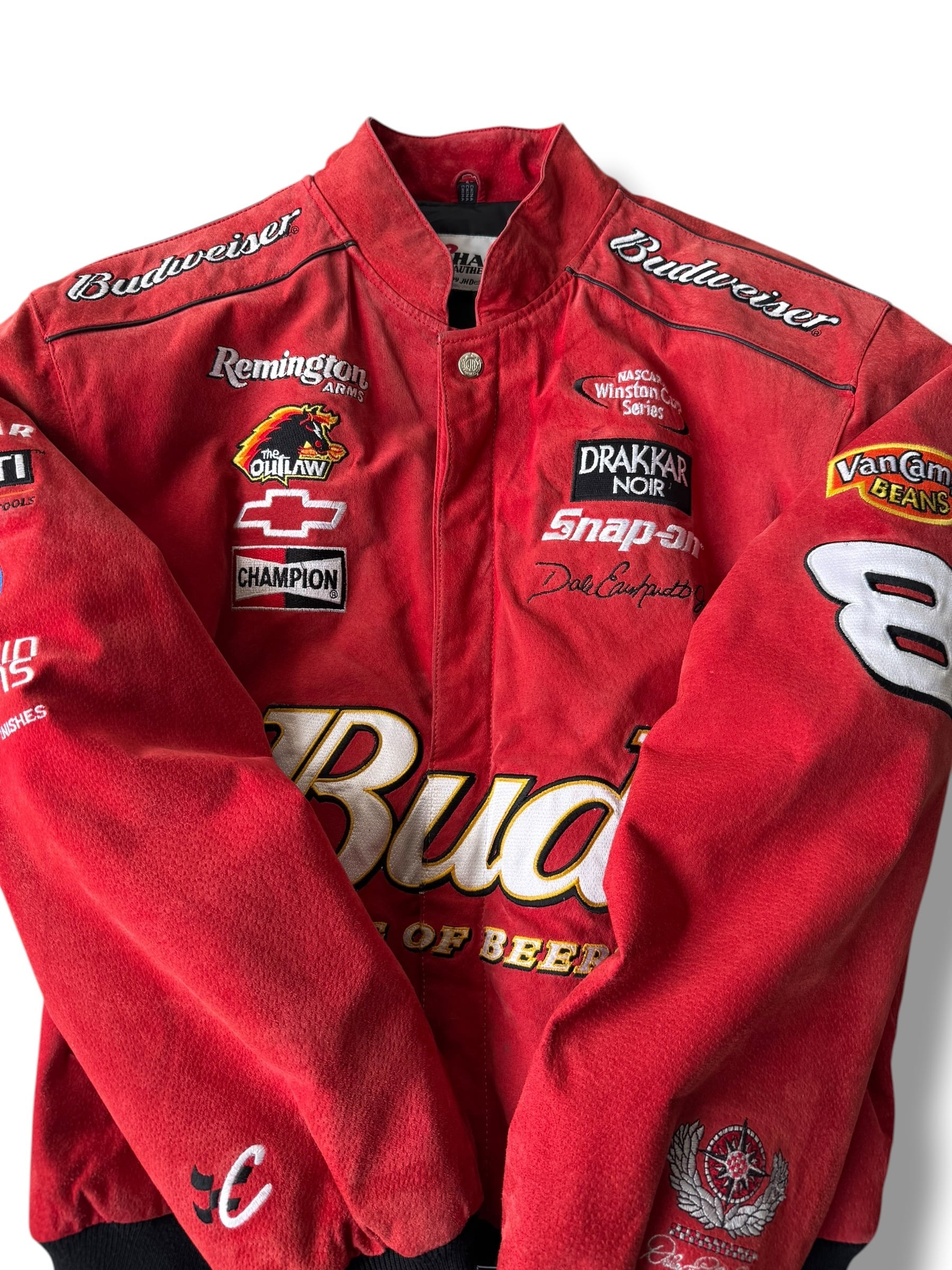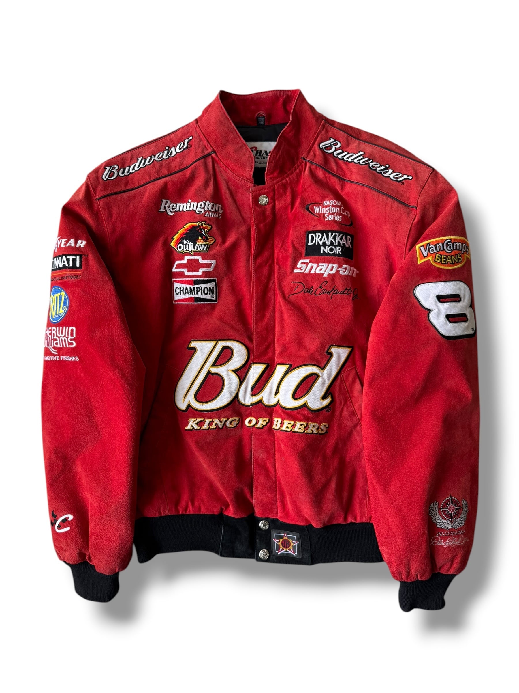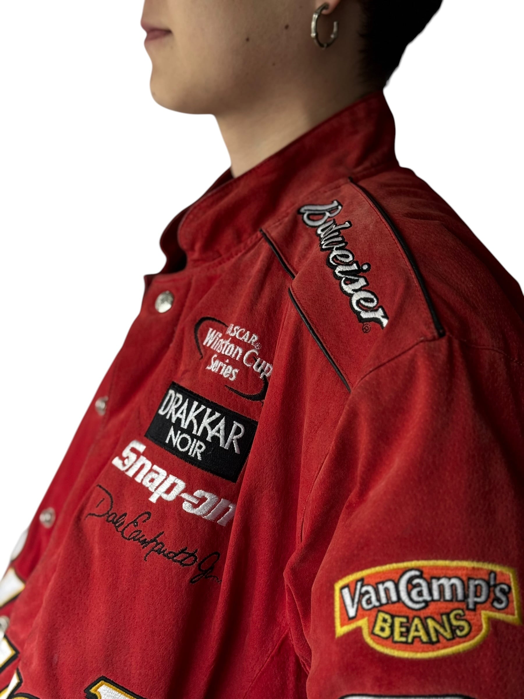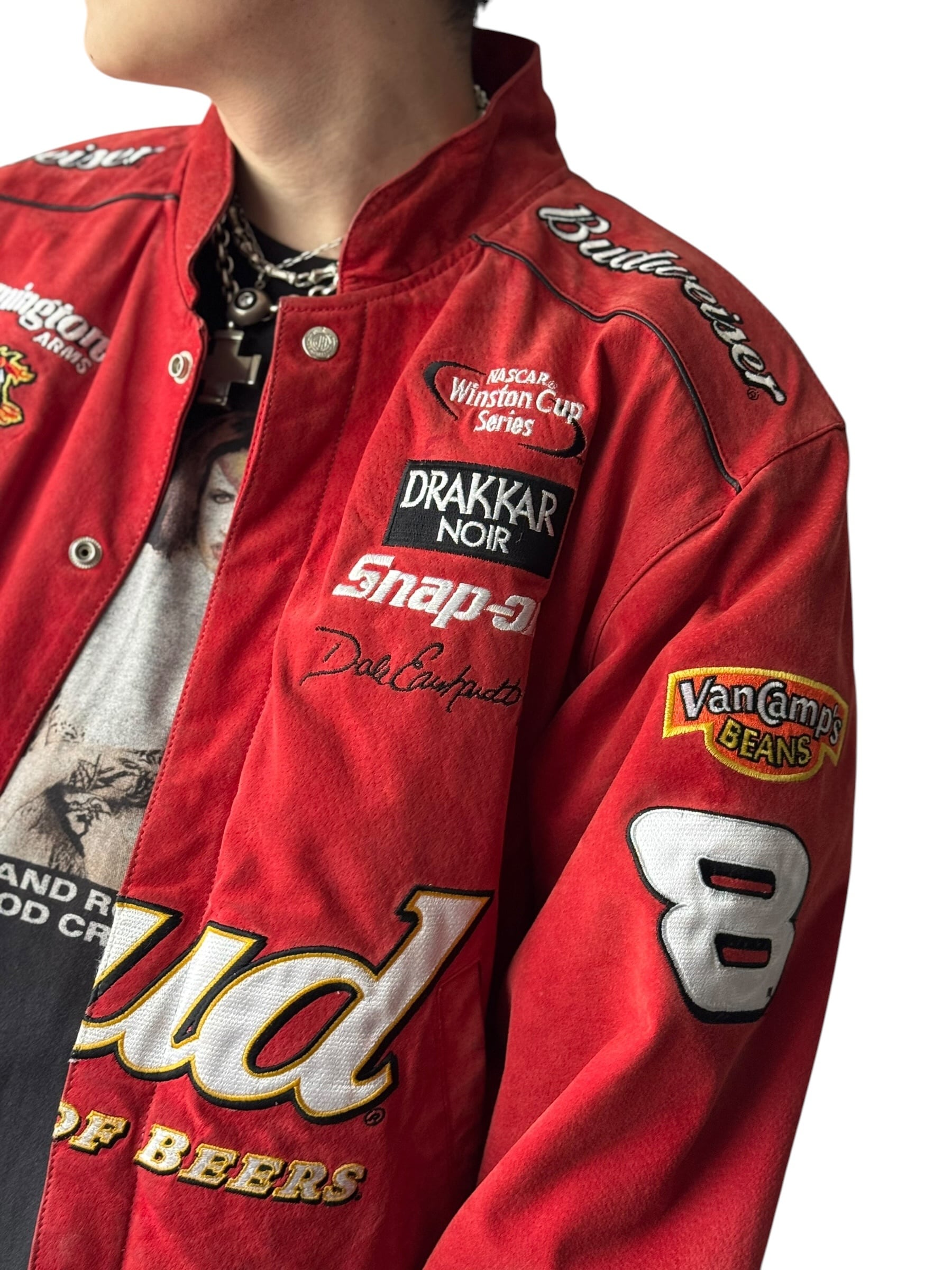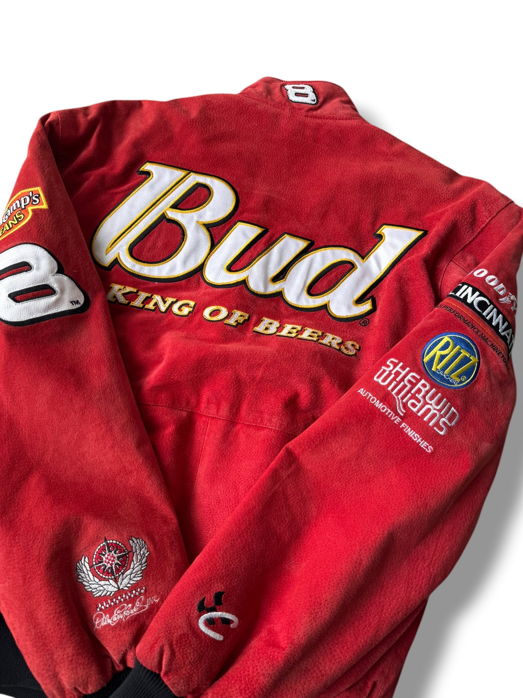Budweiserの映えるかわいいカラフルなスポンサーパッチワークデザインが圧倒的なレーシングジャケット‼️