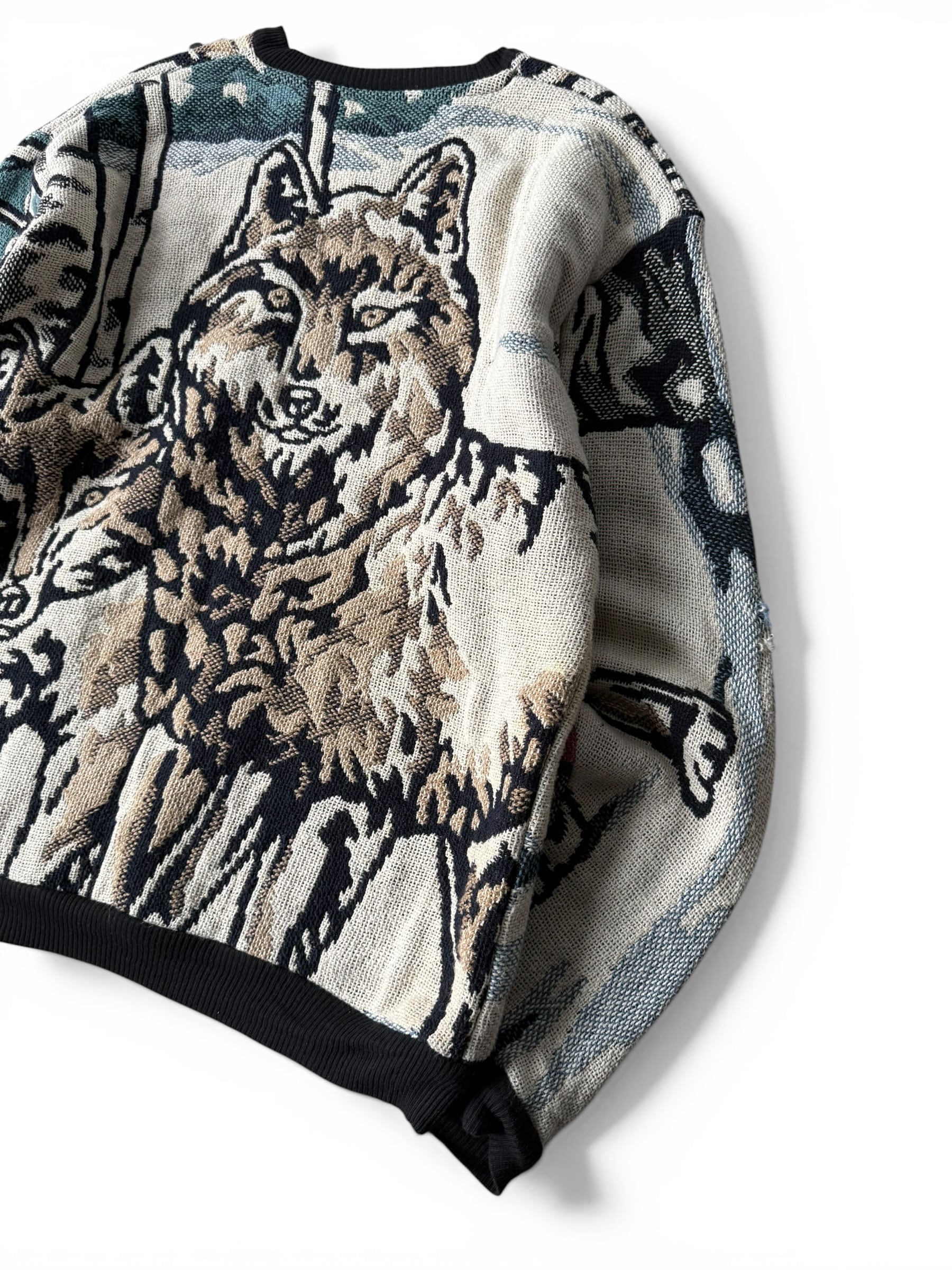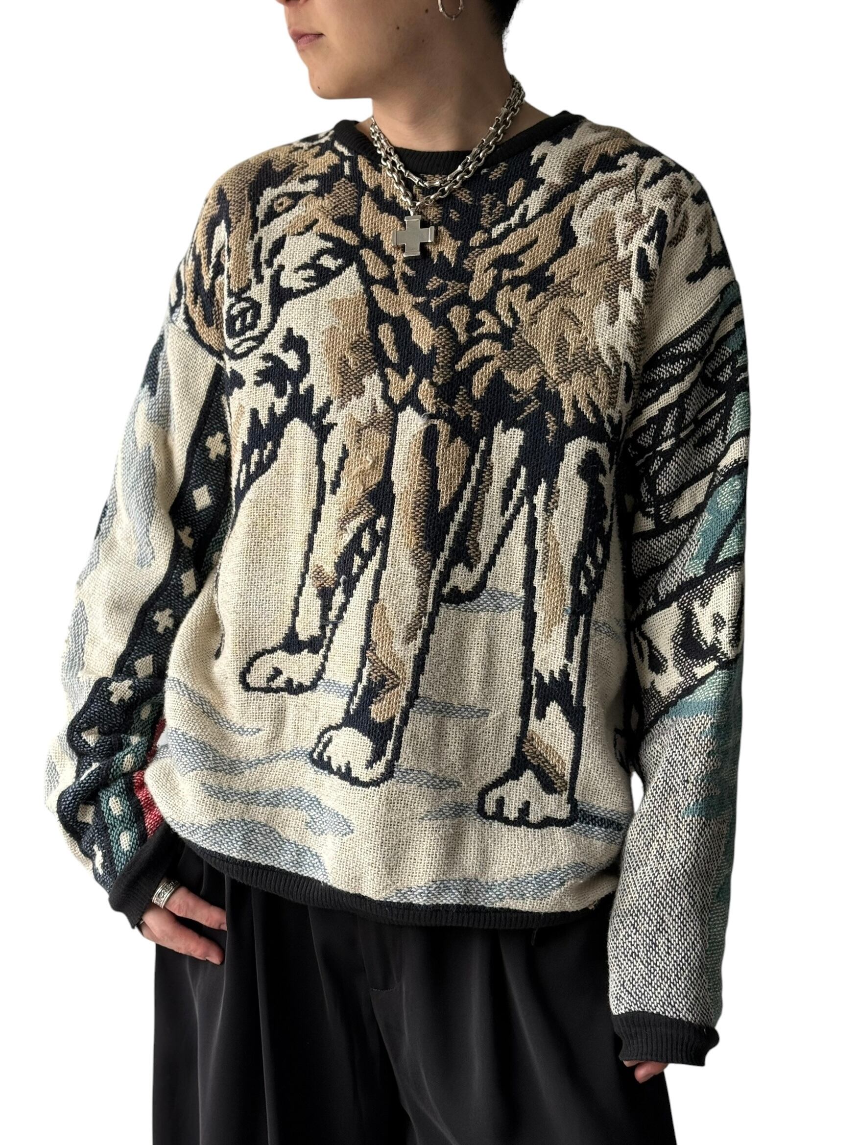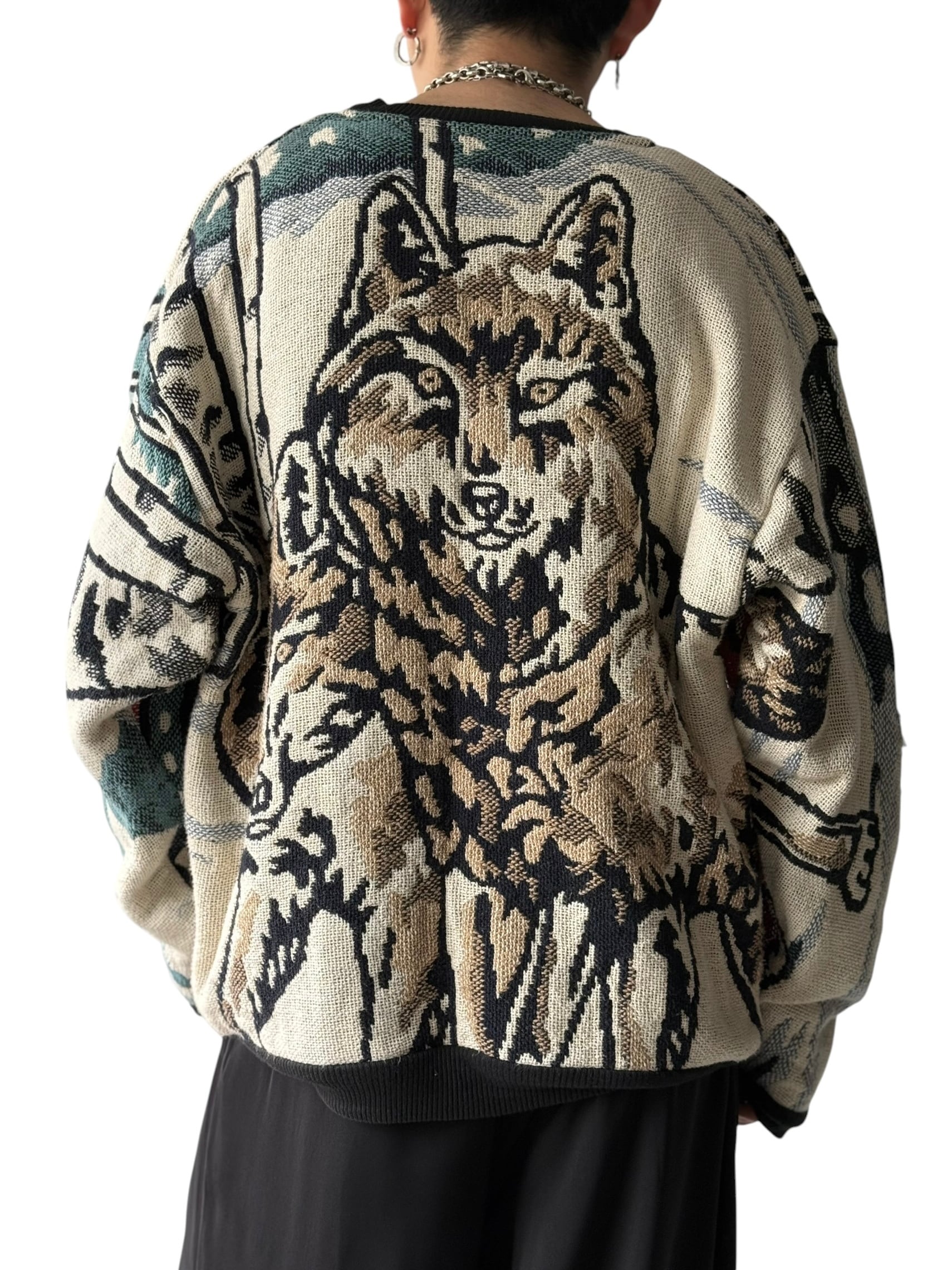 【90s MADE IN U.S.A.】Wolf motif pattern Gobelin jacquard sweatshirt