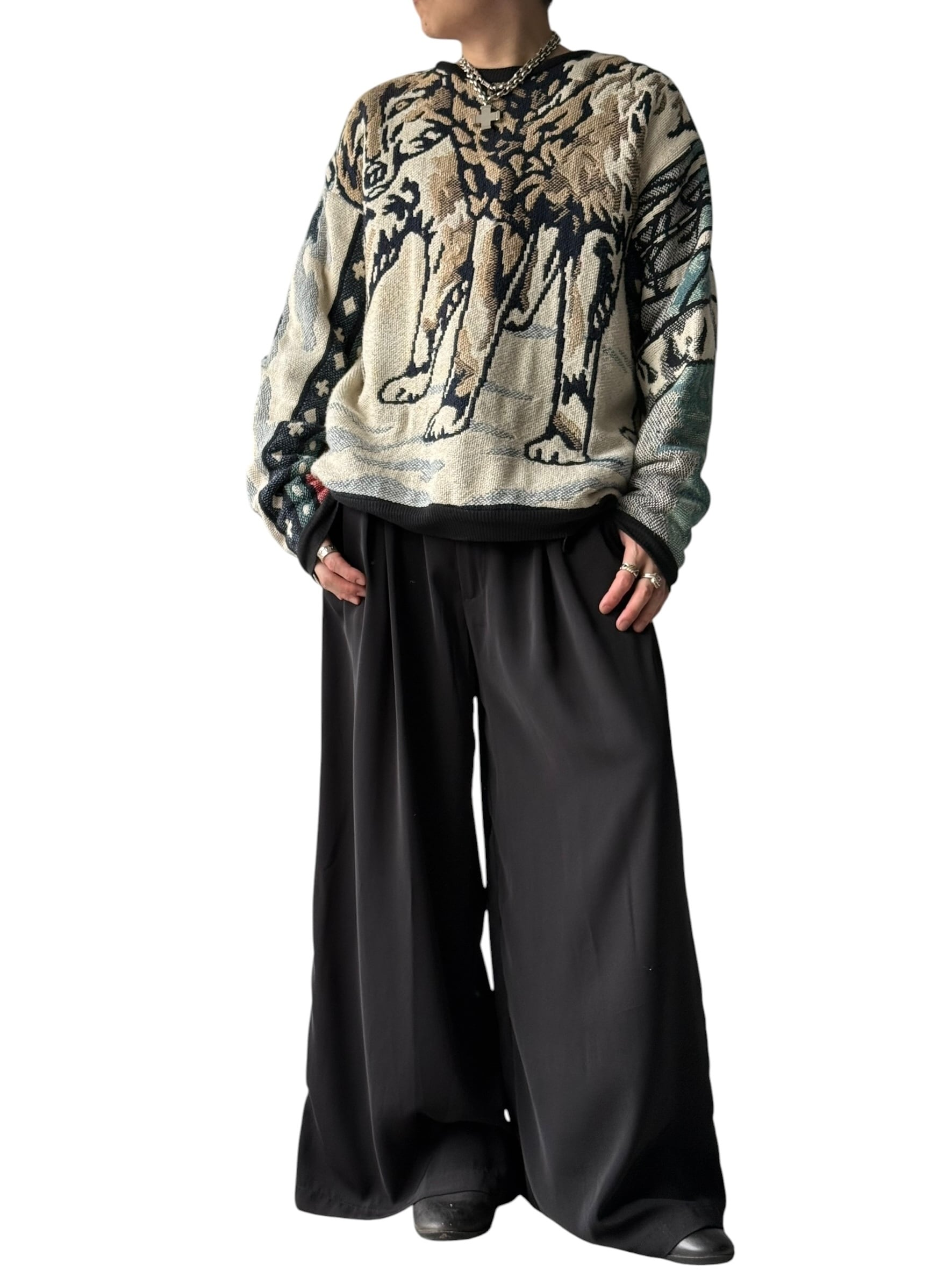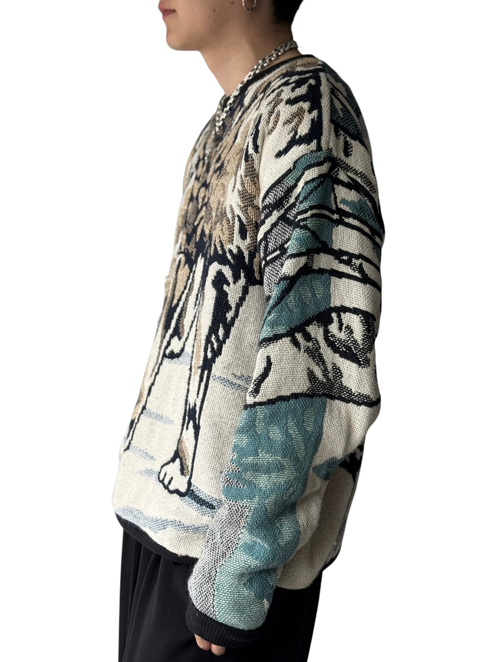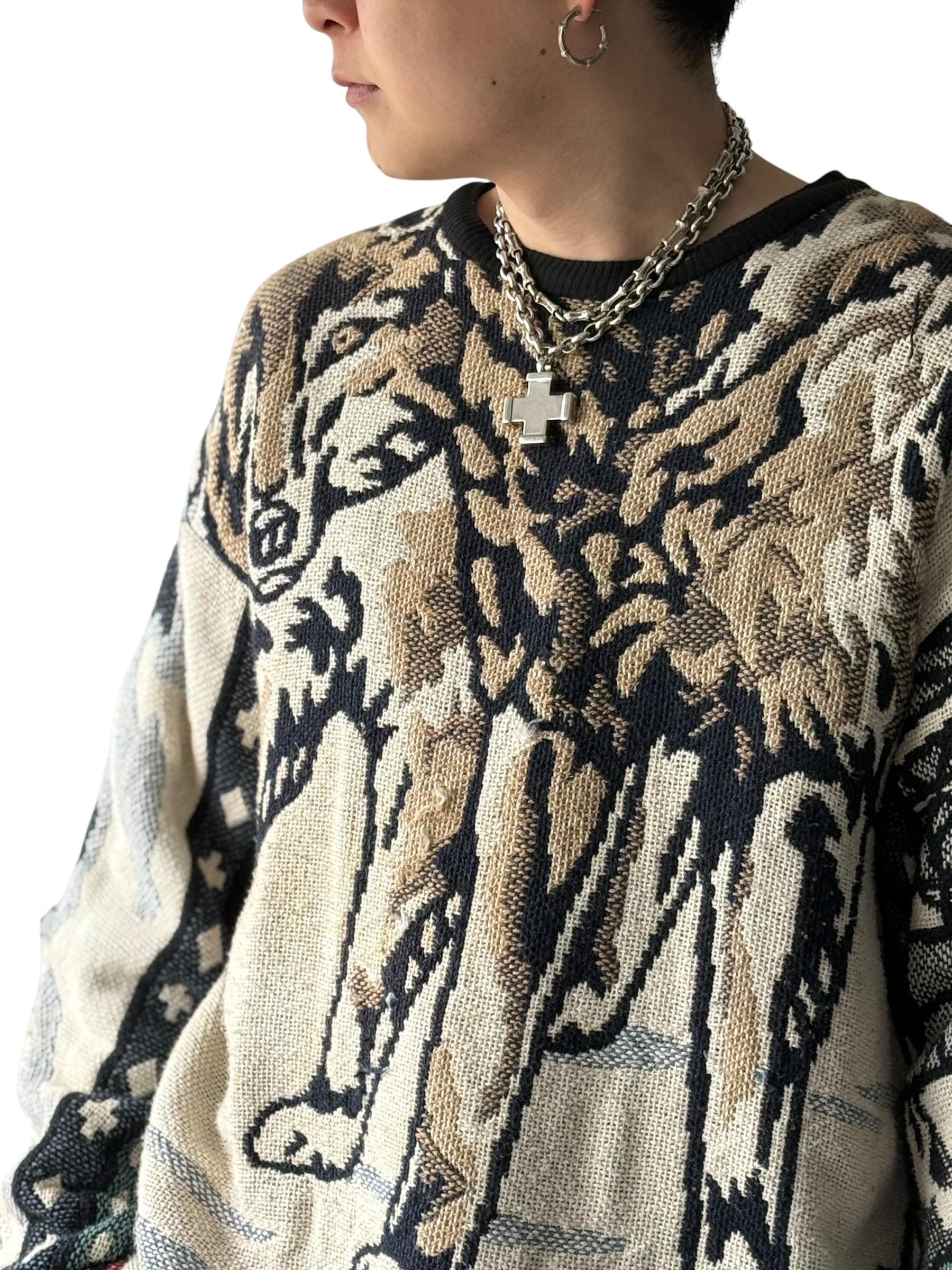 【90s MADE IN U.S.A.】Wolf motif pattern Gobelin jacquard sweatshirt