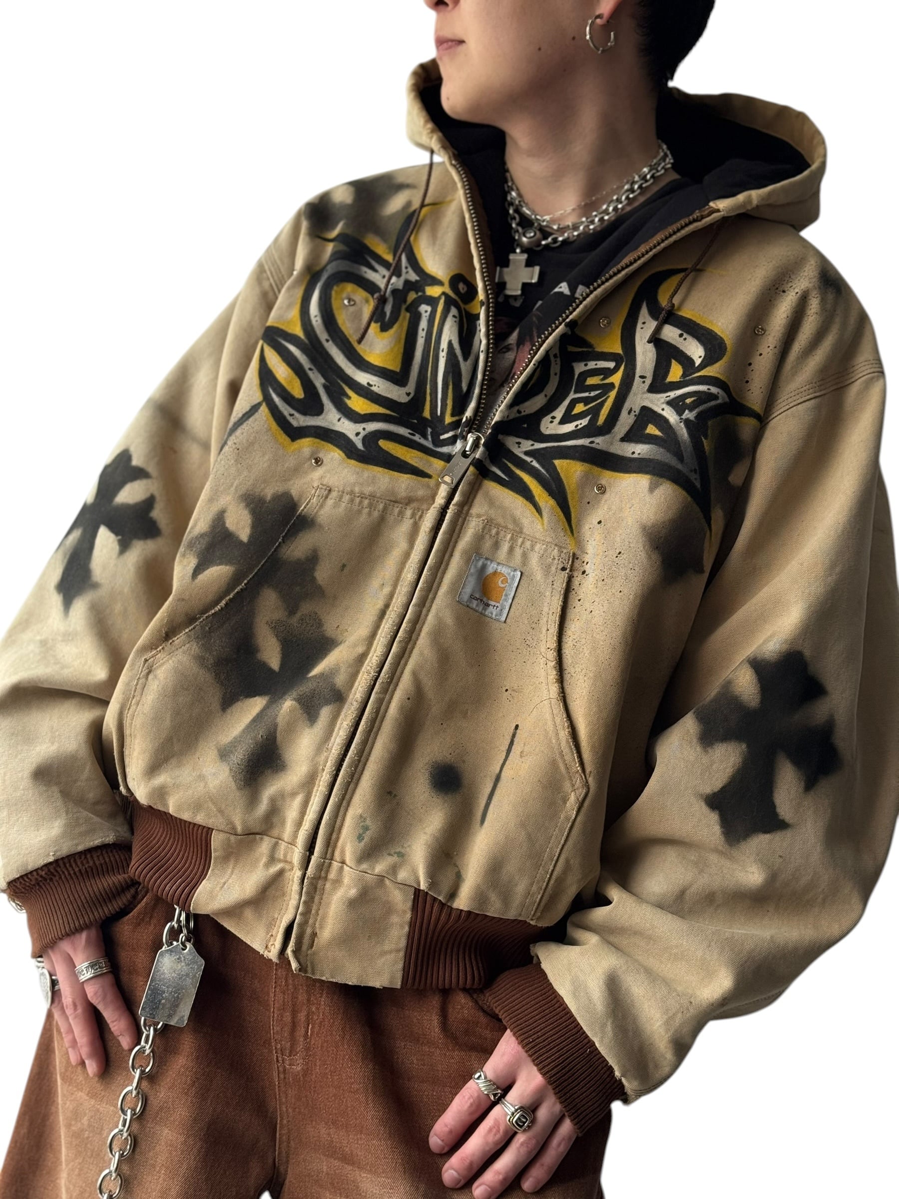 ‼️Special‼️ ♾90‘s Carhartt♾ star tag hand painted studs custom design active jacket