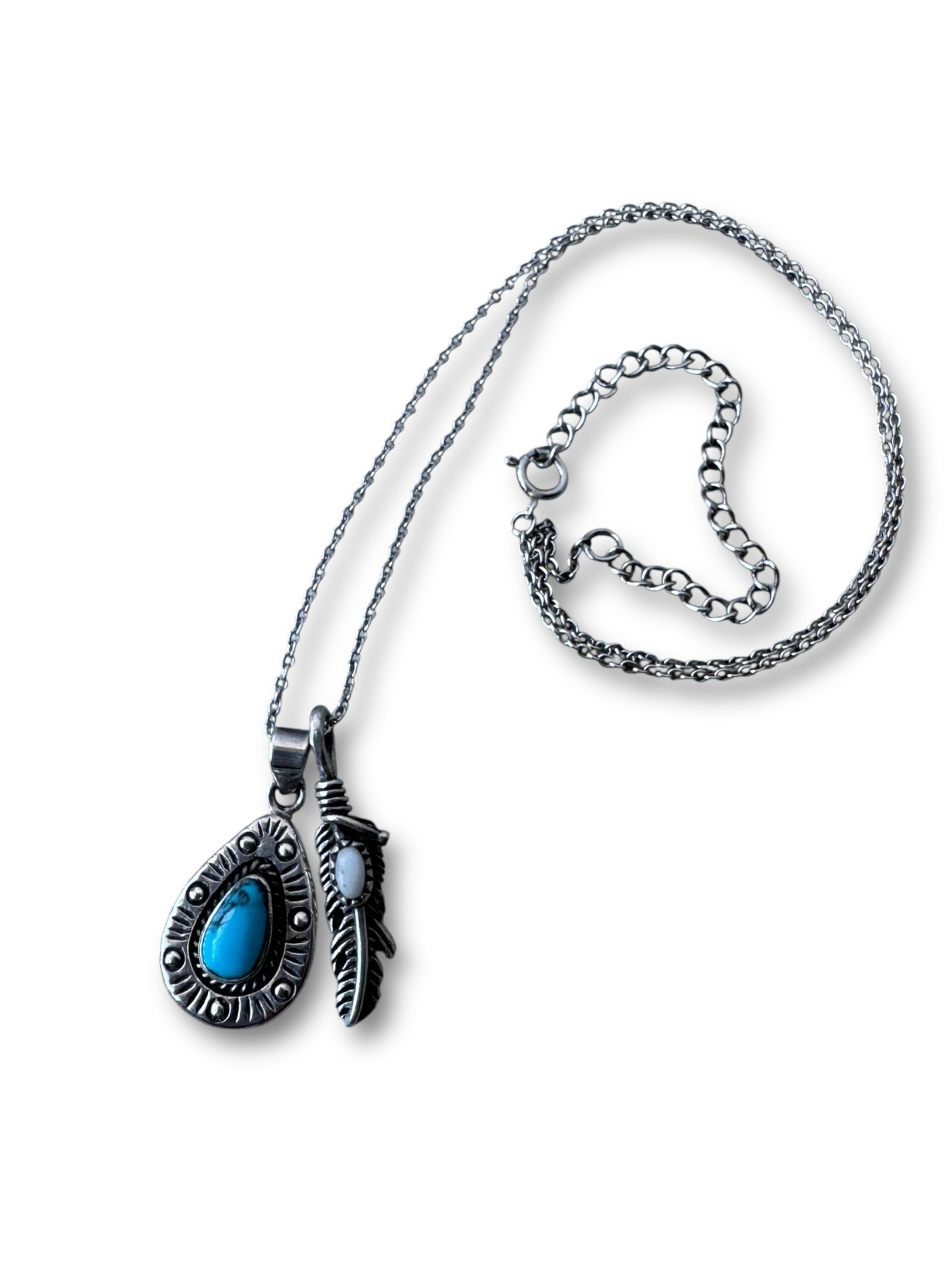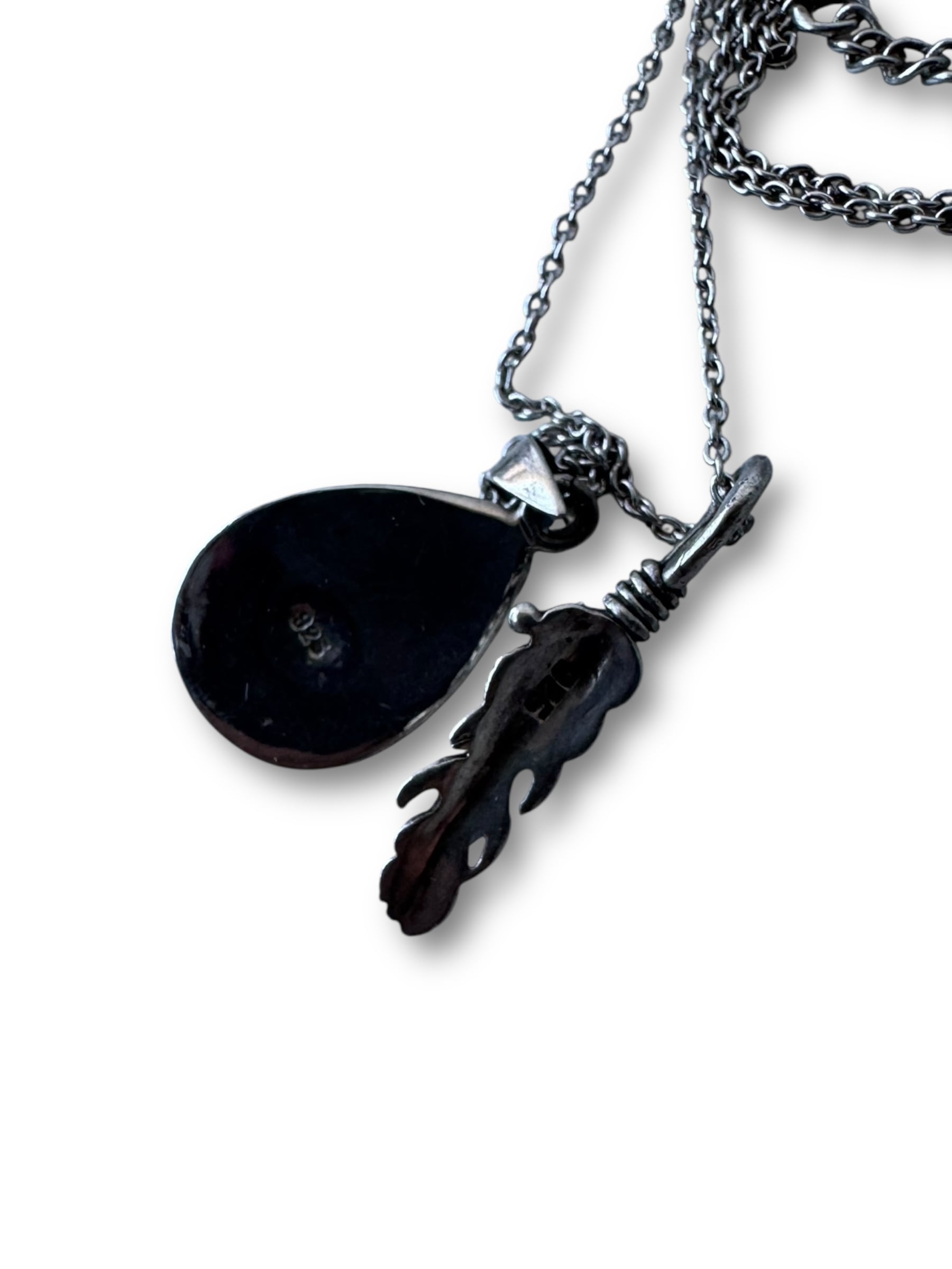 ♾vtg sv jewellery♾ w top design stone feather motif necklace sv925