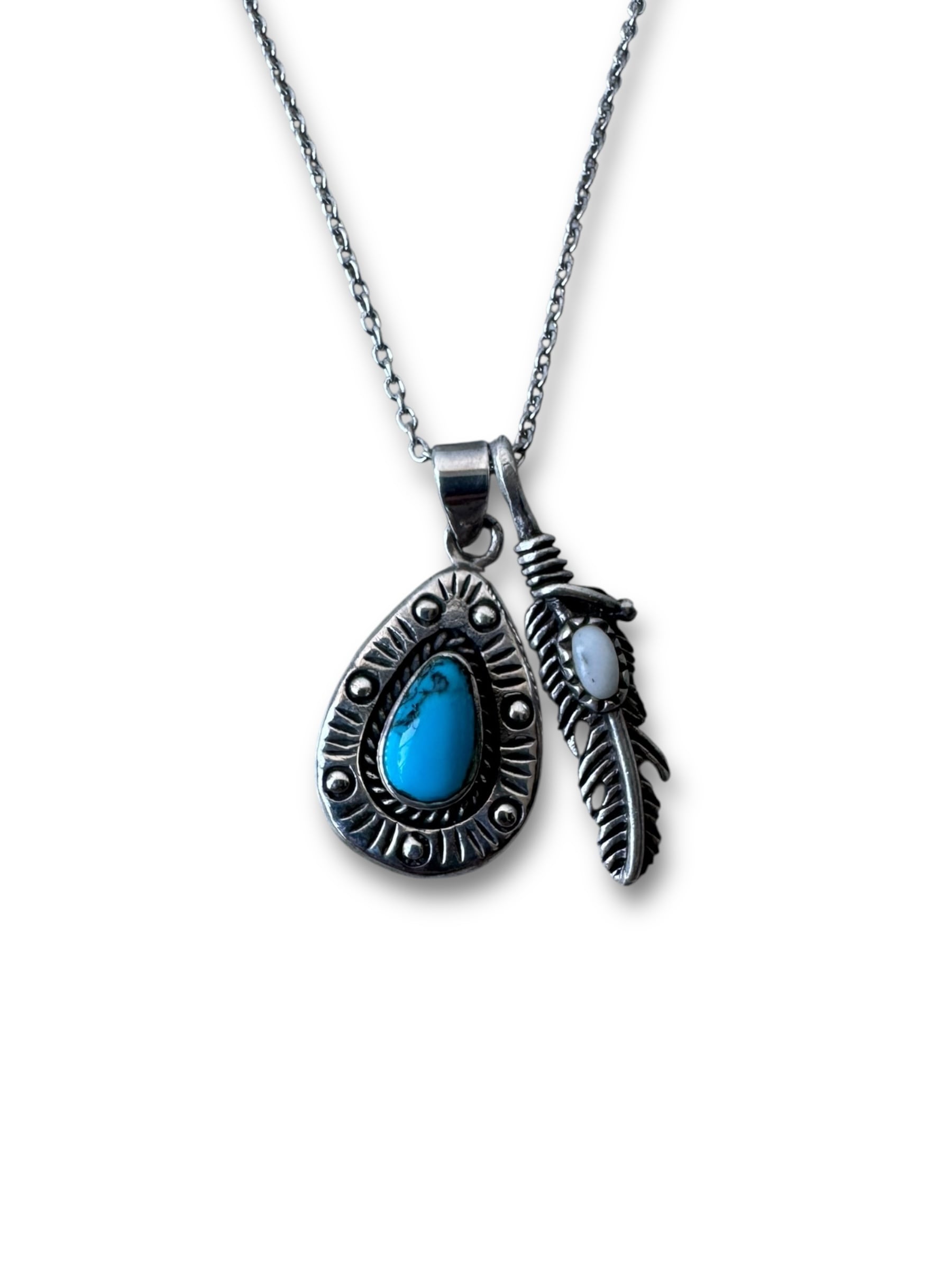 ターコイズのようなストーンがセットされたトップと白いストーンがセットされたフェザーのダブルトップ仕様❣️❣️