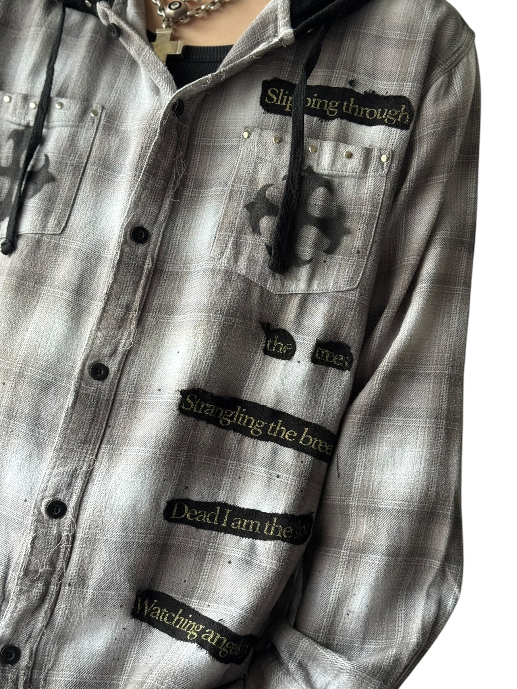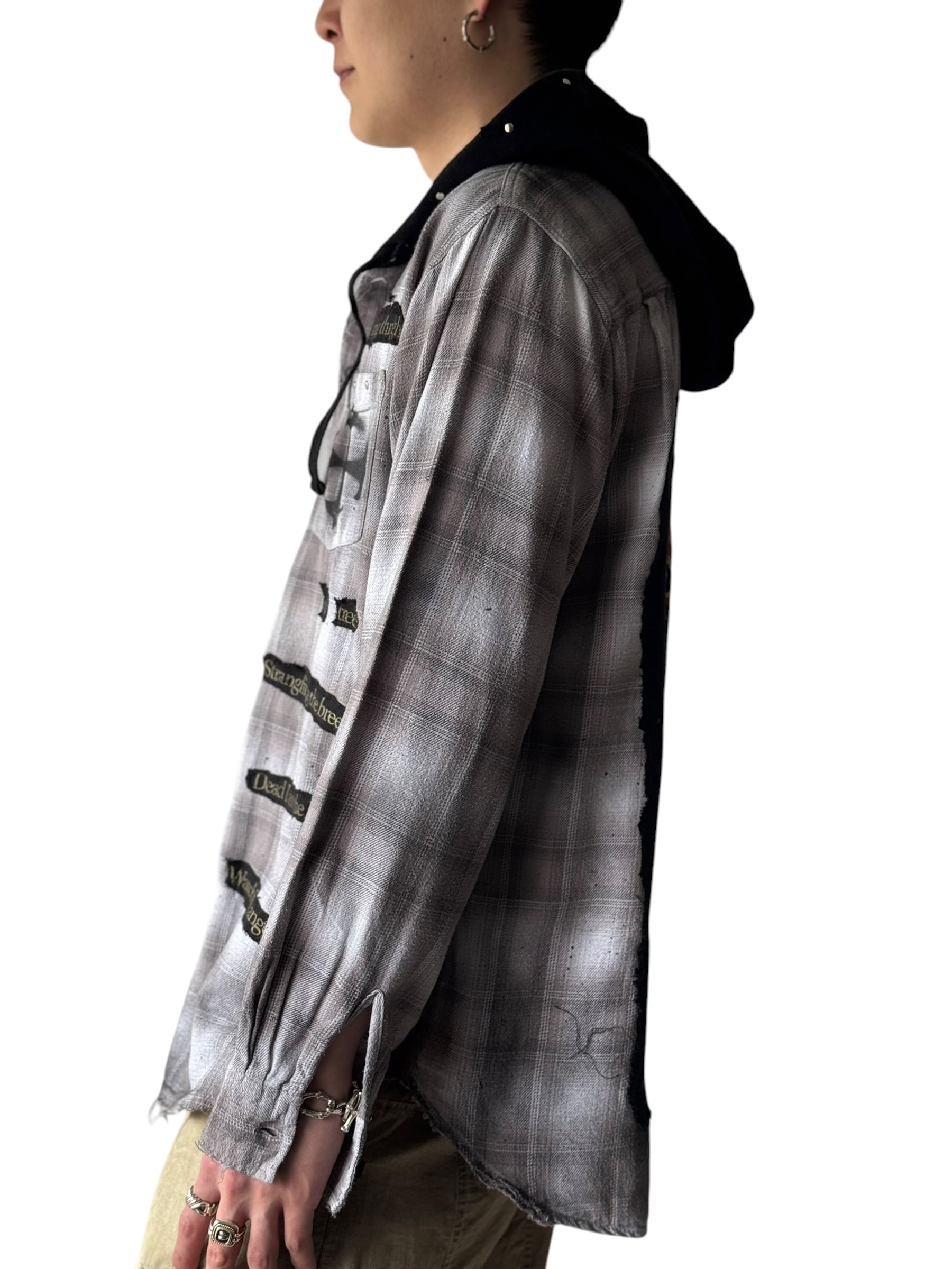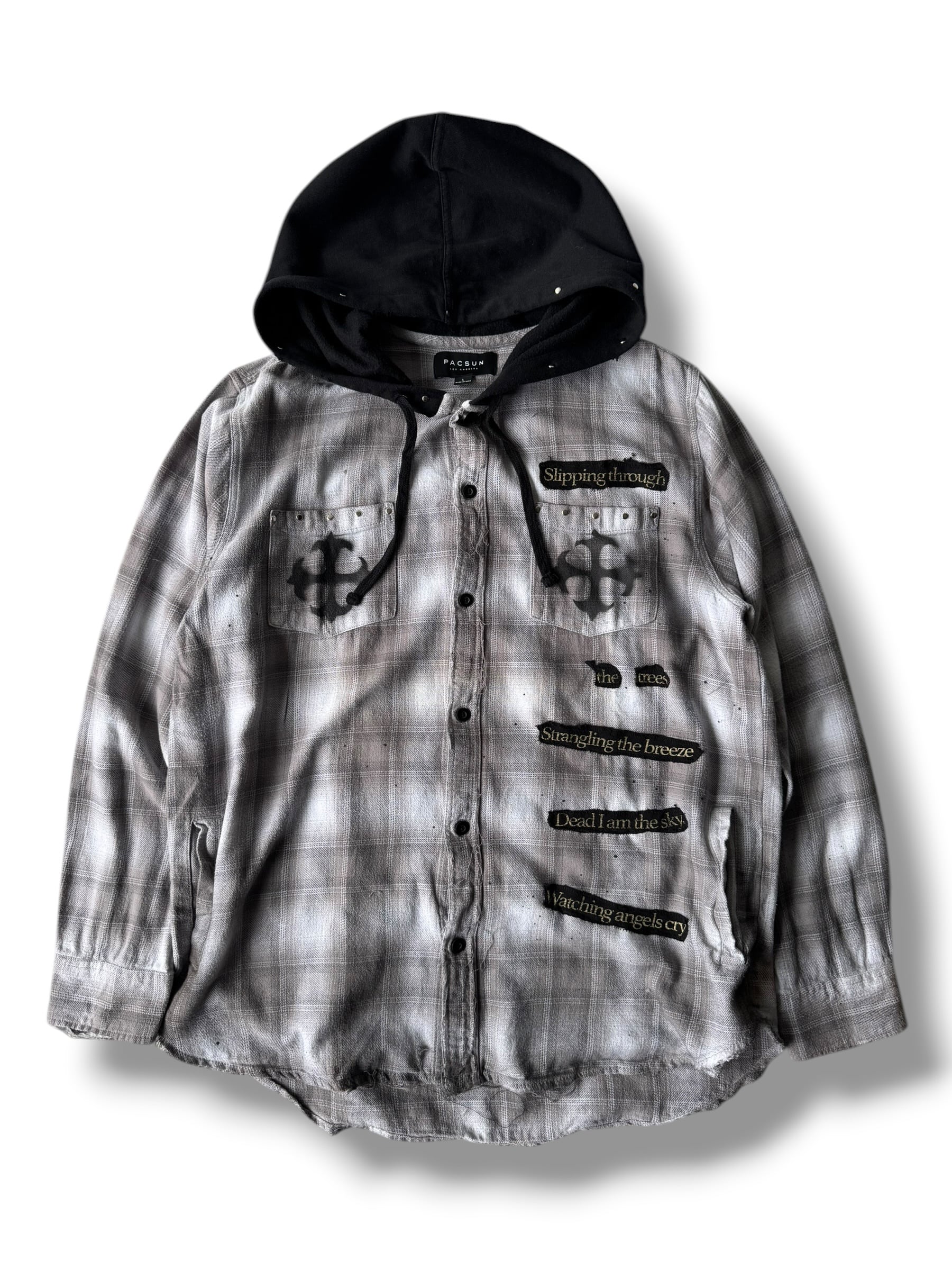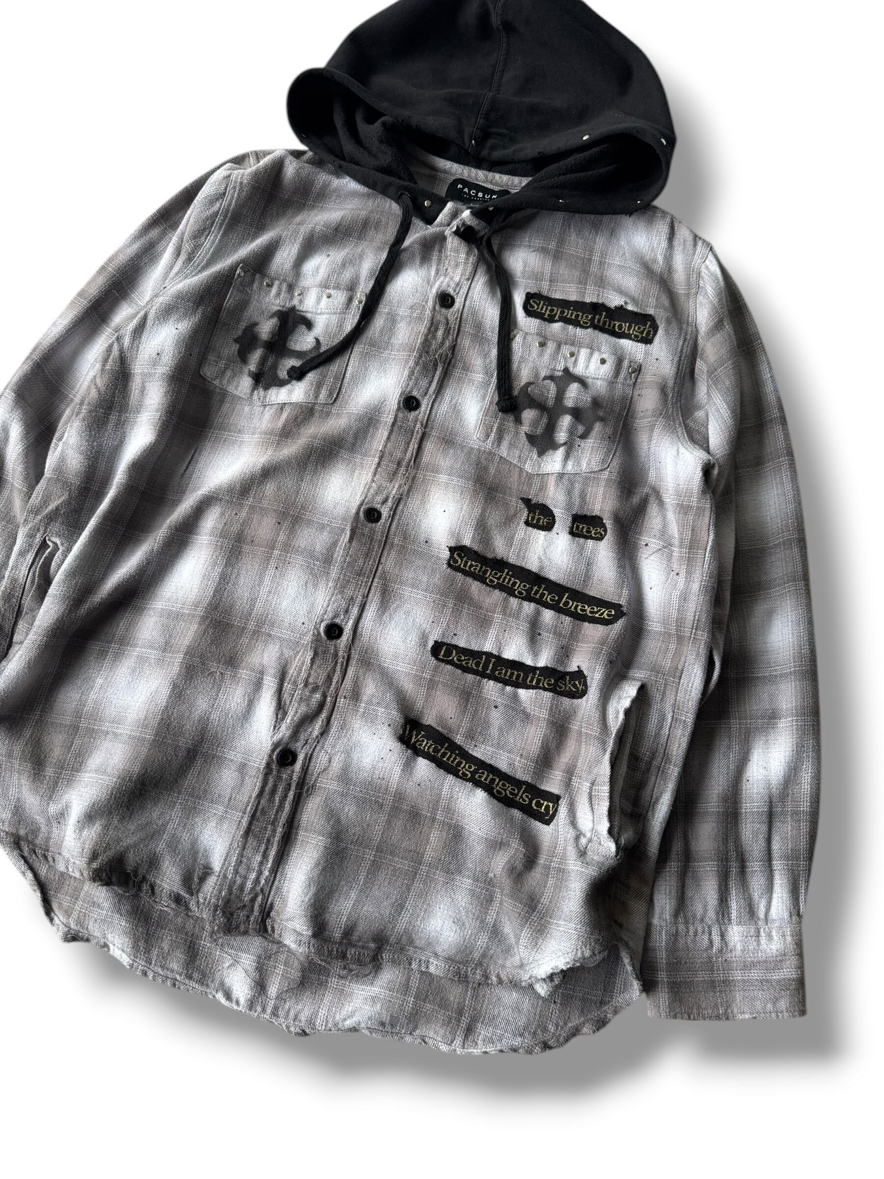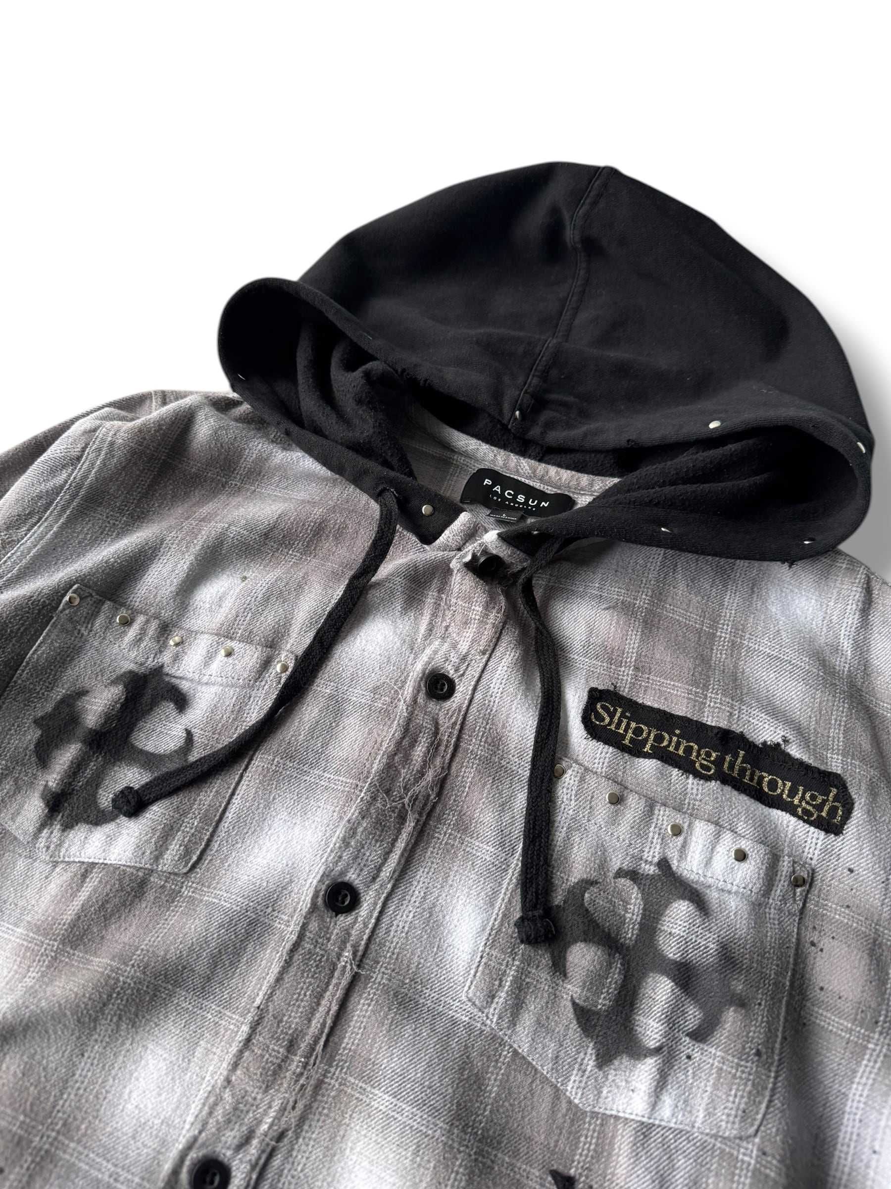 ♾PACSUN♾ "Slip KnoT" custom design check patterned hooded L/S shirts size L