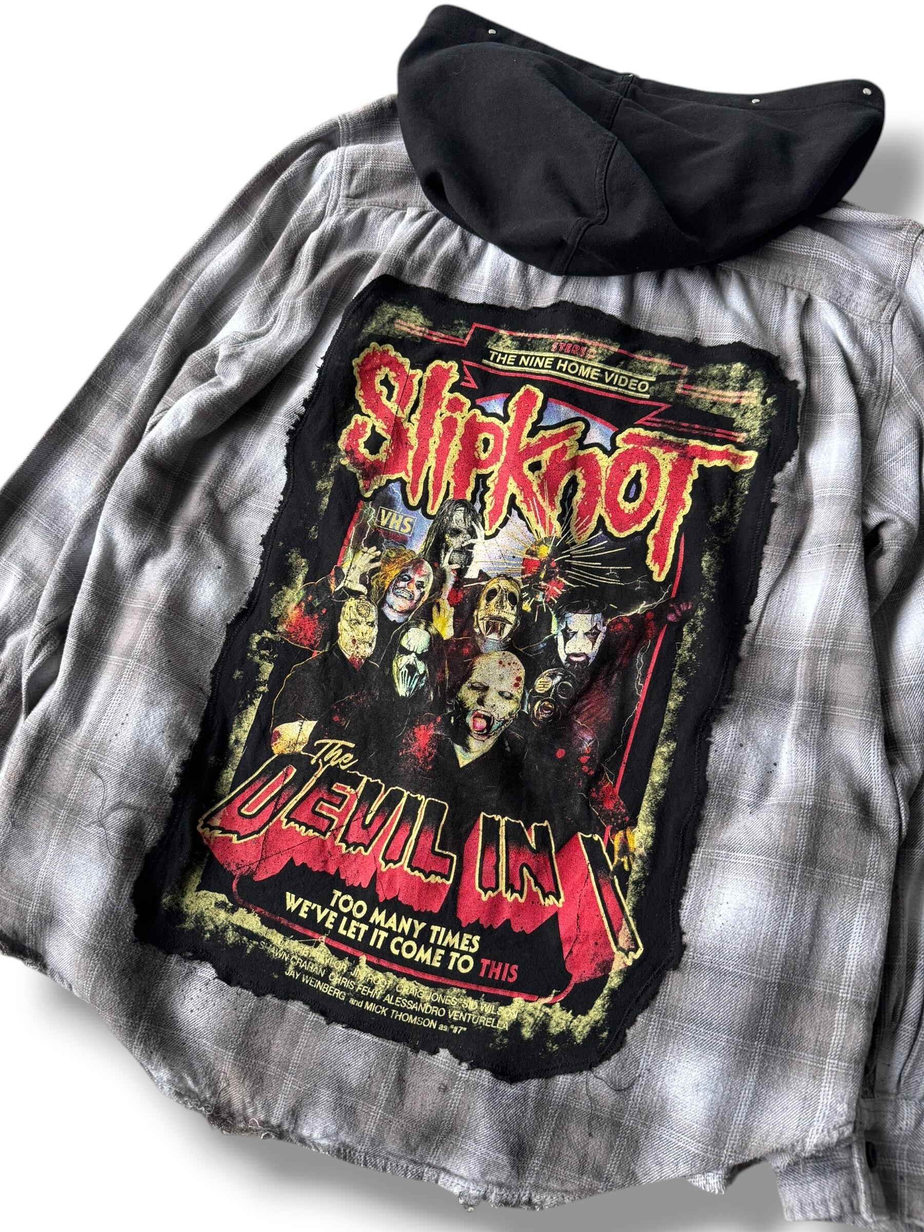 胸ポケットにスタッズ、クロスのステンシル、背面にはどデカくSlipKnoTのインパクトあるカスタムがめちゃめちゃバエる仕様に✨️