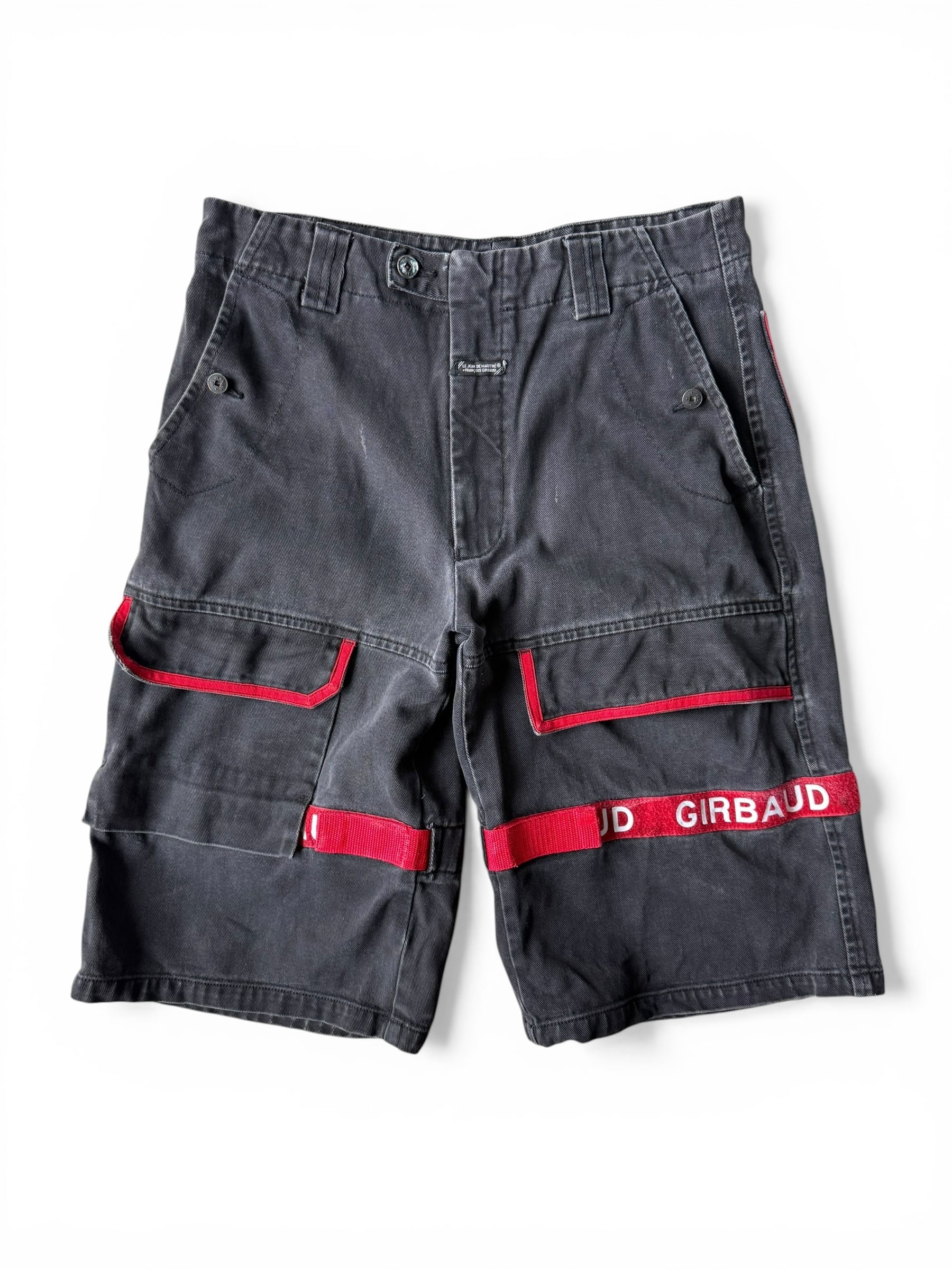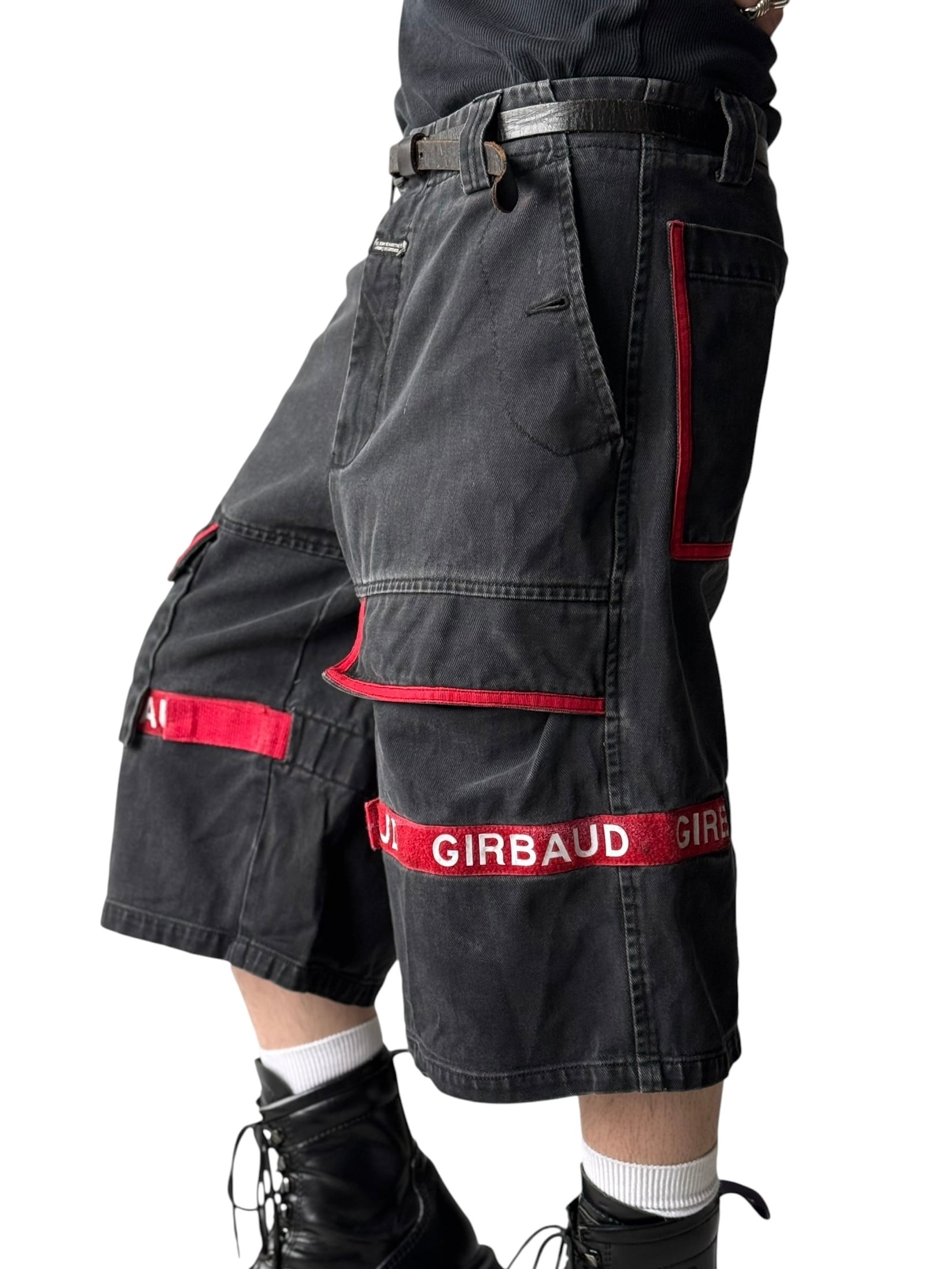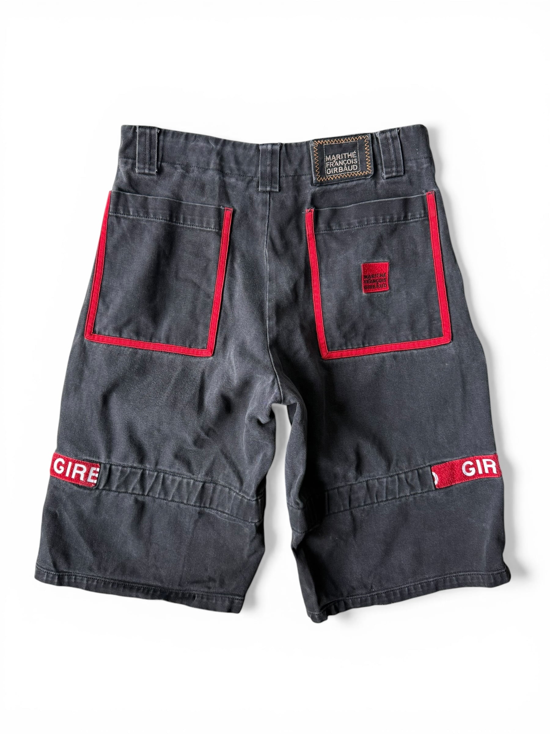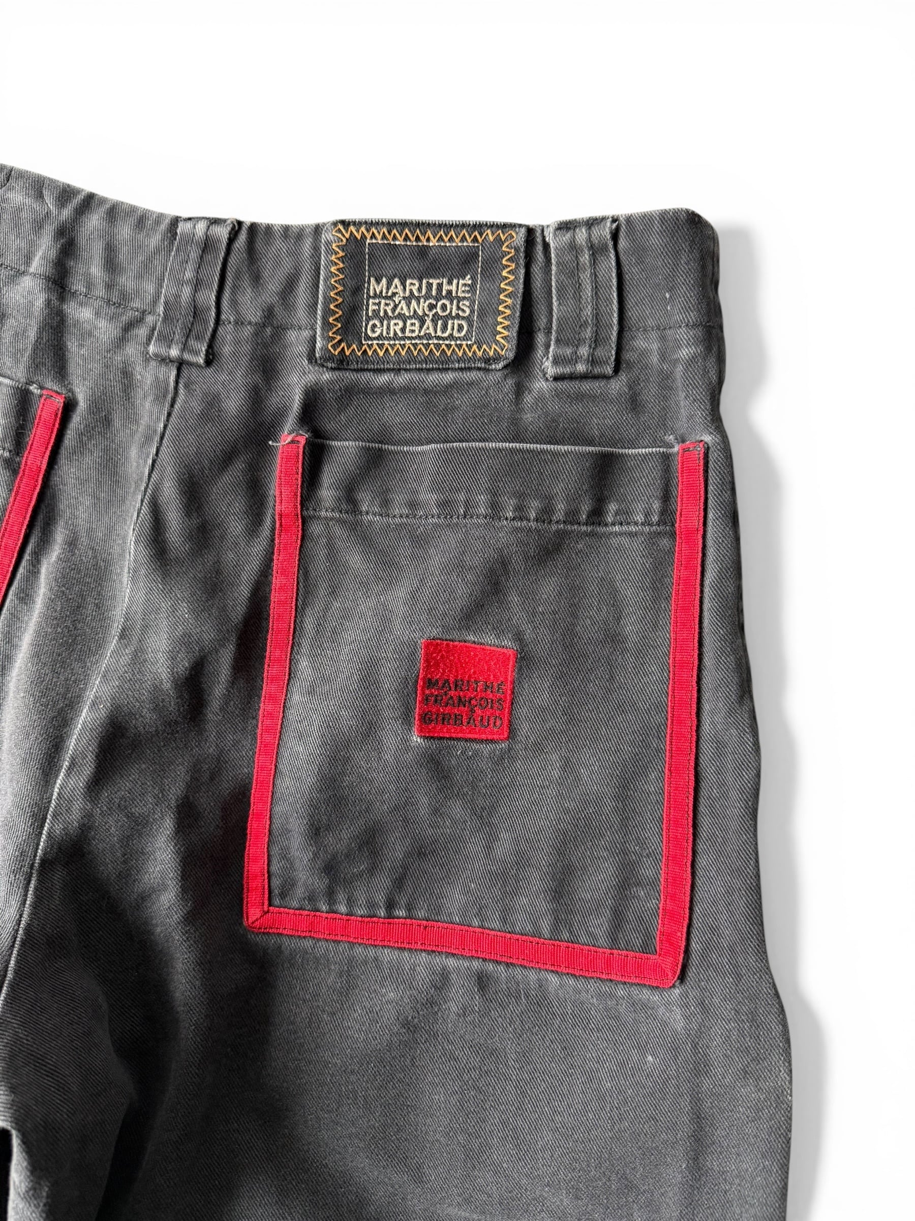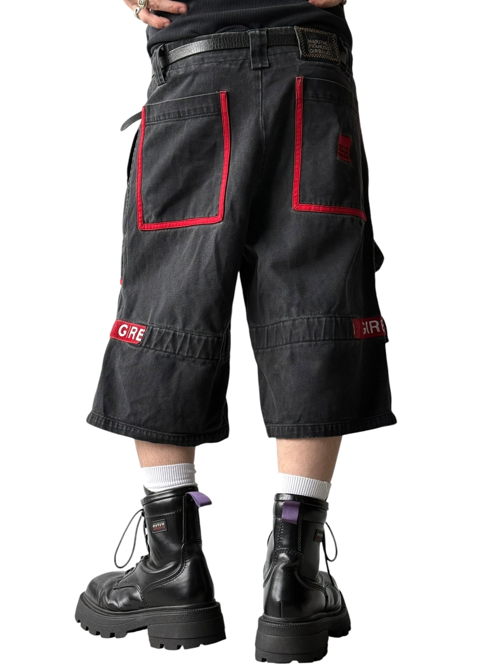 【LE JEAN DE MARITHE FRANCOIS GIRBAUD】 Shuttle Tape half denim pants / fade black × red