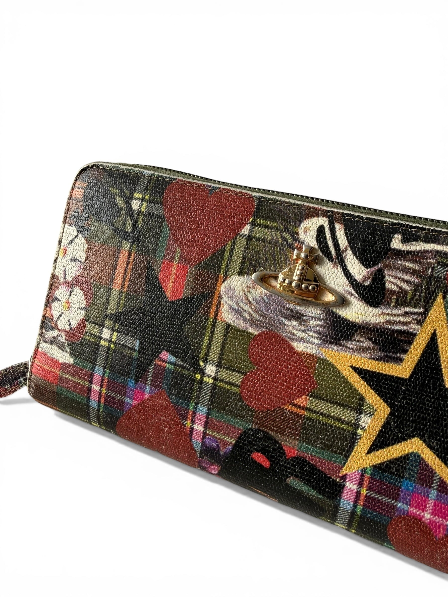 ヴィヴィアンらしいタータンチェックベースにポップなアートが最高におしゃれなロングウォレット!!