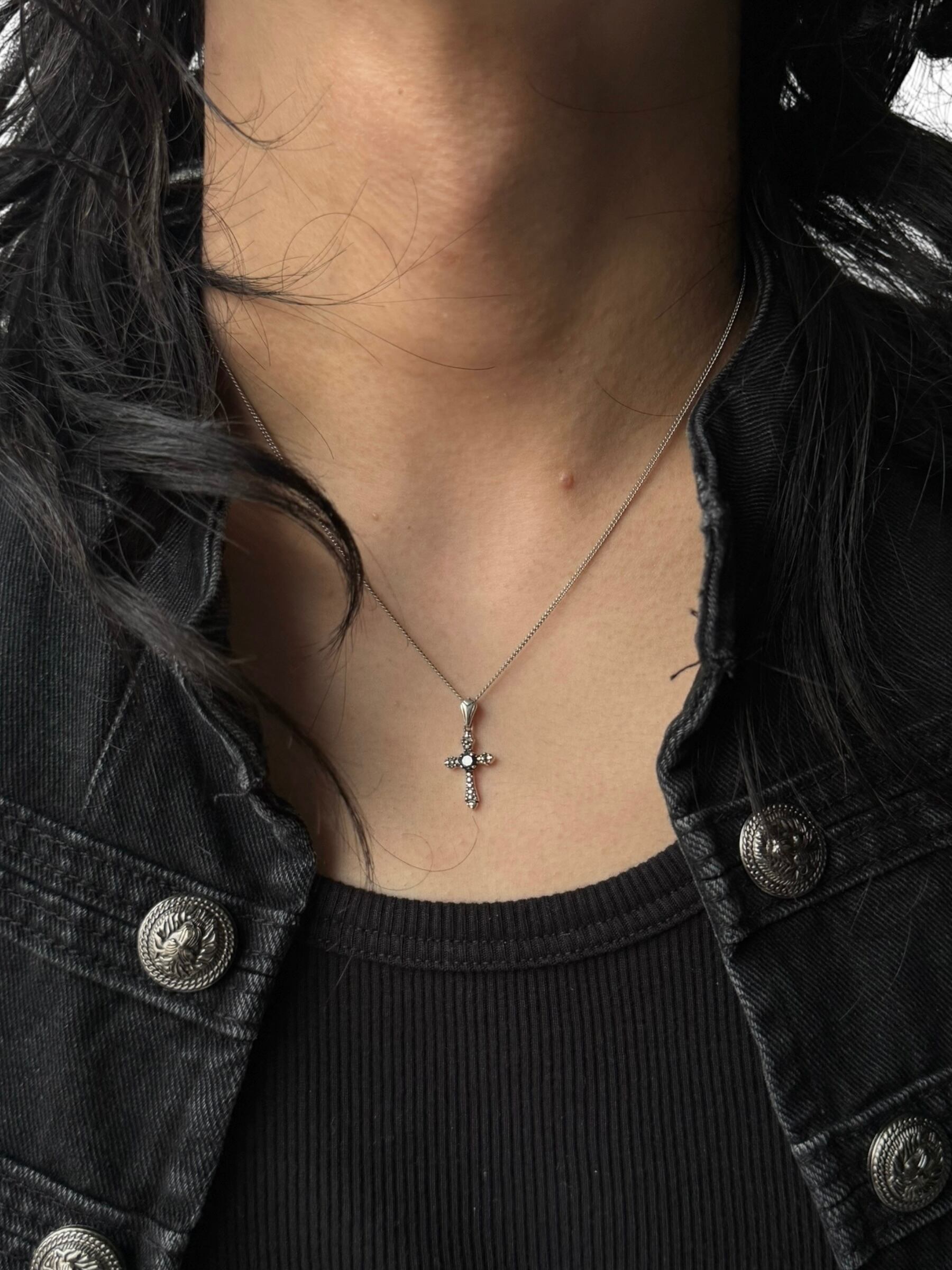 ♾vtg sv jewellery♾ cz design cross motif necklace sv925