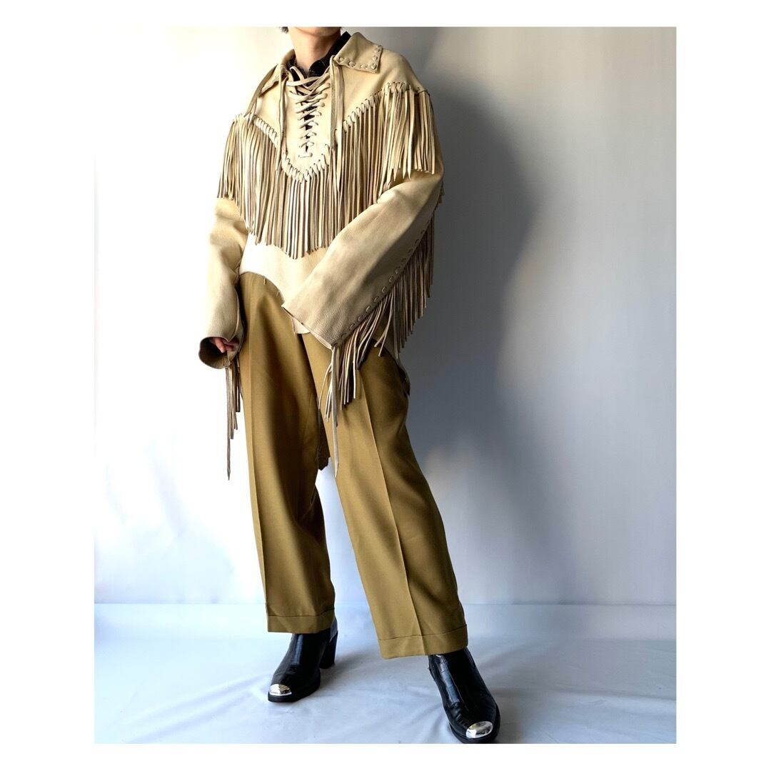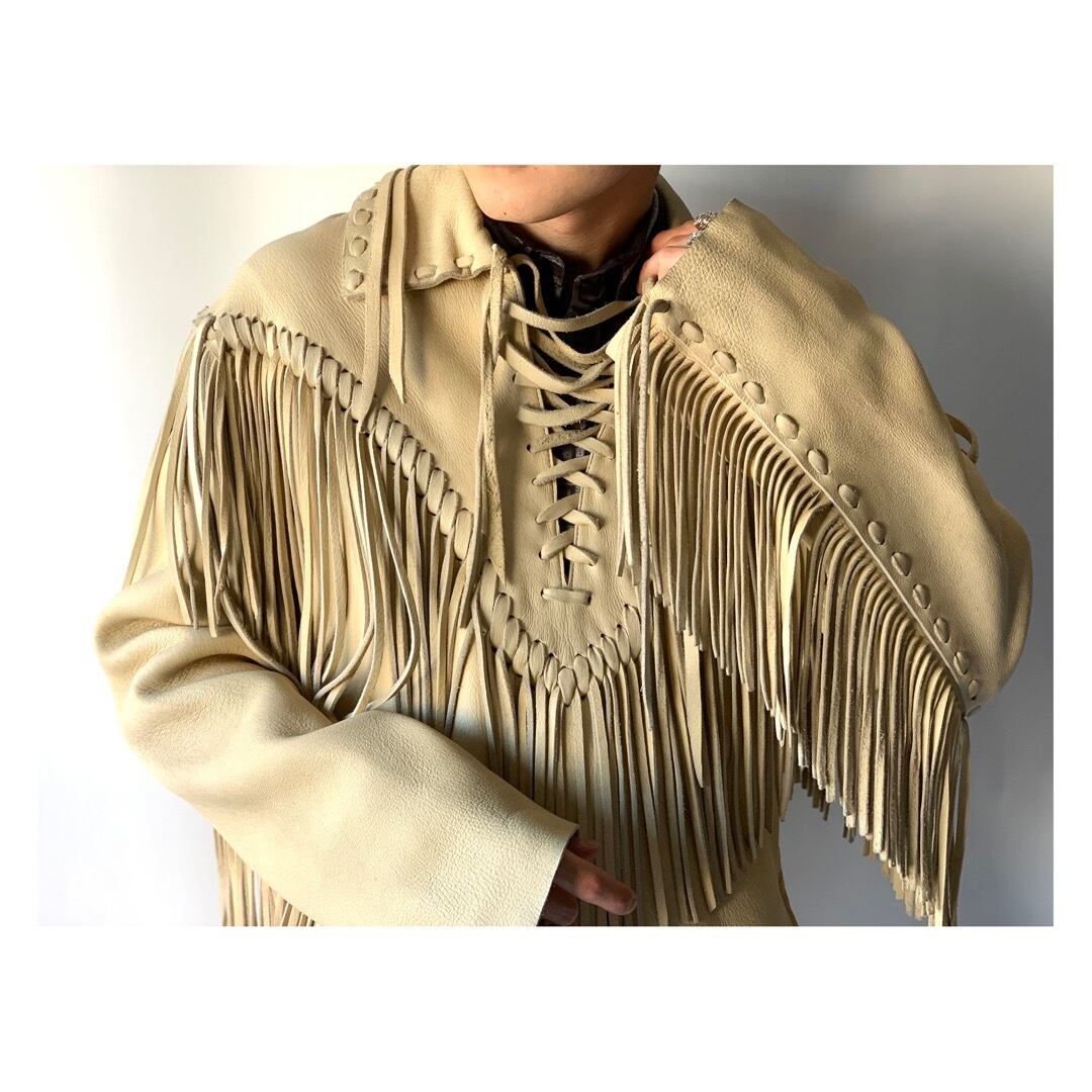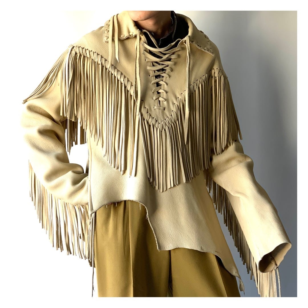 前後で着丈の違うクラフトレザーで鬼のフリンジデザイン‼️