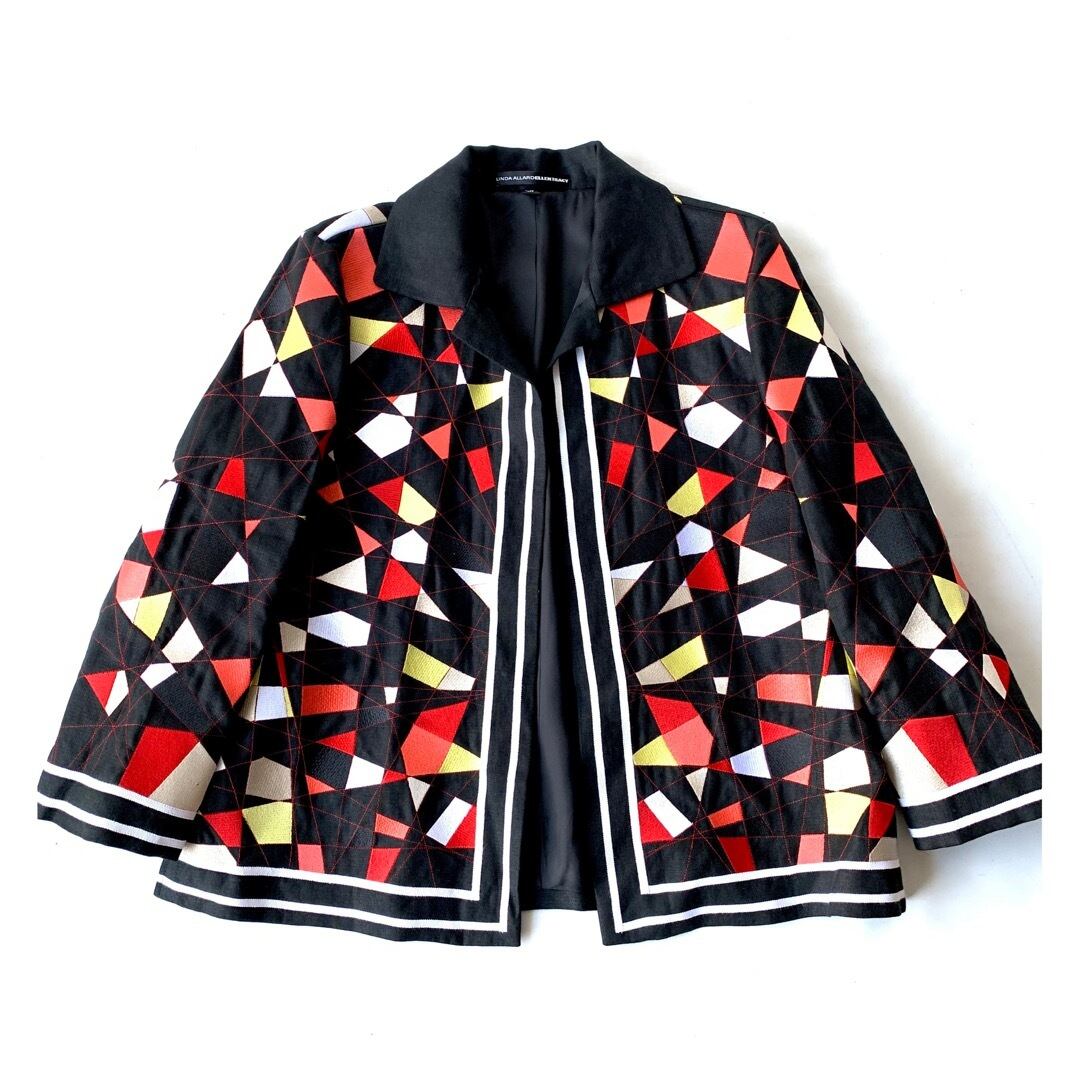 ♾LINDA ALLARD ELLEN TRACY♾ Geometric embroidery Design linen jacket
